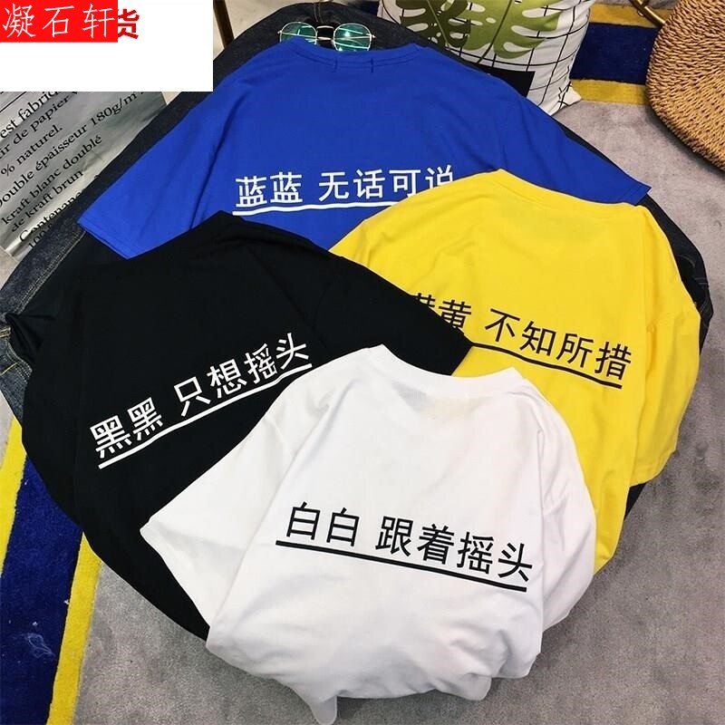 Летние студенческие топы Li Jiqi, универсальные женские футболки с короткими рукавами, свободные наряды для трех и четырех человек для сестер, наряды для лучших друзей из нескольких человек.