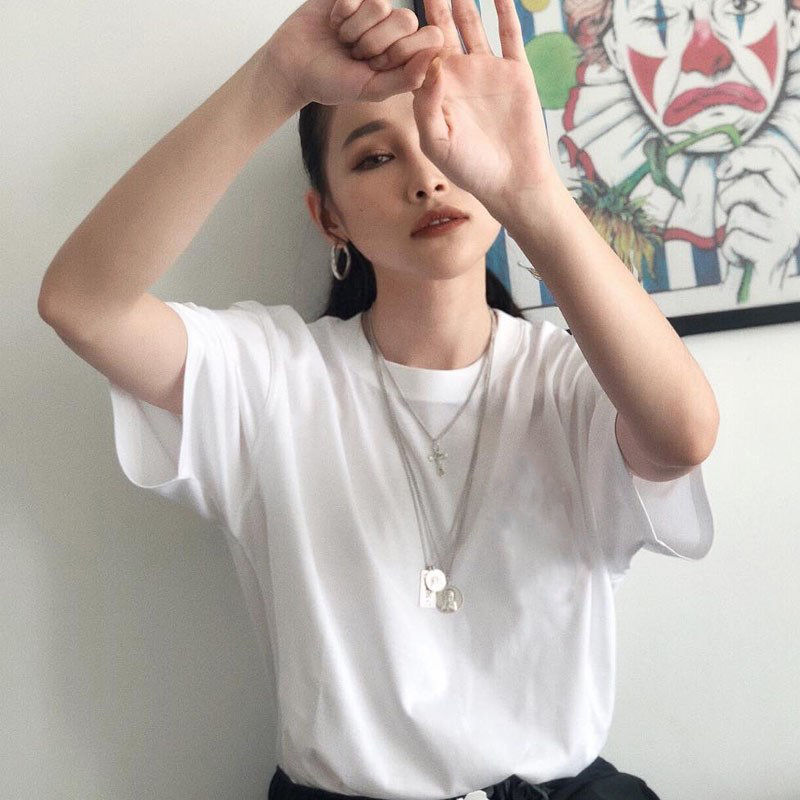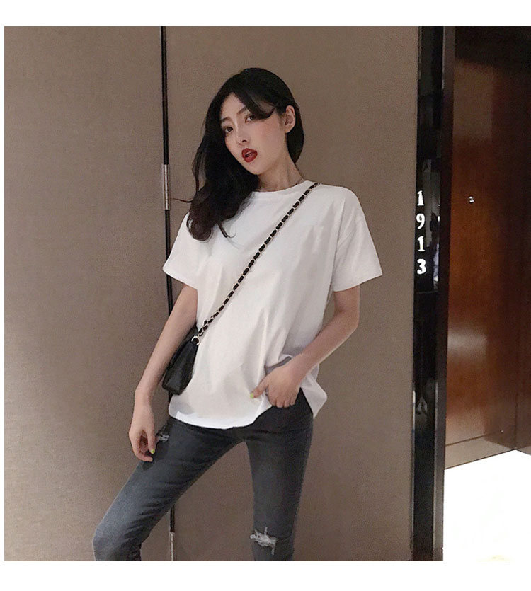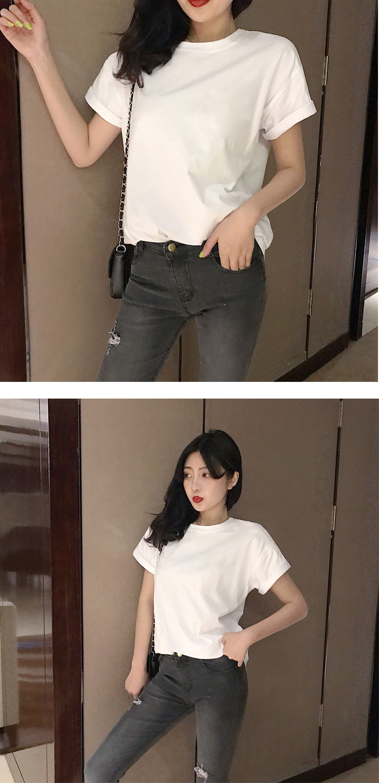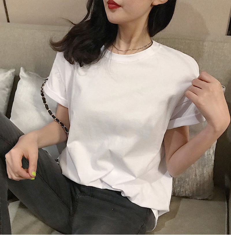 Белая летняя черная хлопковая короткая футболка, короткий рукав, свободный крой