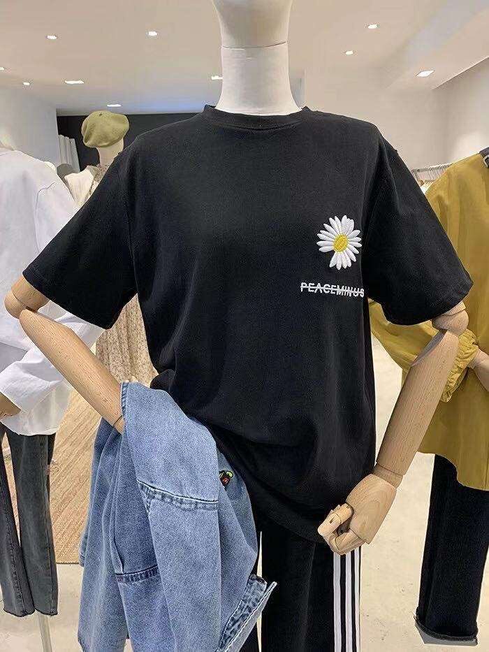Летняя одежда, футболка с коротким рукавом, сезон 2021, большой размер, с вышивкой, в корейском стиле, в западном стиле