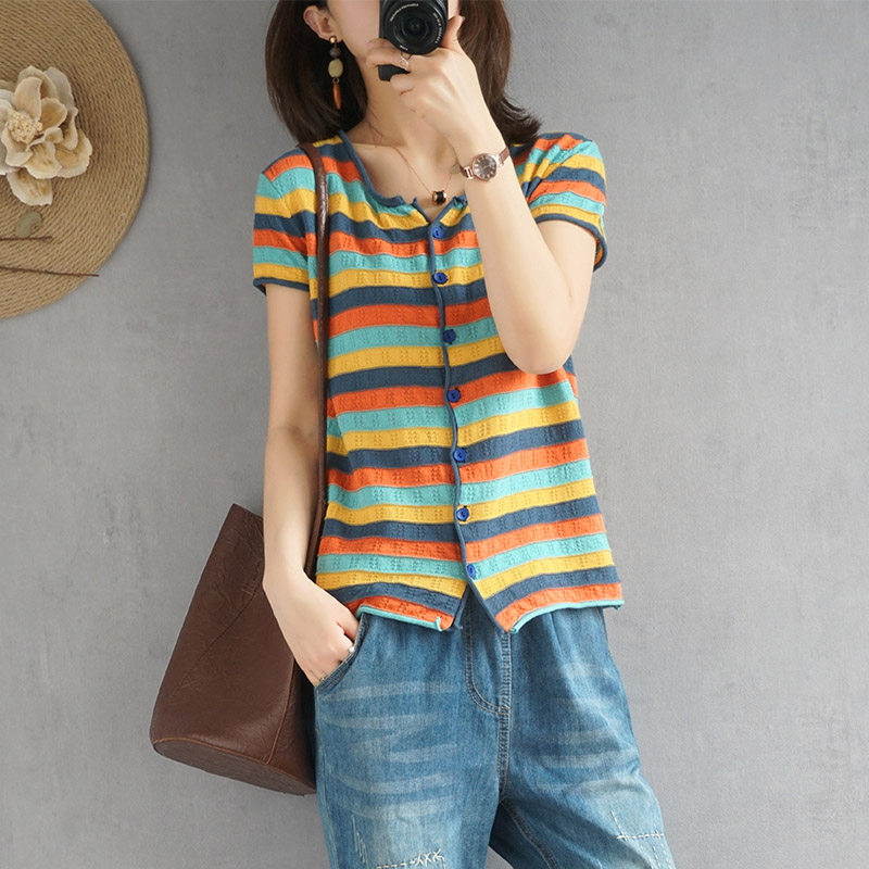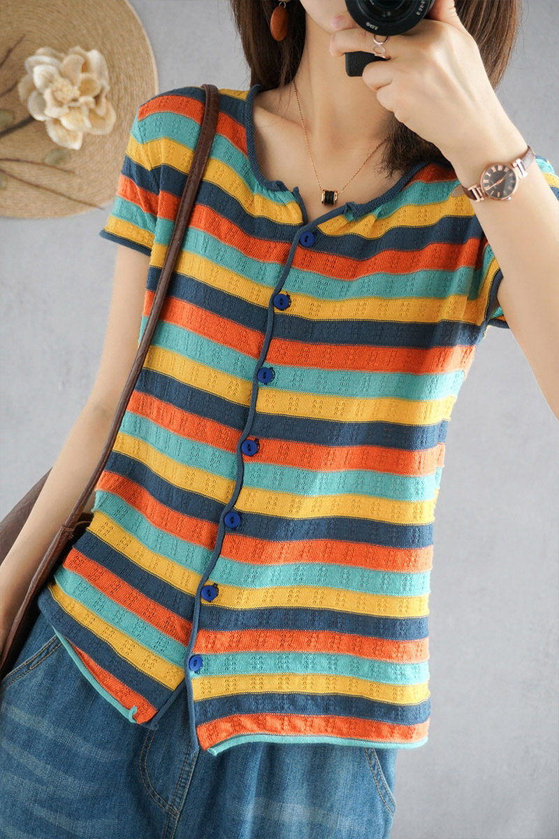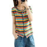 Трикотажная радужная приталенная базовая приятная телу футболка с круглым воротником, короткий рукав, 2020