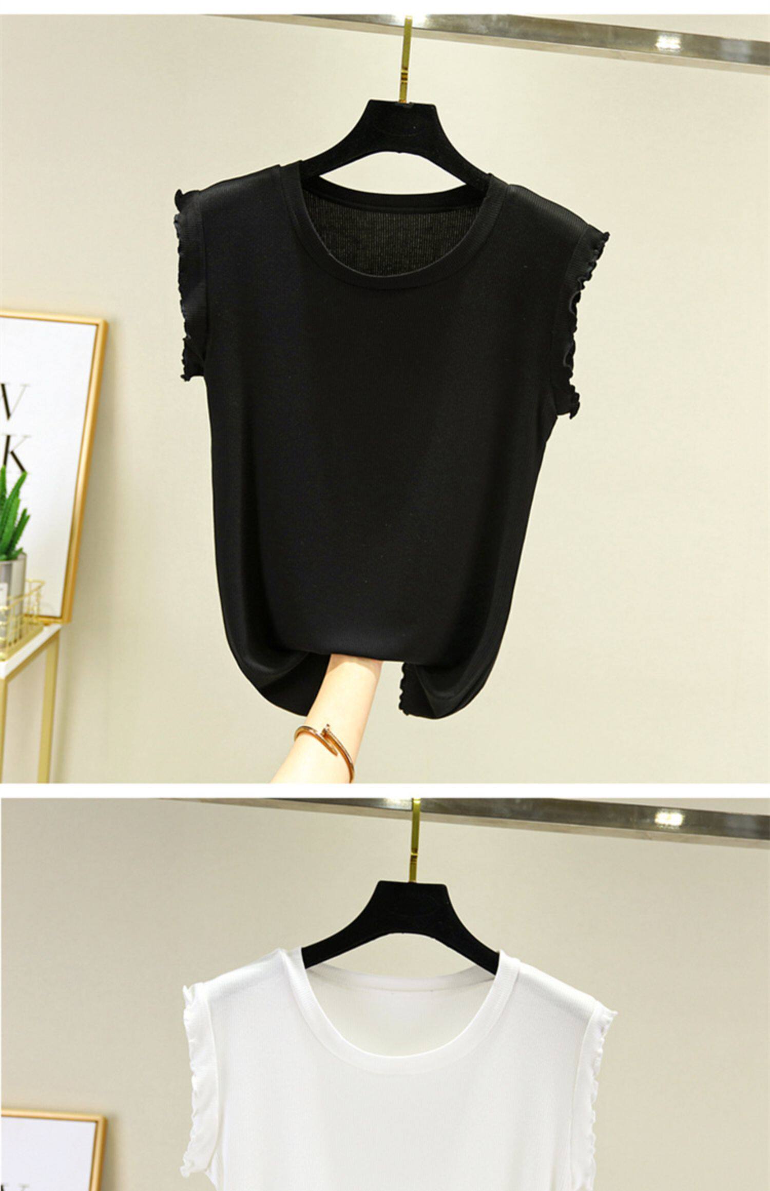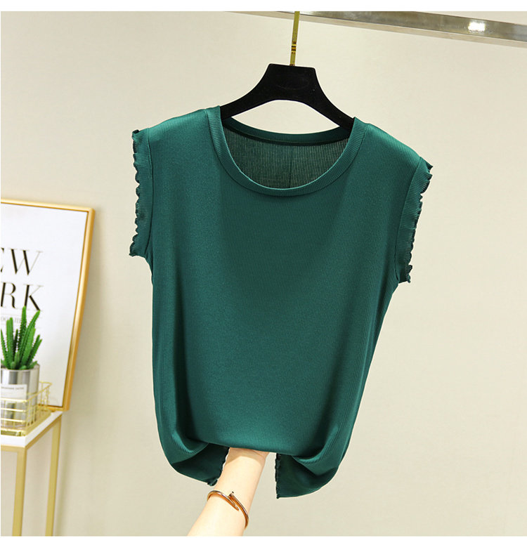 Однотонная базовая приятная телу майка топ с круглым воротником, тонкая трикотажная футболка без рукавов, по фигуре