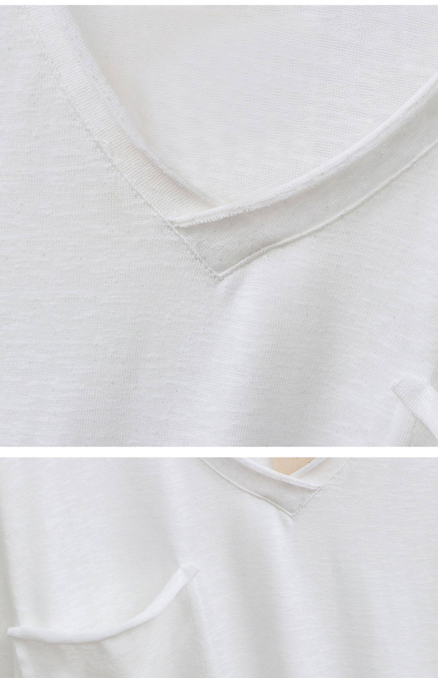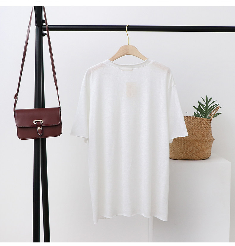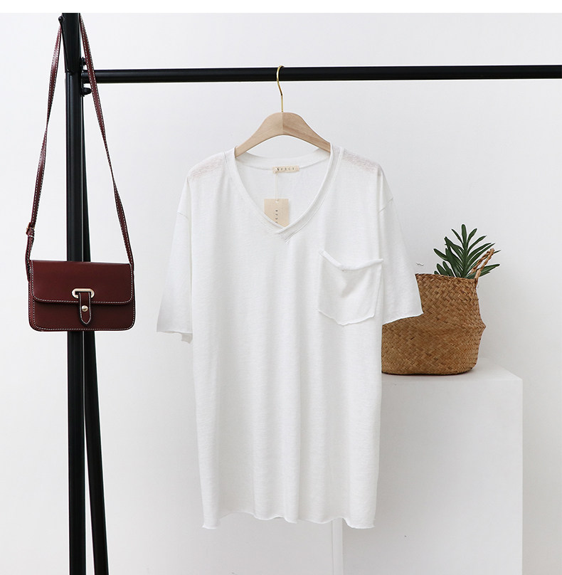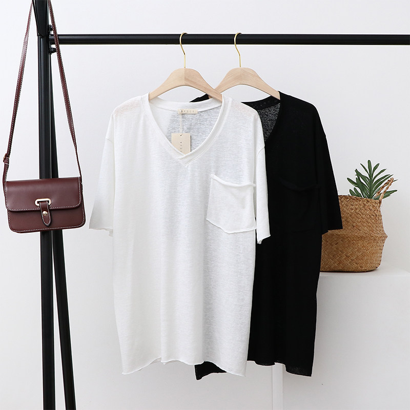 Тонкая базовая приятная телу футболка с коротким рукавом, из хлопка и льна, V-образный вырез, оверсайз