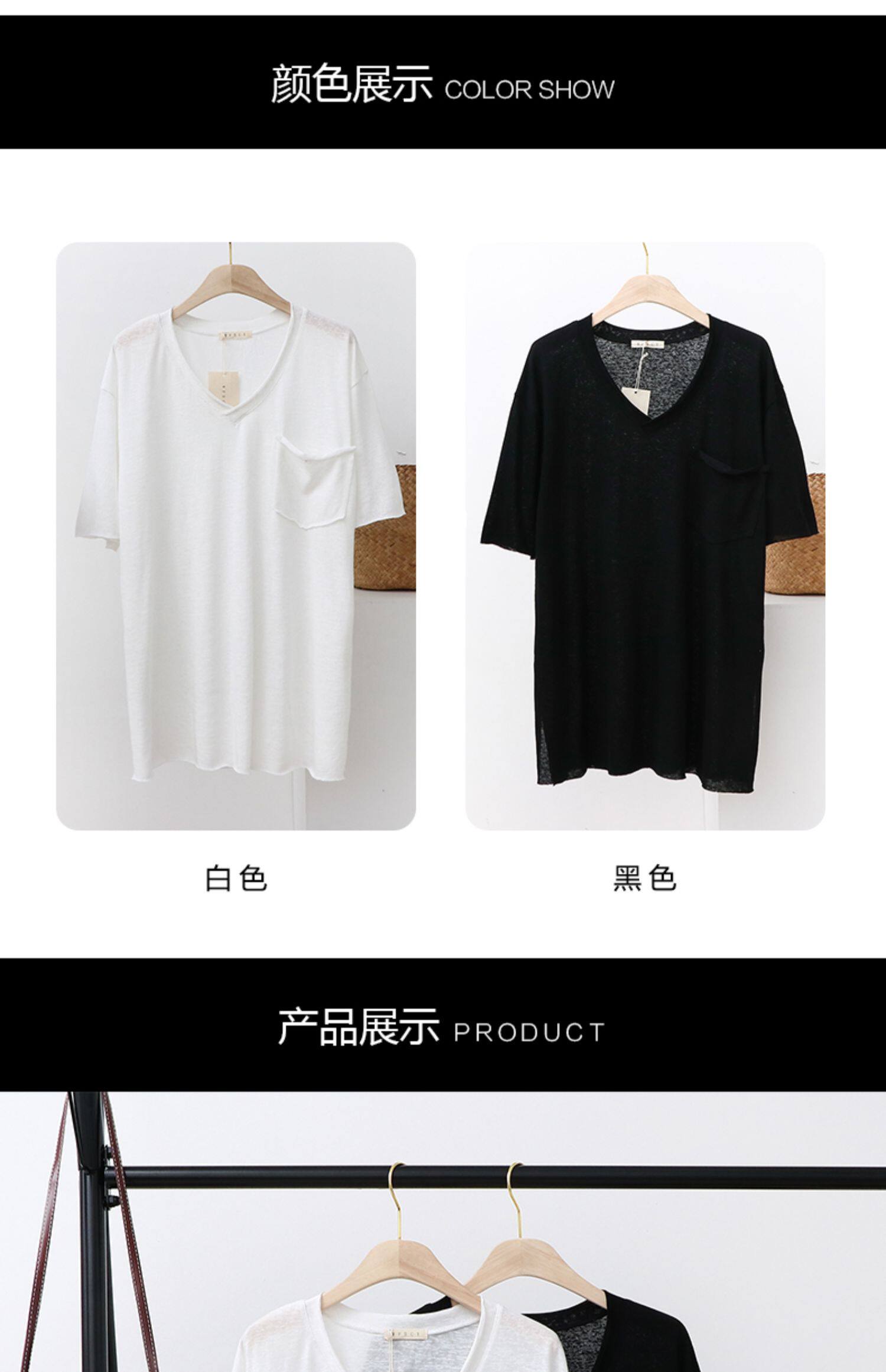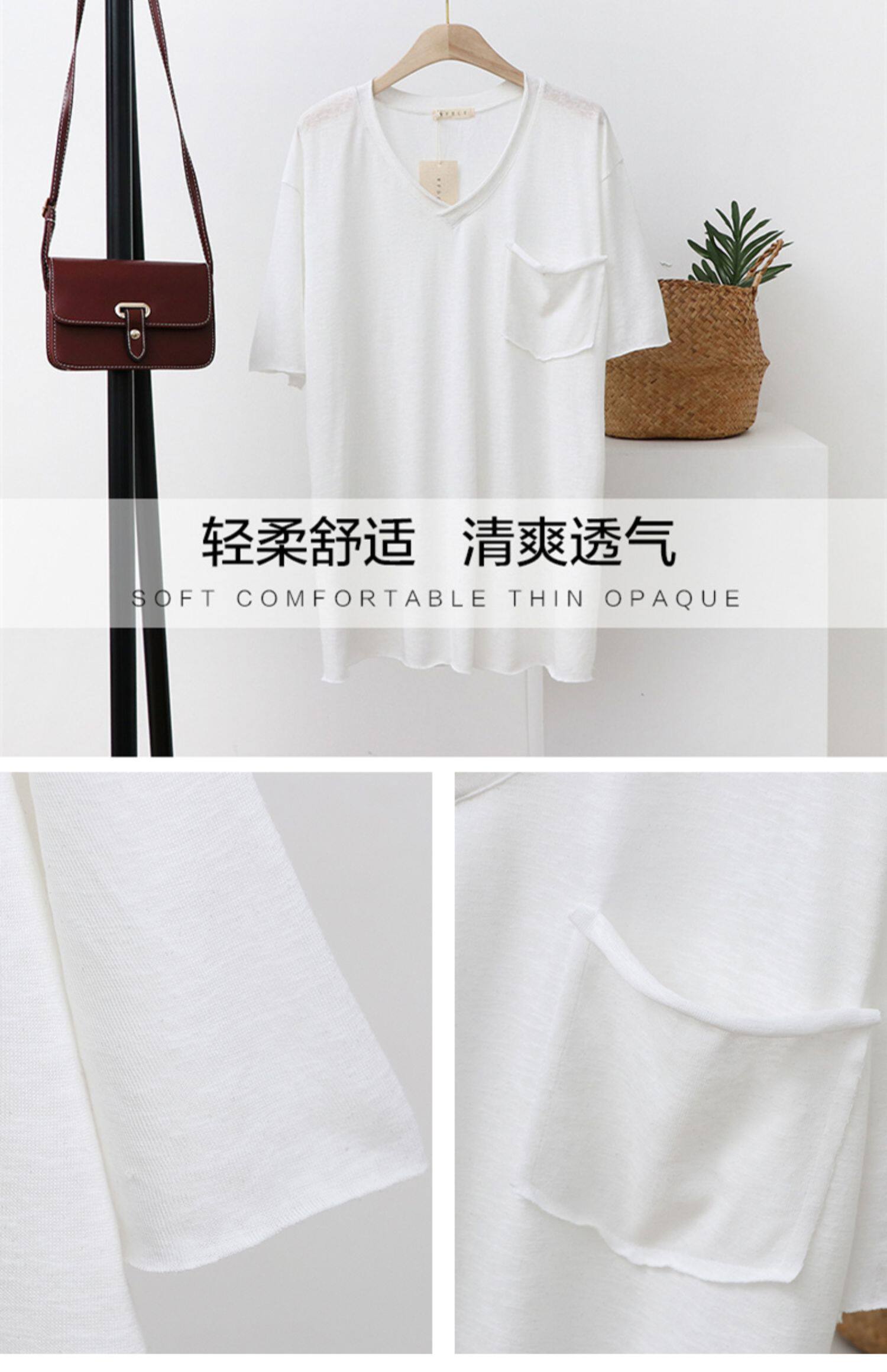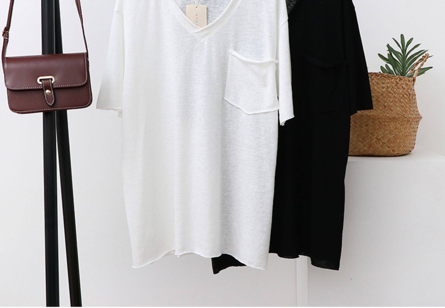 Тонкая базовая приятная телу футболка с коротким рукавом, из хлопка и льна, V-образный вырез, оверсайз