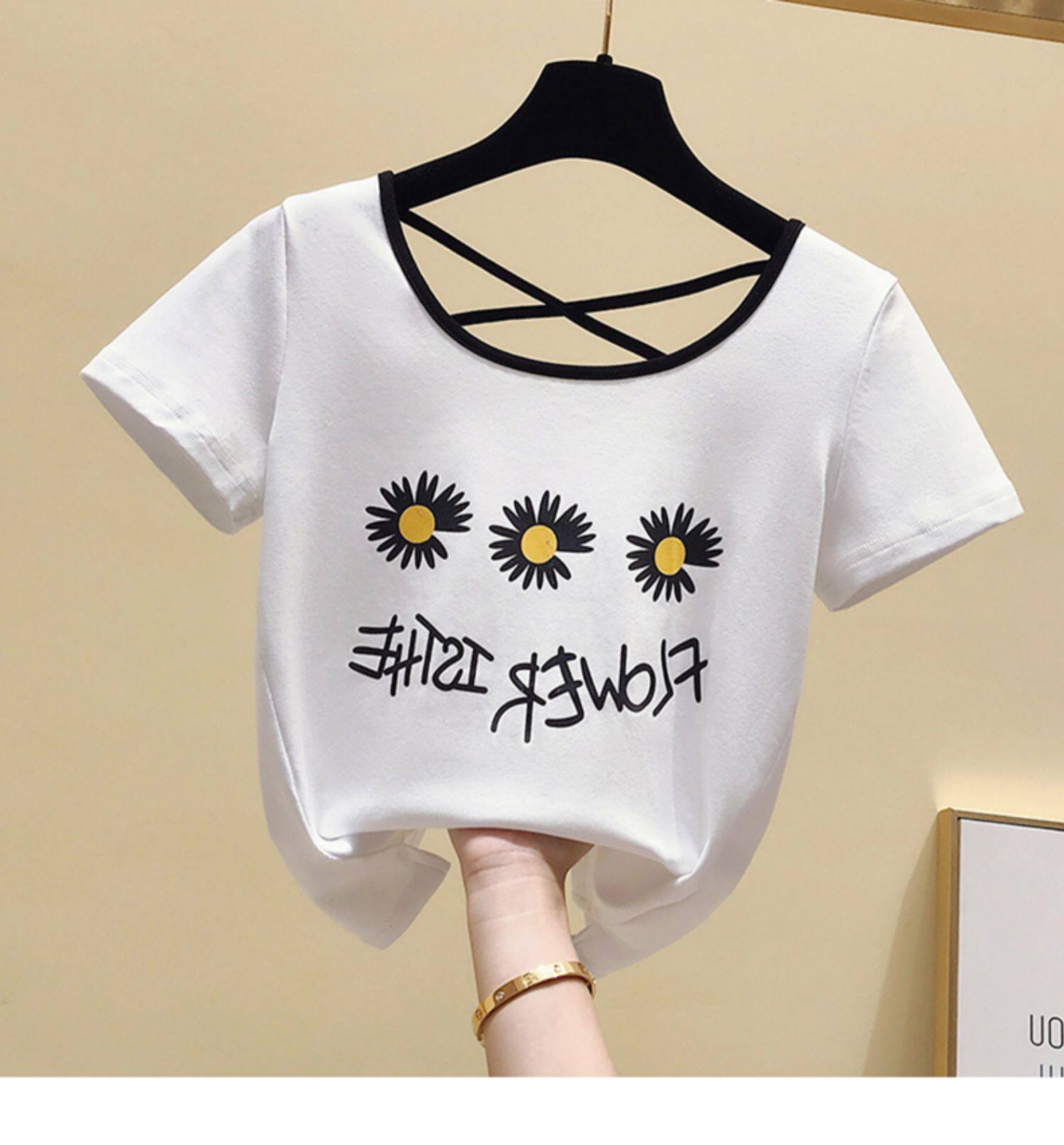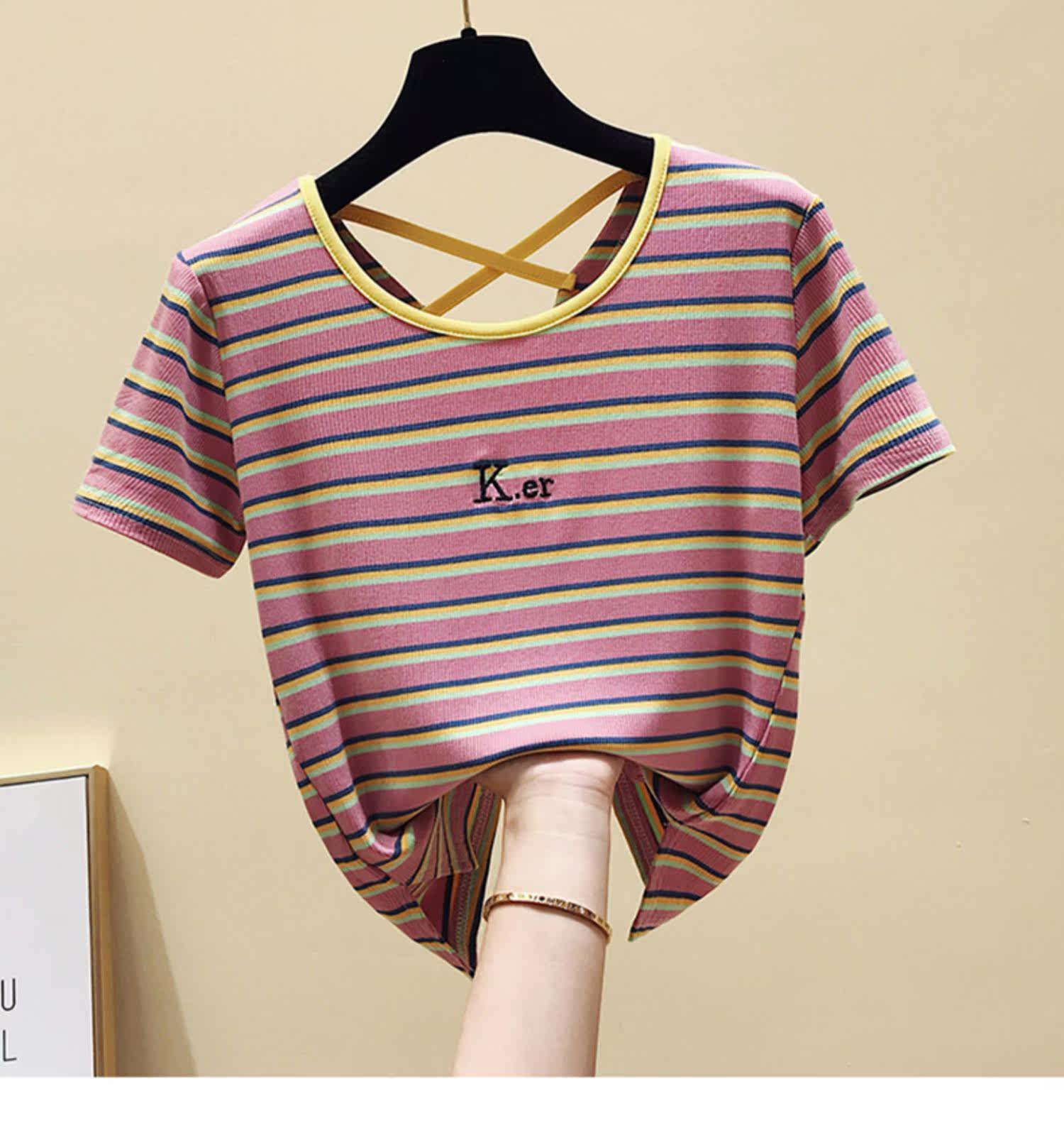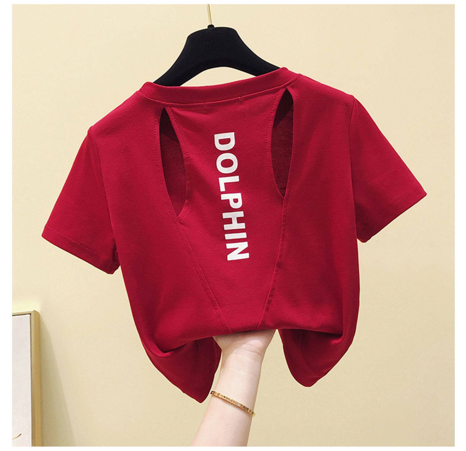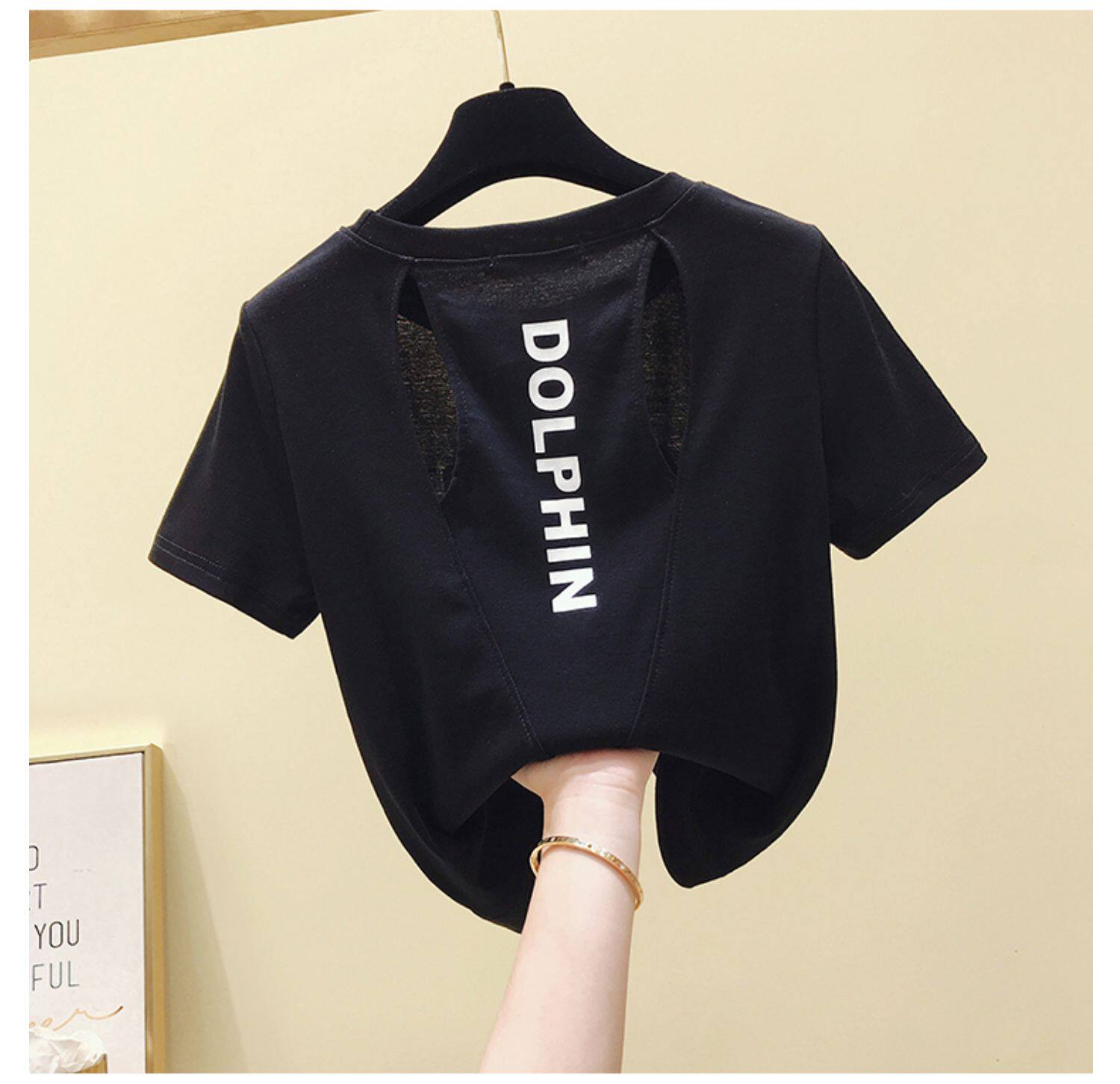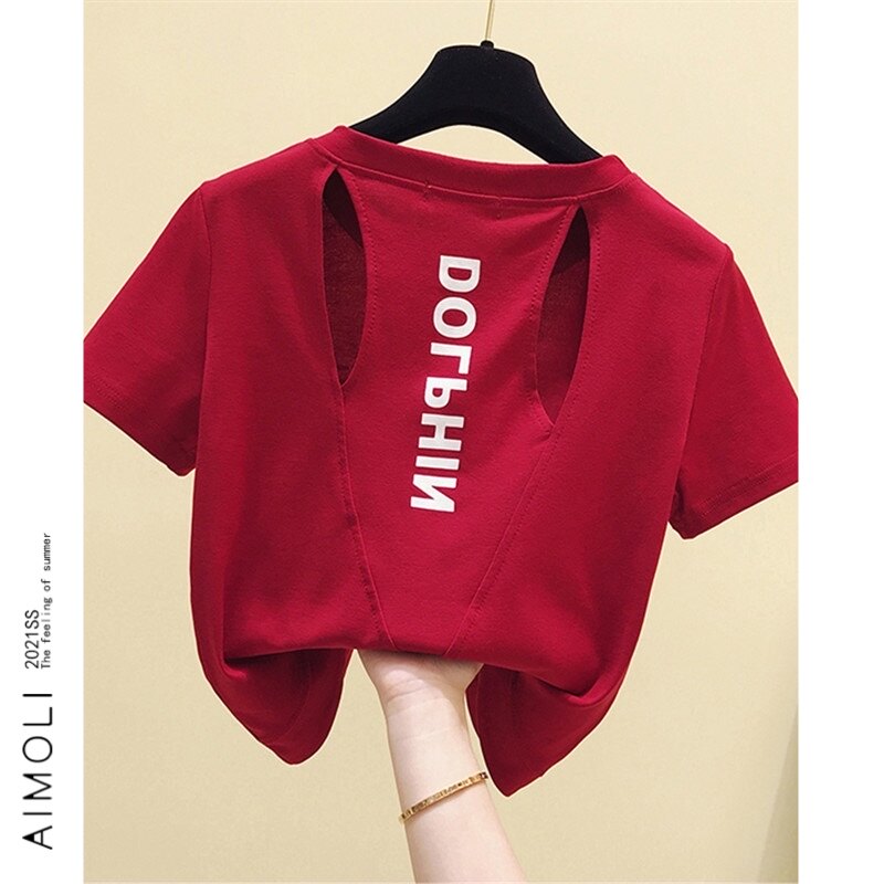 Летняя хлопковая сексуальная короткая футболка с коротким рукавом, европейский стиль, облегающий крой, с открытой спиной