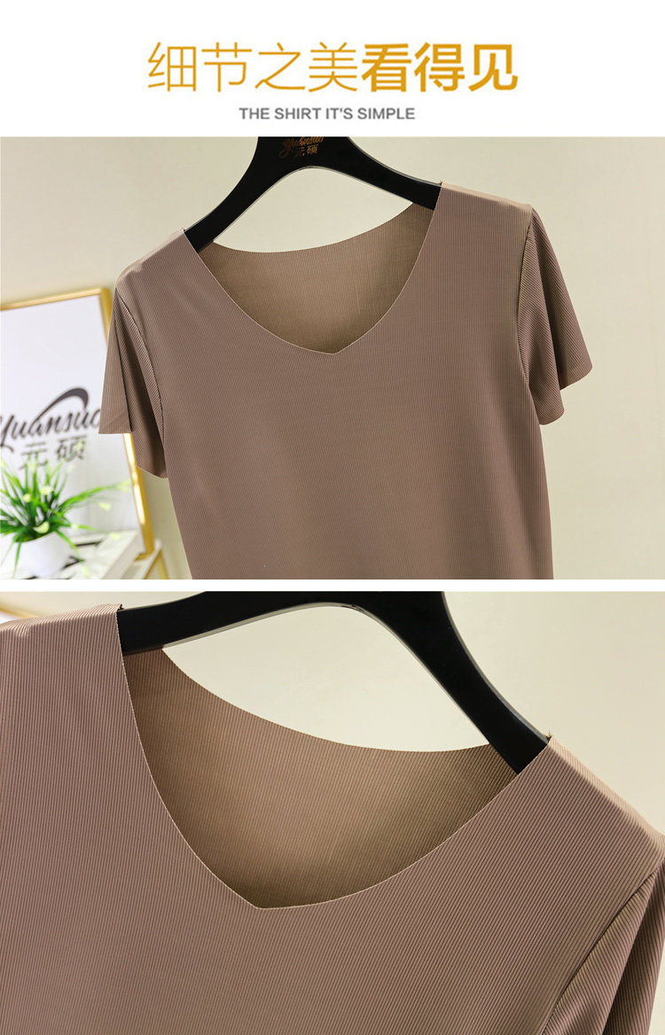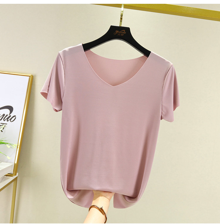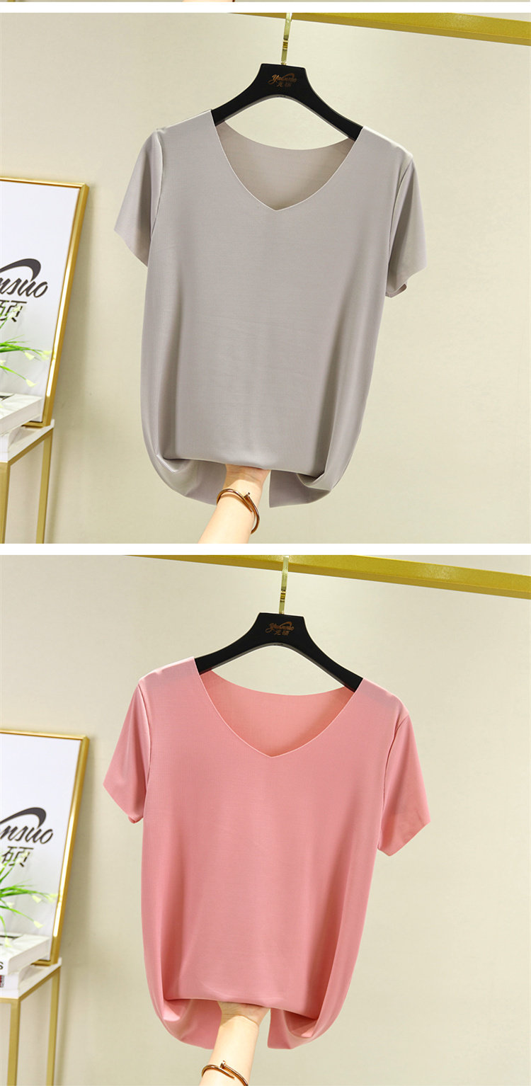 Шелковая летняя тонкая базовая приятная телу футболка, 2020, V-образный вырез, большой размер