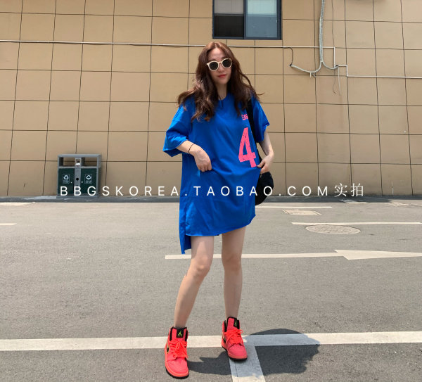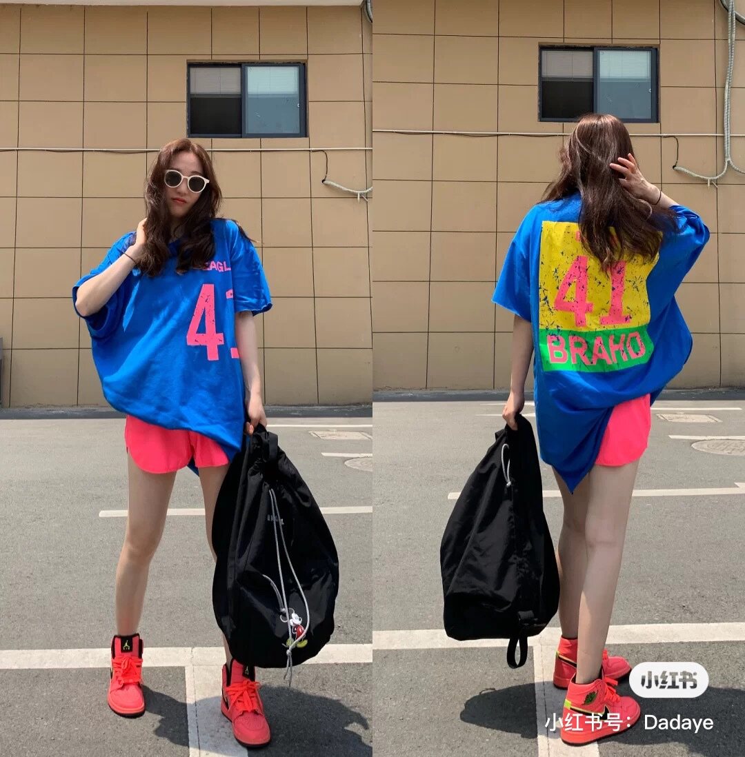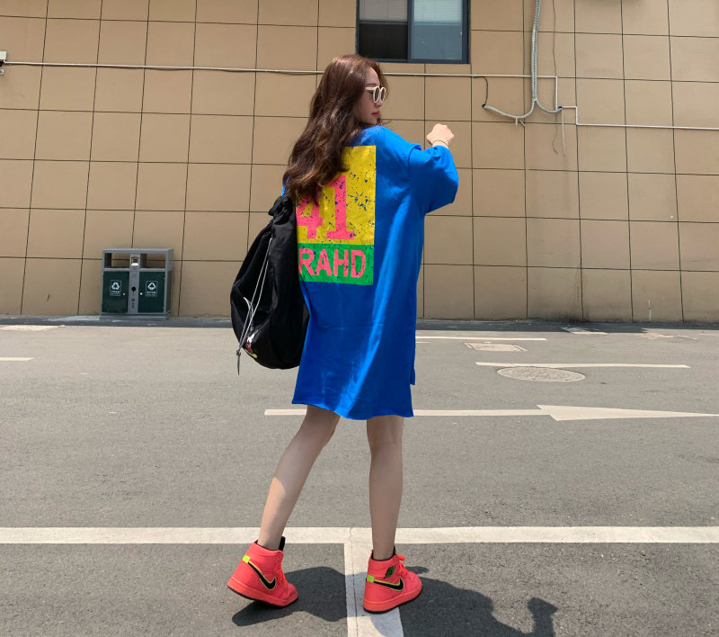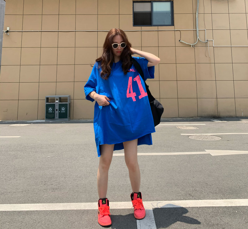 Летняя флуоресцентная синяя футболка, (в наличии на складе), большой размер, оверсайз