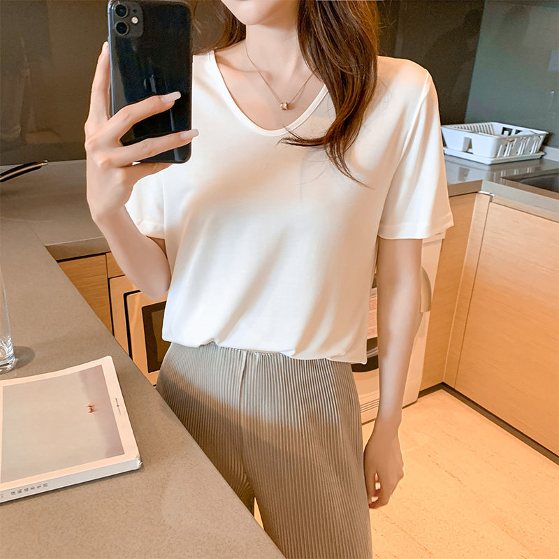 Летняя белая футболка, тонкая маска для лица, короткий рукав, свободный крой, V-образный вырез