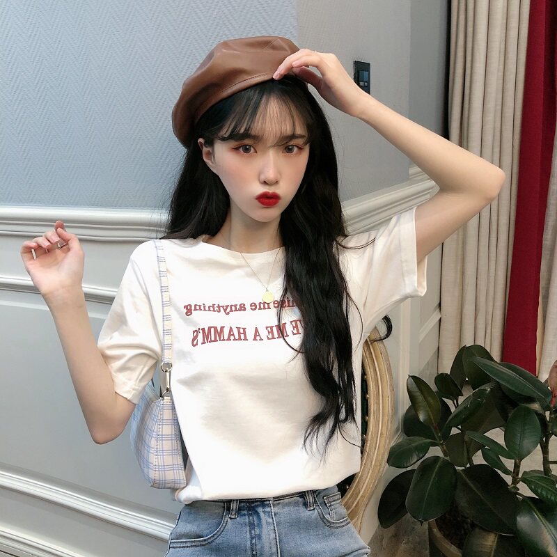 Летняя базовая футболка с коротким рукавом для школьников, коллекция 2021, в корейском стиле, свободный крой, короткий рукав, в западном стиле