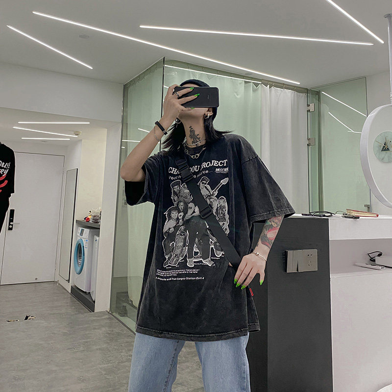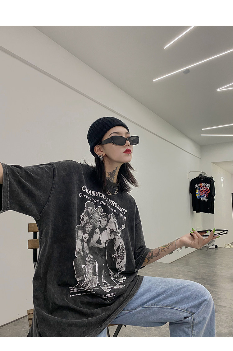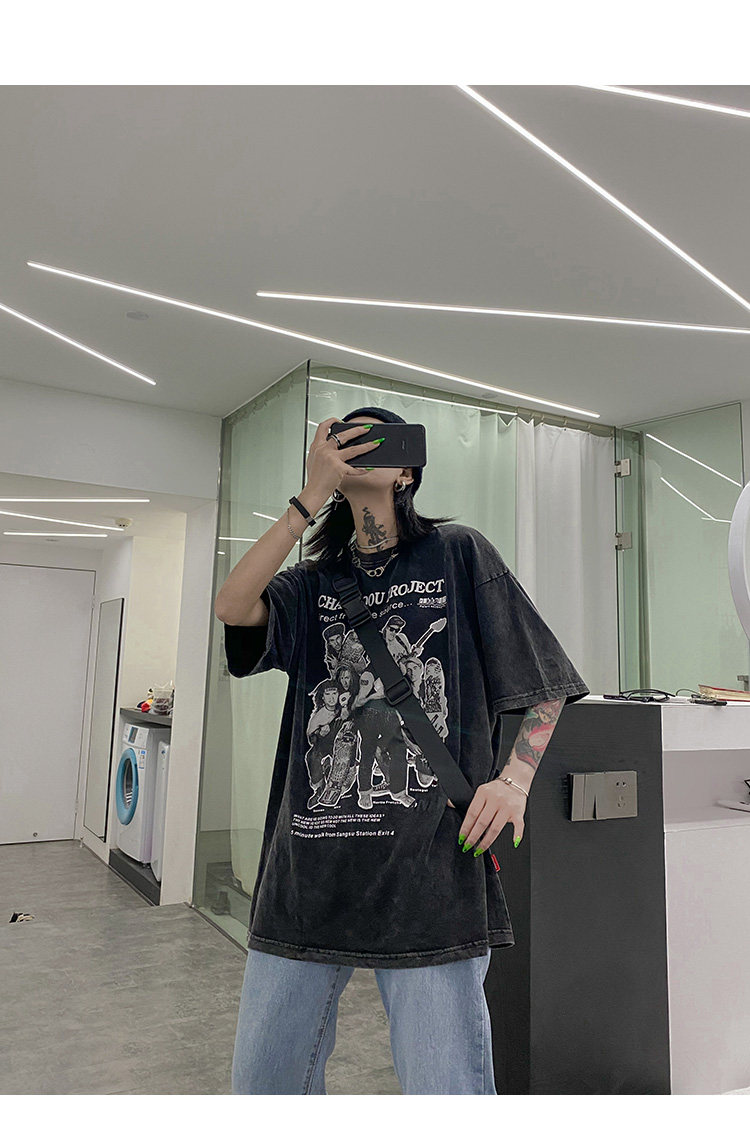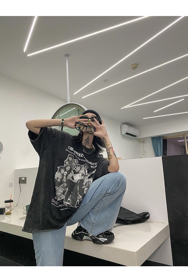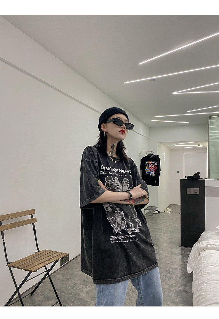 Дизайнерская ретро черная футболка, тренд сезона, в американском стиле, оверсайз