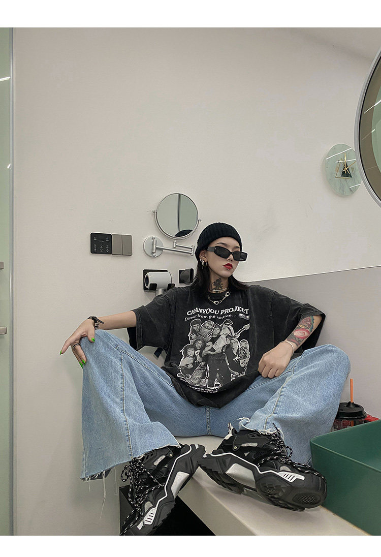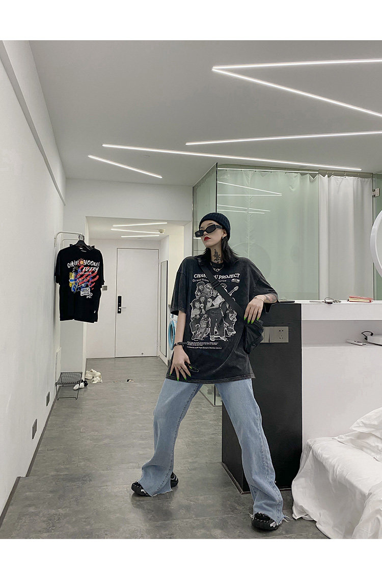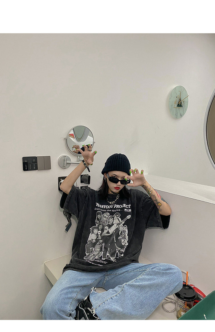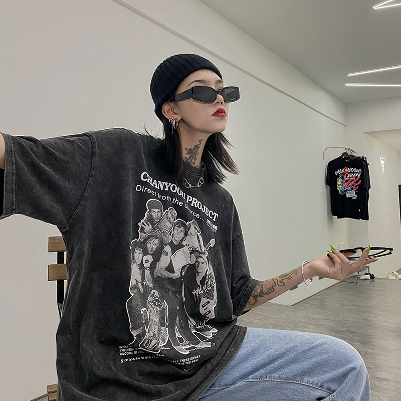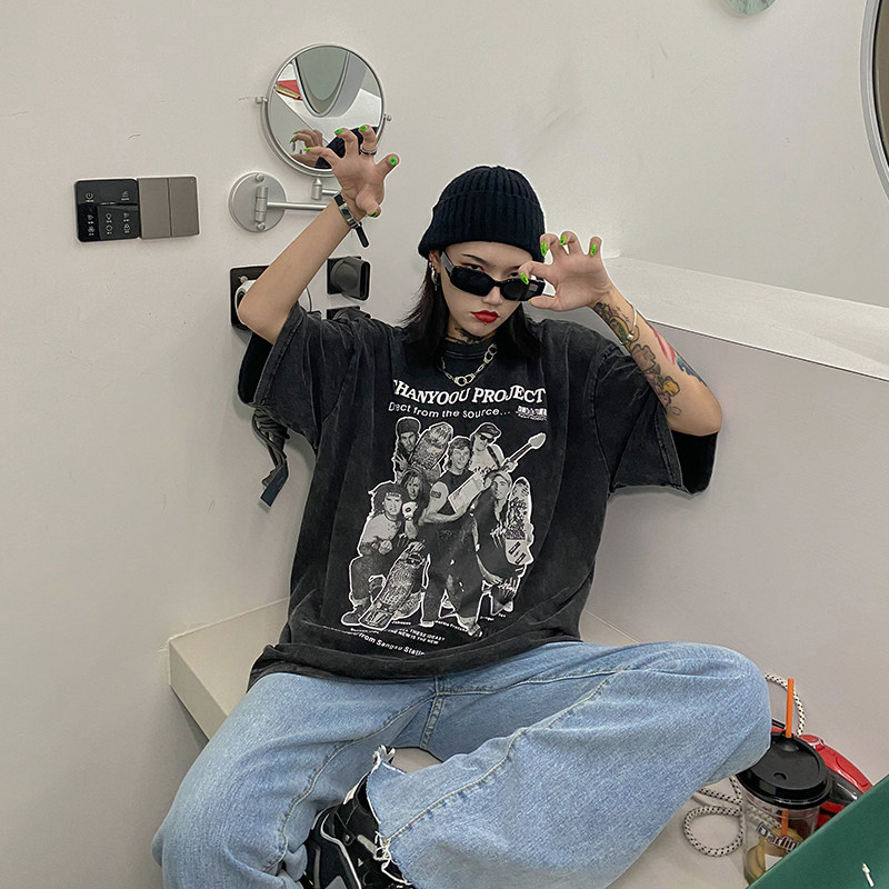 Дизайнерская ретро черная футболка, тренд сезона, в американском стиле, оверсайз