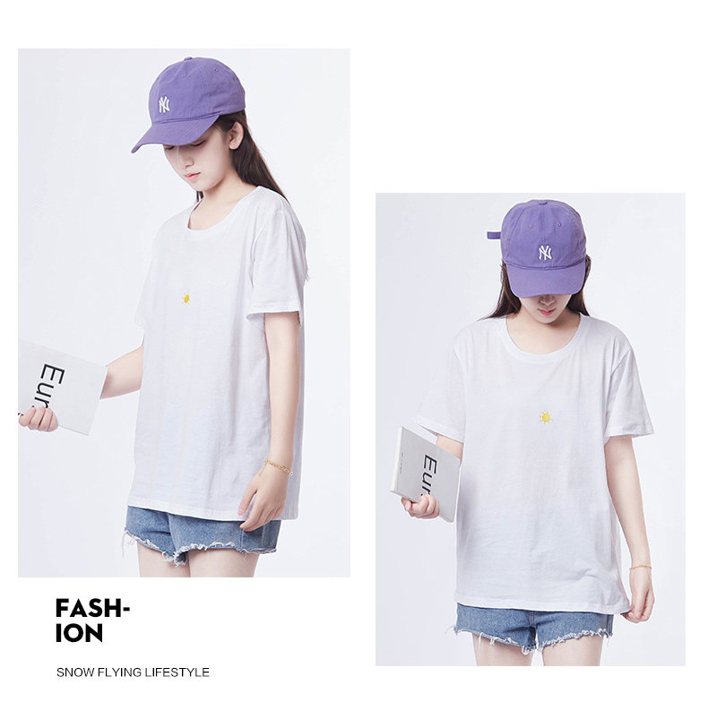 Летняя трендовая модная комфортная футболка с круглым воротником, 2020, с вышивкой