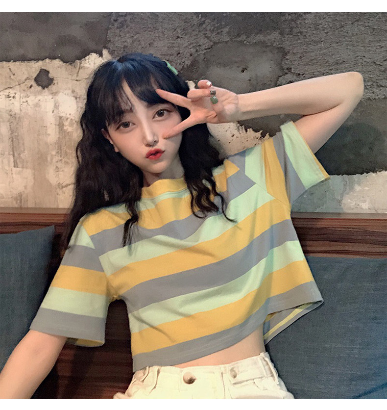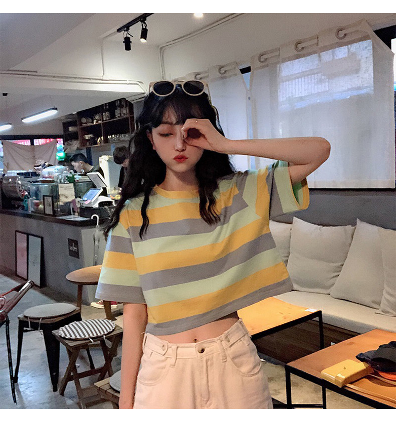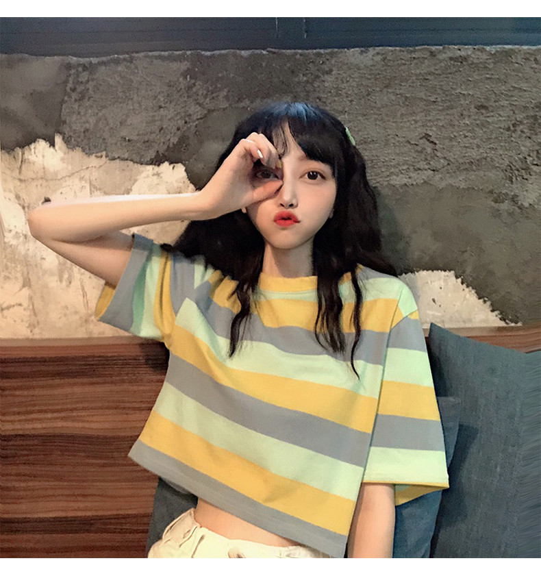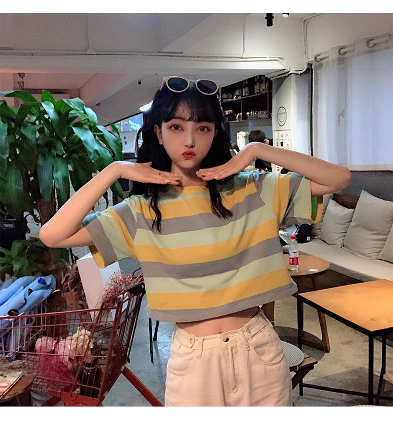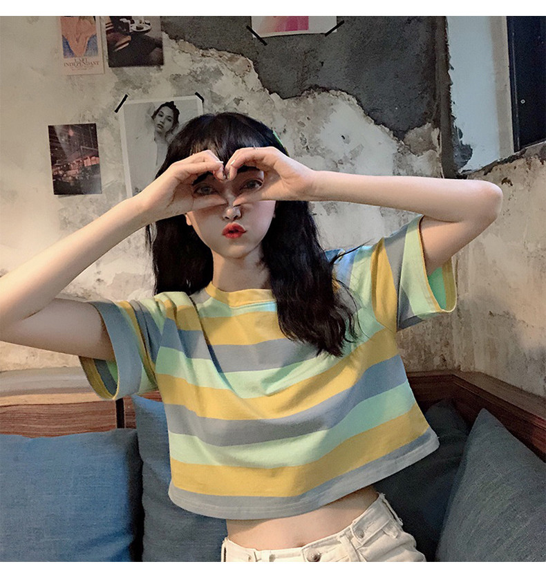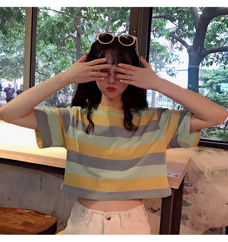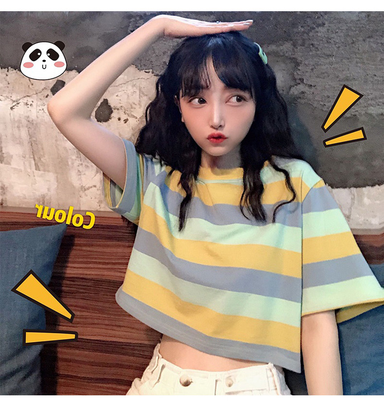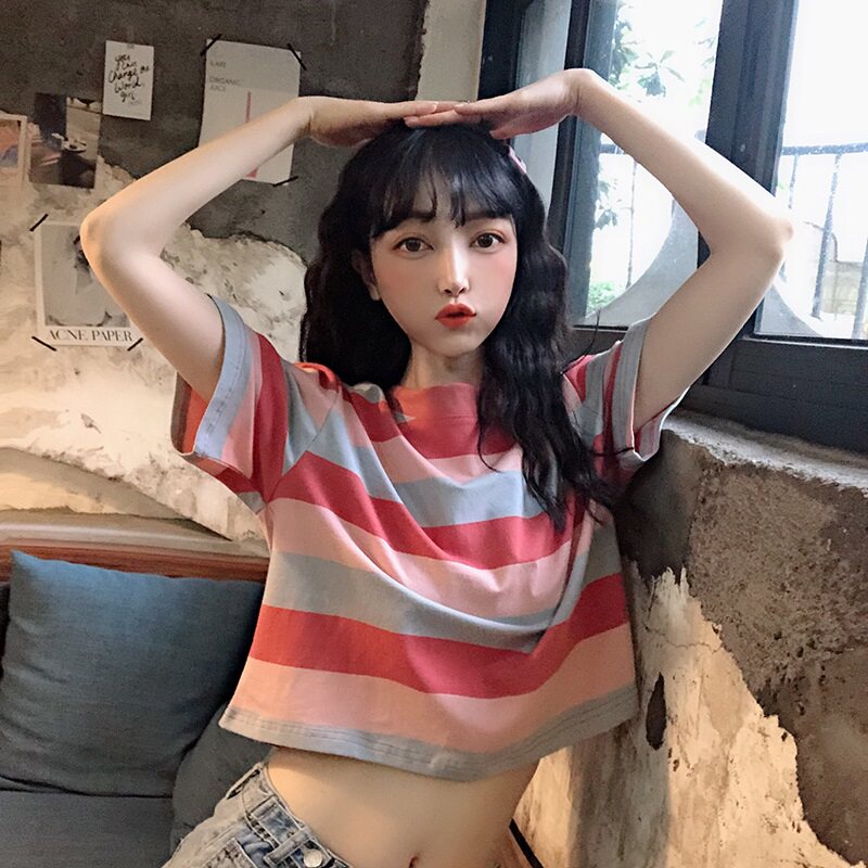 Короткая милая футболка для школьников с круглым воротником, оверсайз, короткий рукав