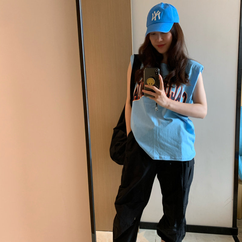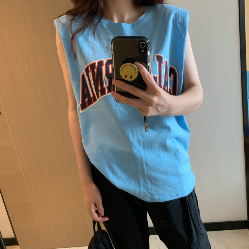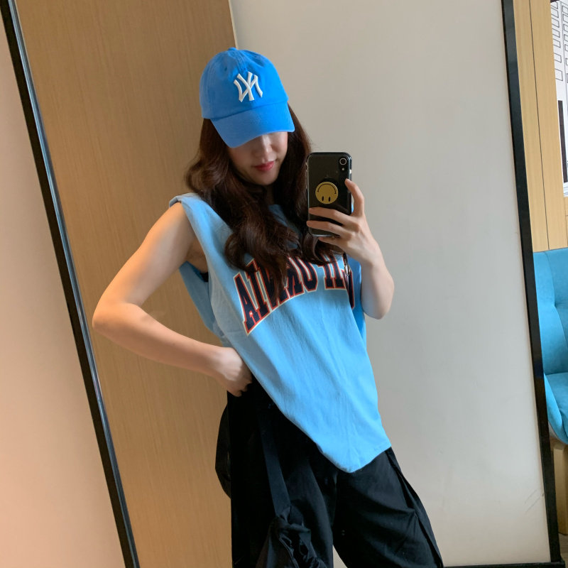 Летний синий спортивный жилет без рукавов, футболка, (в наличии на складе)