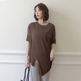 Тонкая футболка, базовая длинная рубашка с круглым воротником, с рукавом, средней длины