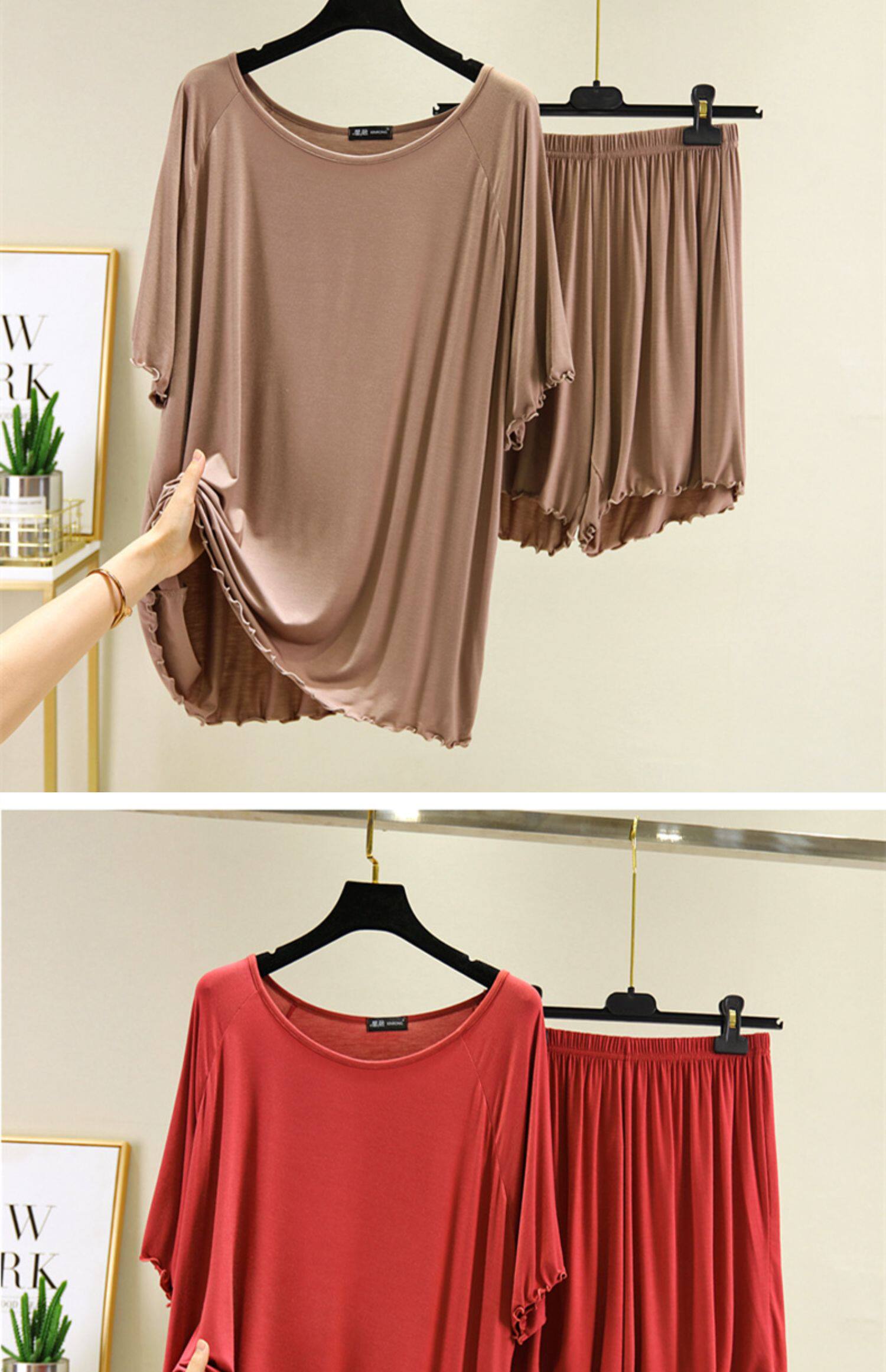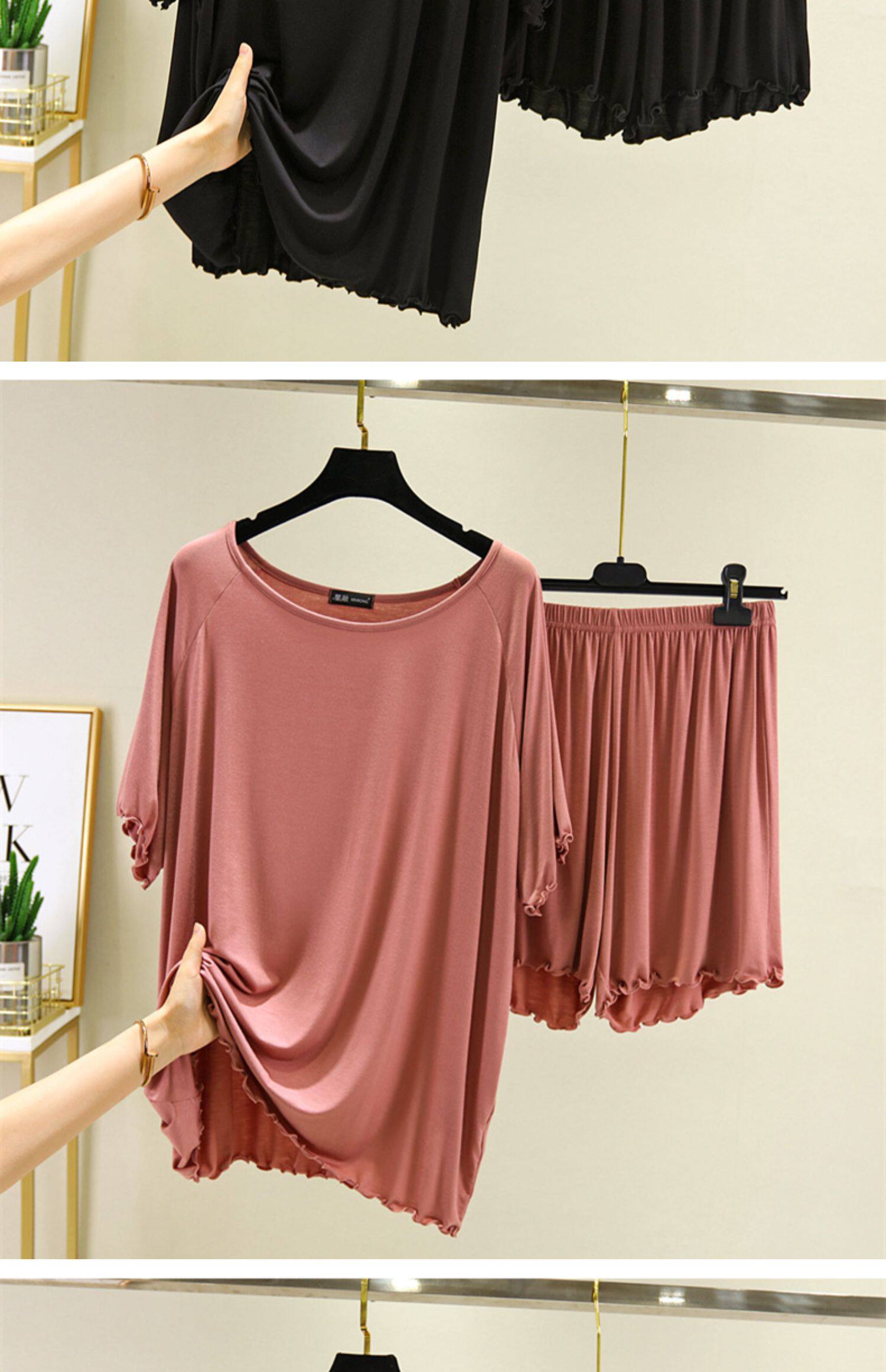 Базовая приятная телу футболка, тонкая пижама, комплект, короткий рукав