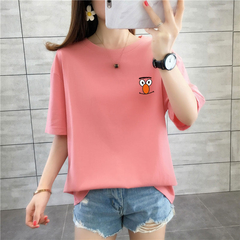 Летняя белая цветная футболка с круглым воротником для отдыха, сезон 2021, в корейском стиле, свободный крой
