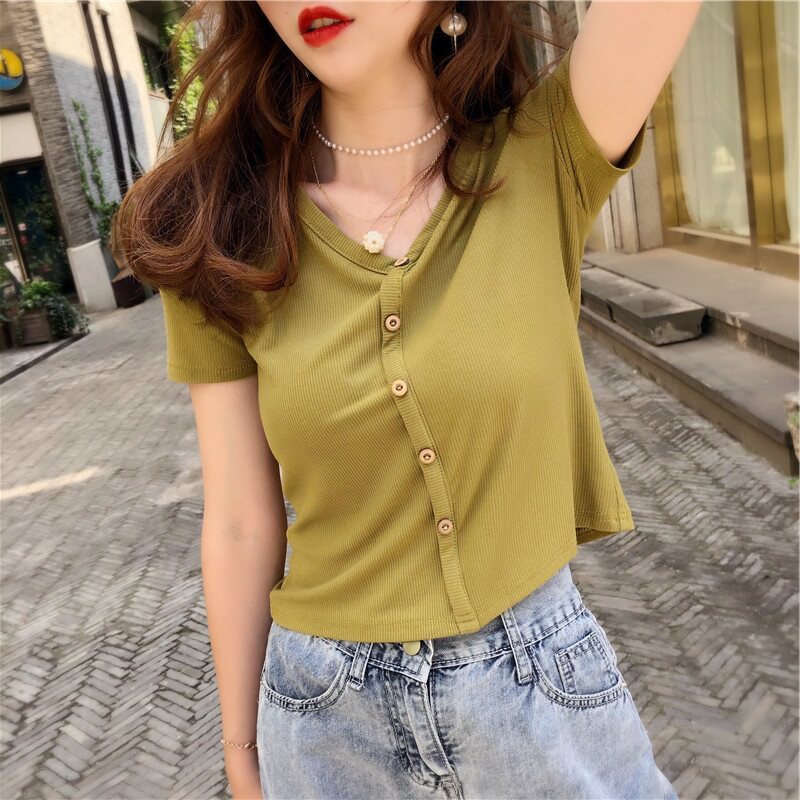 Летняя футболка с коротким рукавом, дизайнерские короткие штаны, тренд сезона, высокая талия