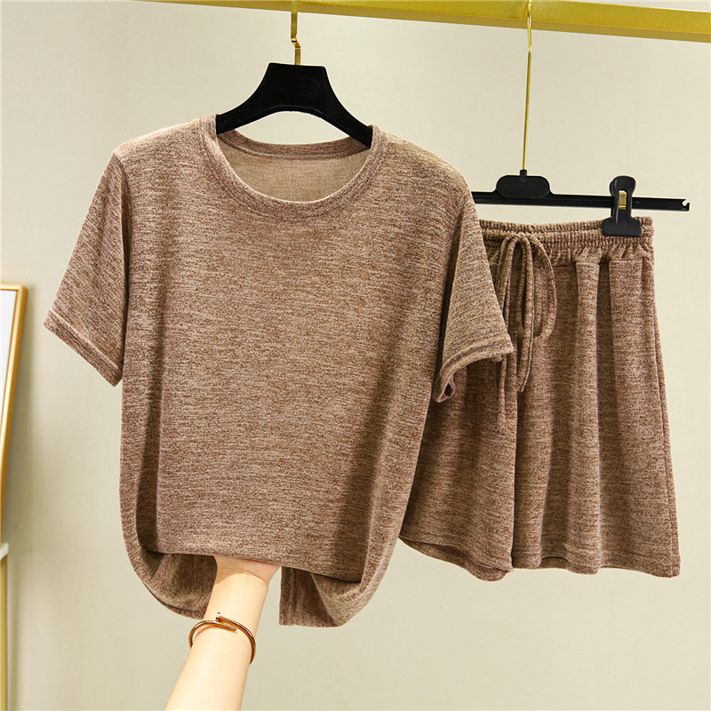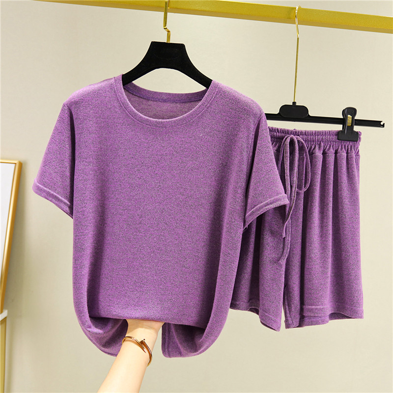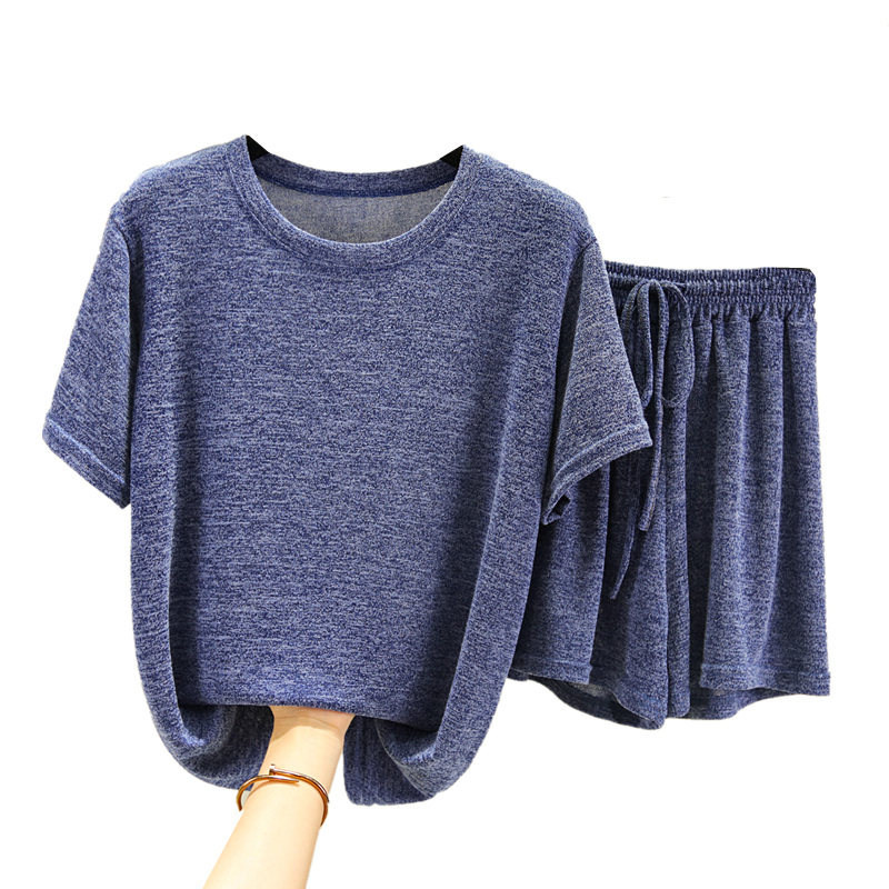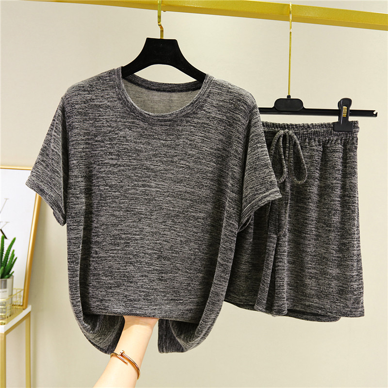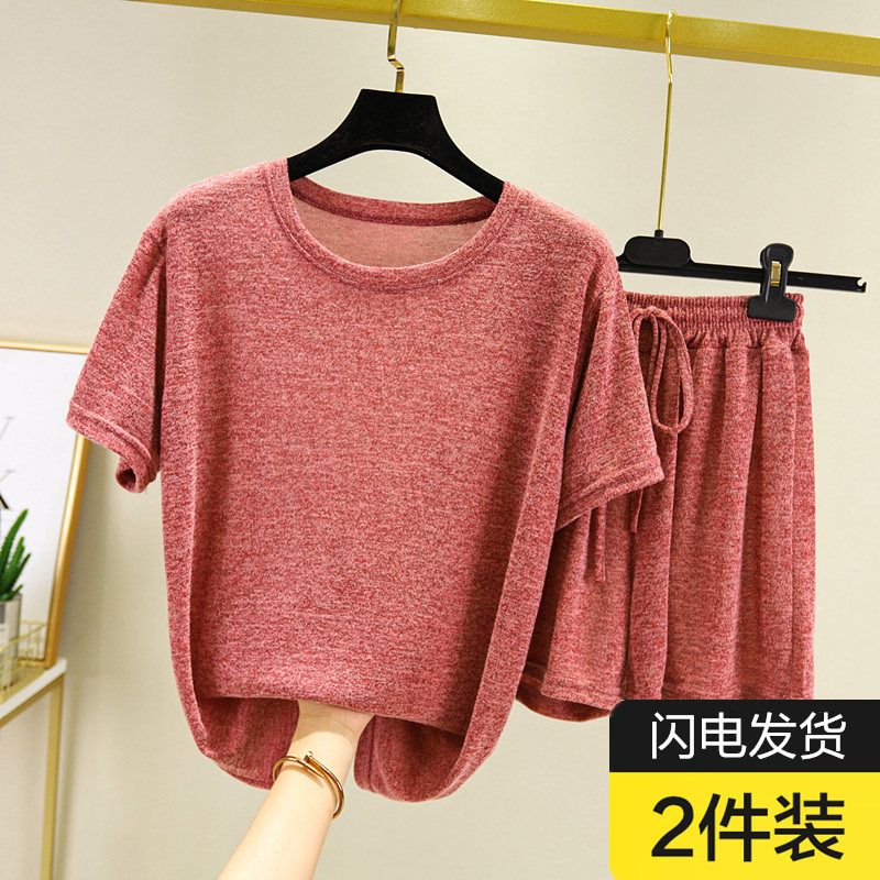 Хлопковая летняя футболка с коротким рукавом, трикотажная пижама, тонкий комплект, шорты, штаны, свободный крой, большой размер