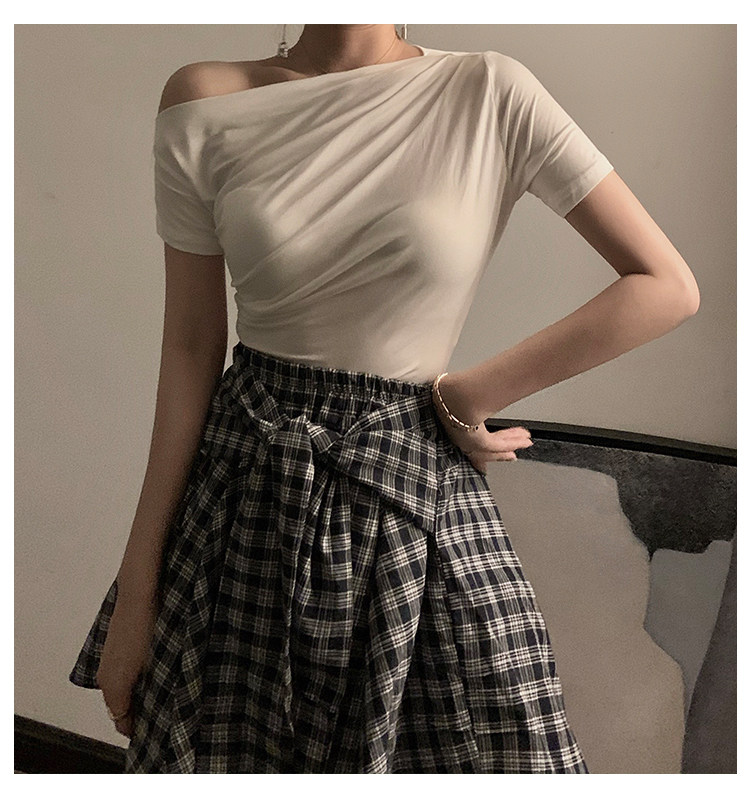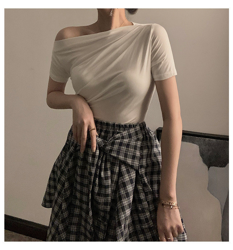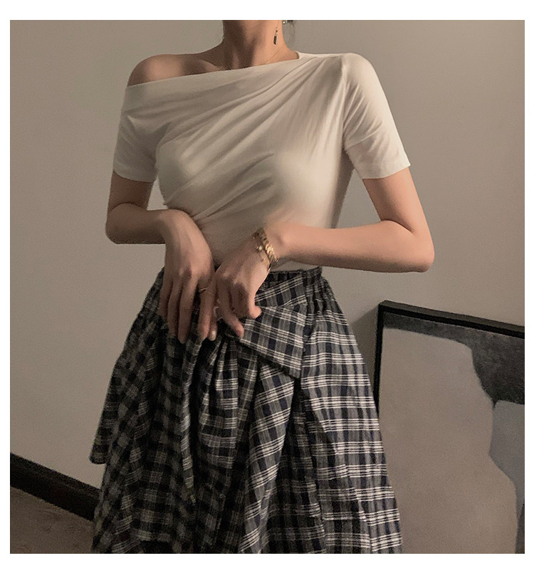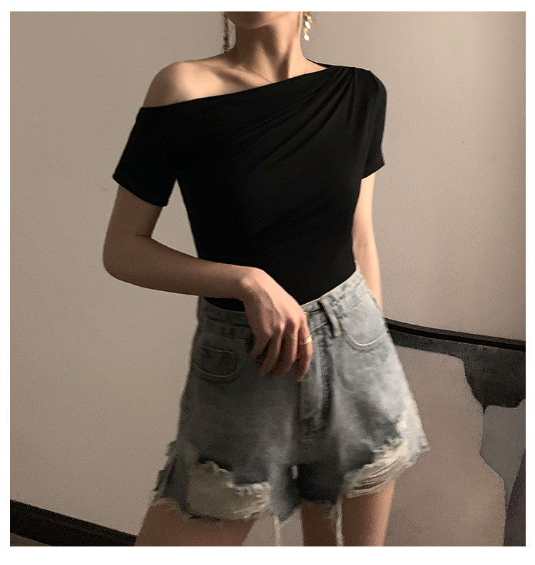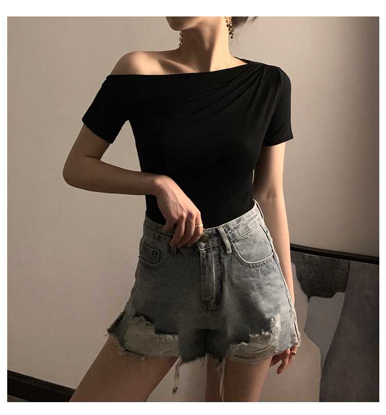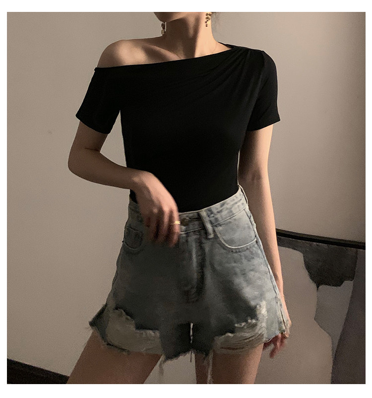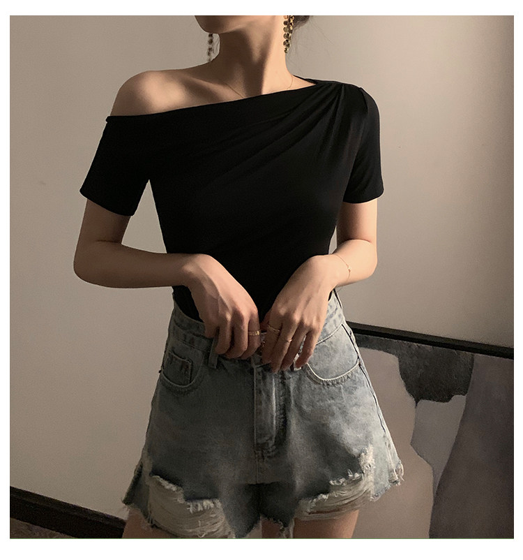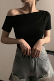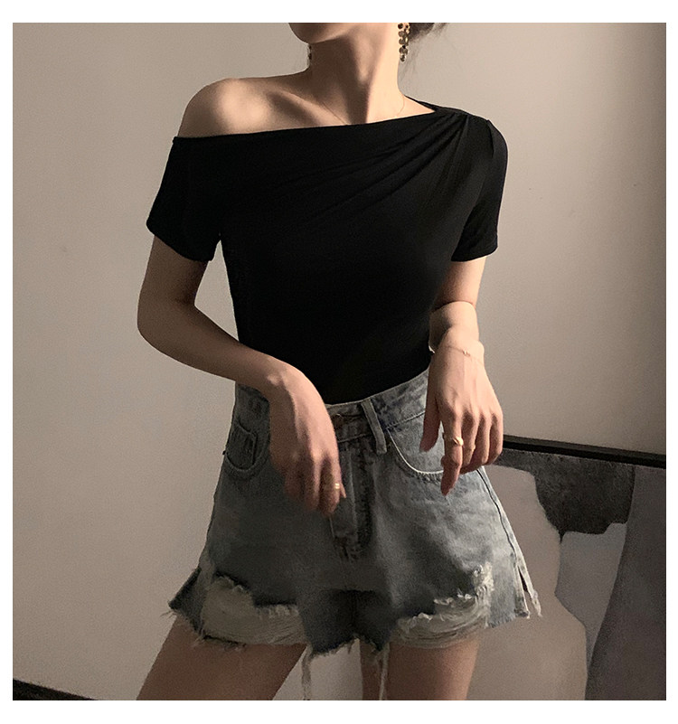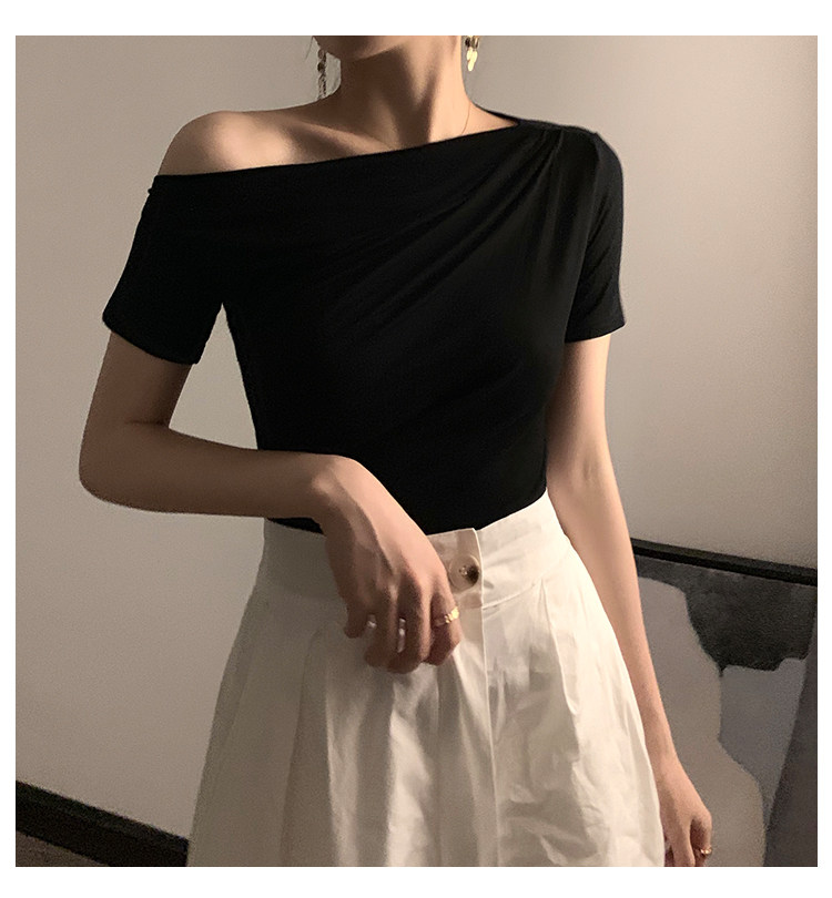 Черная брендовая базовая приятная телу футболка с коротким рукавом, открытые плечи, высокий воротник