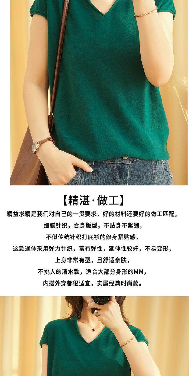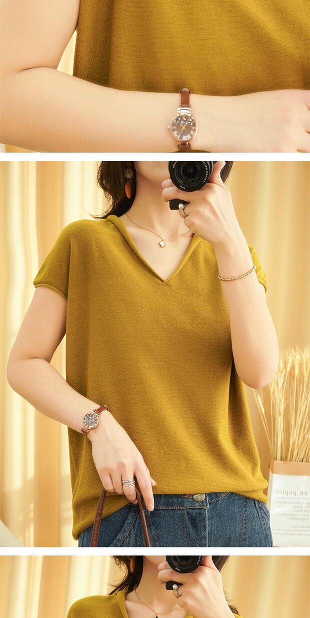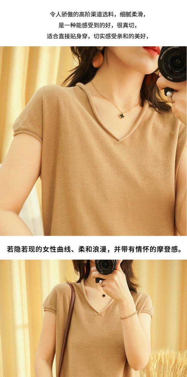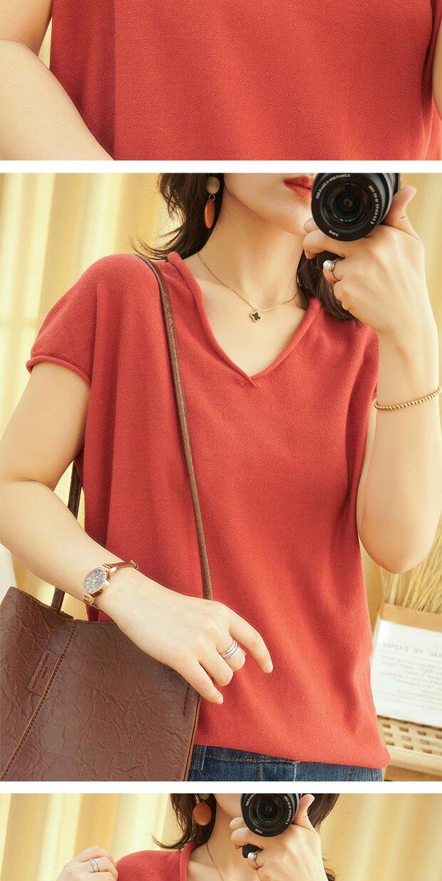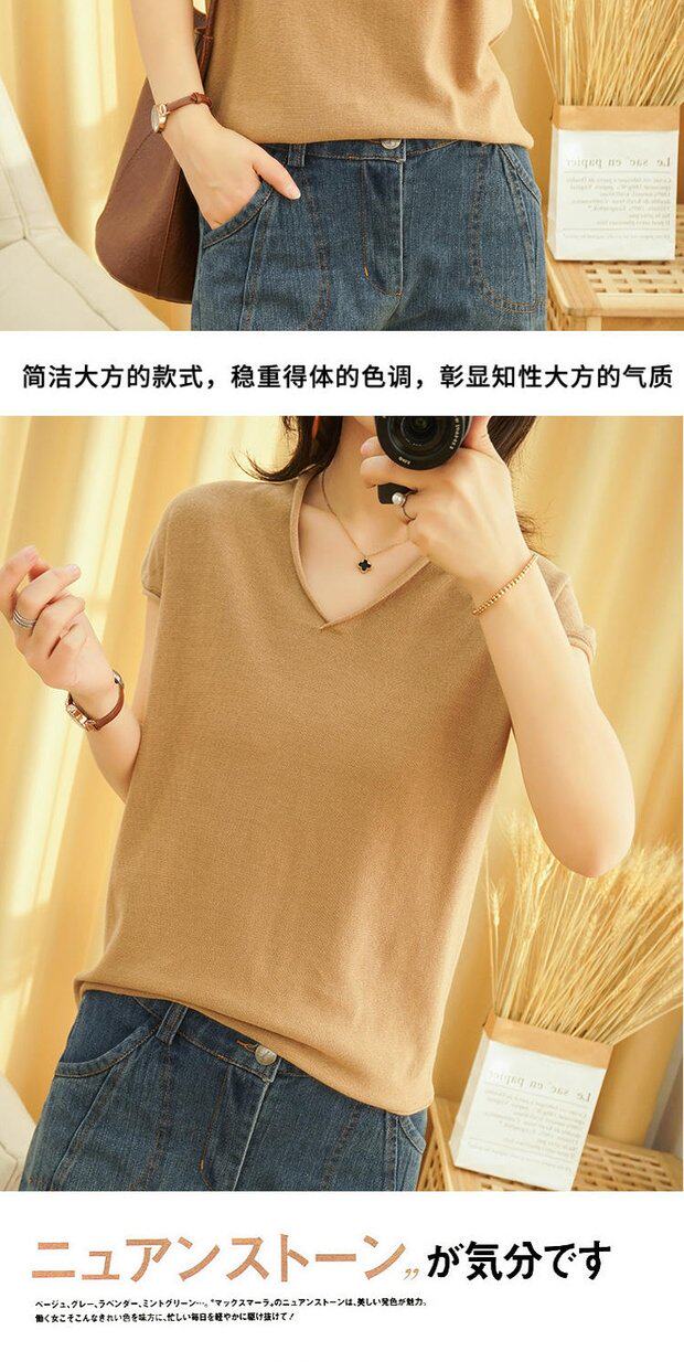 Футболка, трикотажный летний свитер для отдыха, коллекция 2022, из хлопка и льна, V-образный вырез, короткий рукав, свободный крой