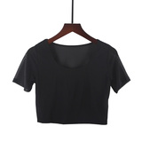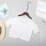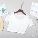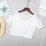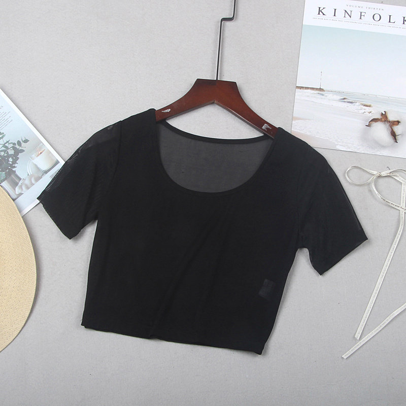 Кружевная шелковая приятная телу тонкая короткая футболка с коротким рукавом, короткий рукав