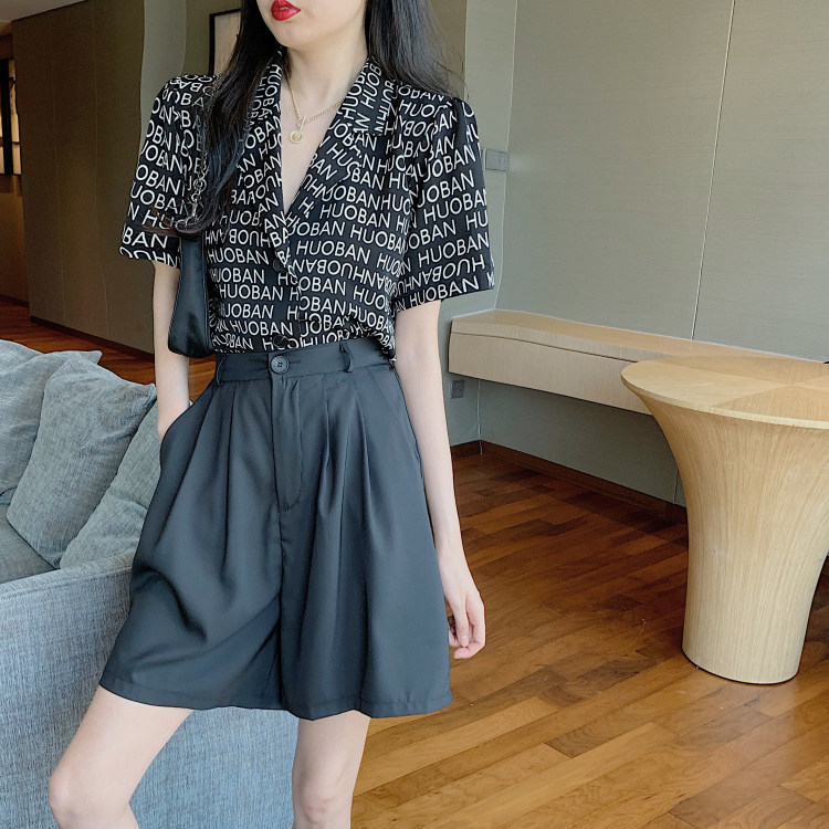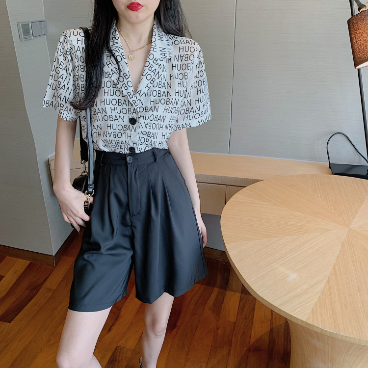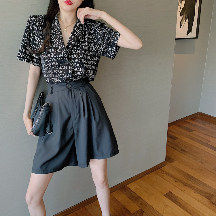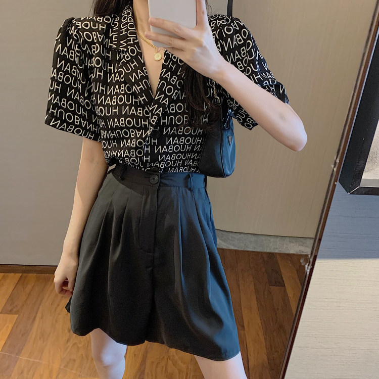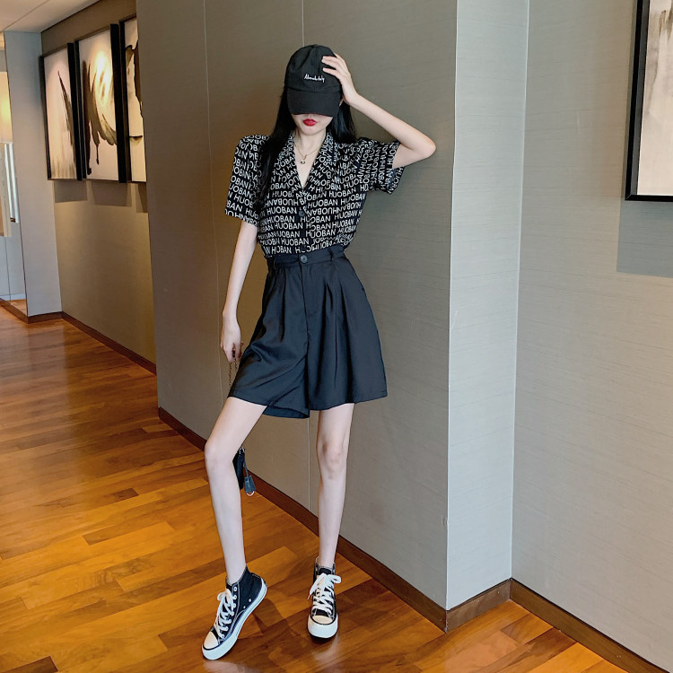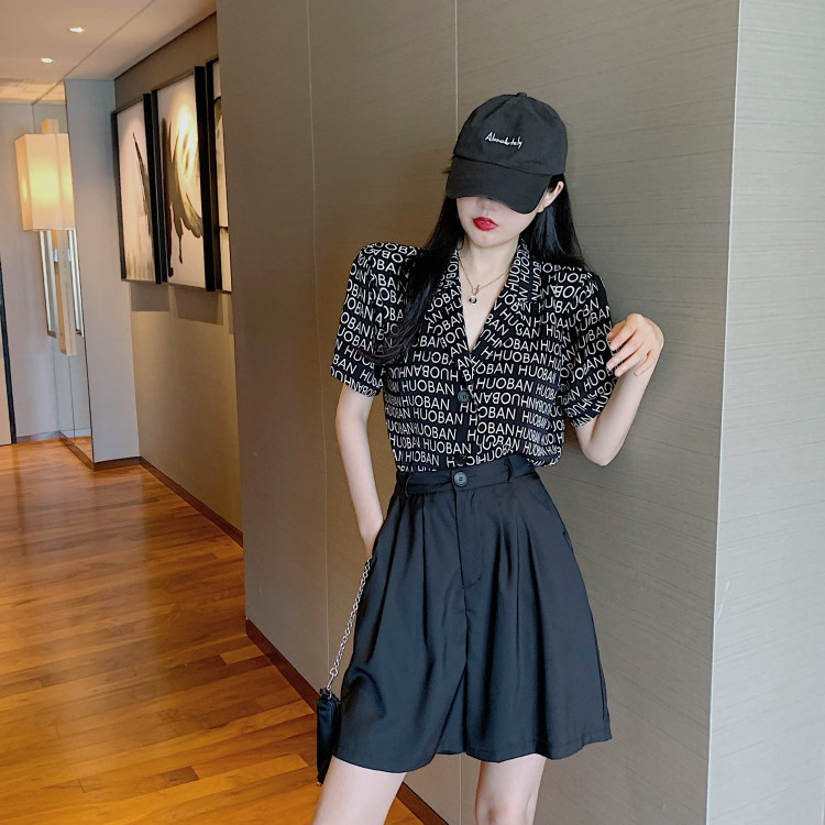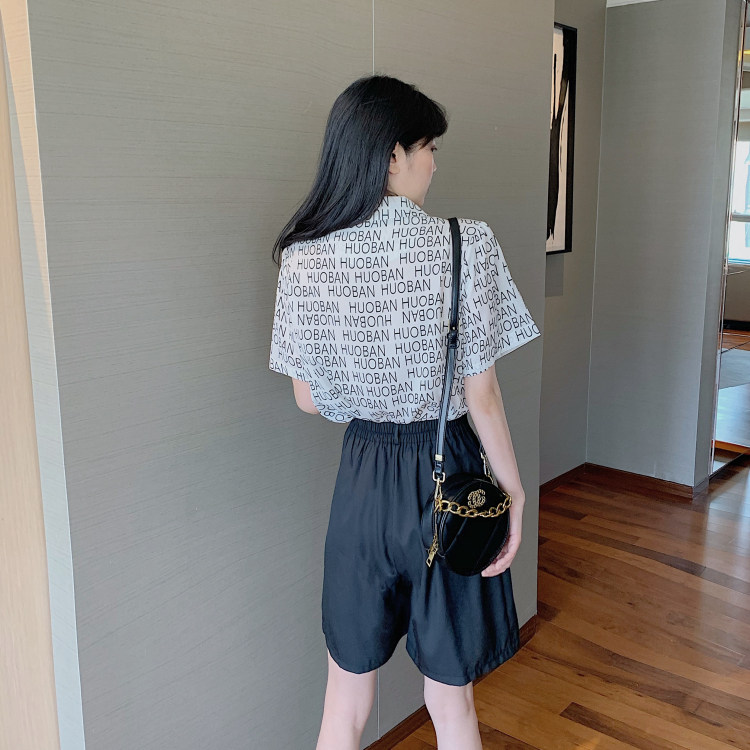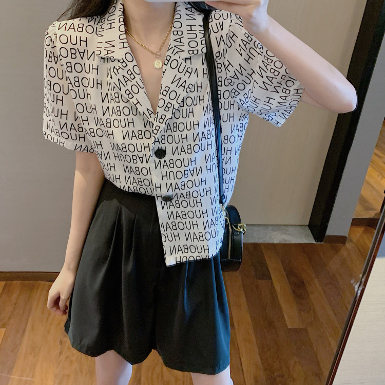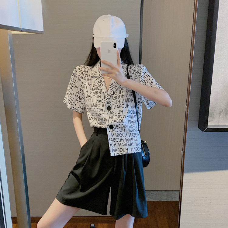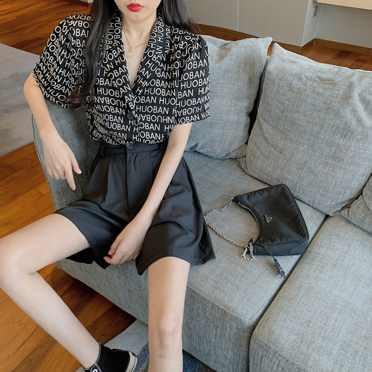 Летняя одежда, ретро сумка с буквами, пиджак классического кроя, рубашка, комплект, коллекция 2021, высокая талия