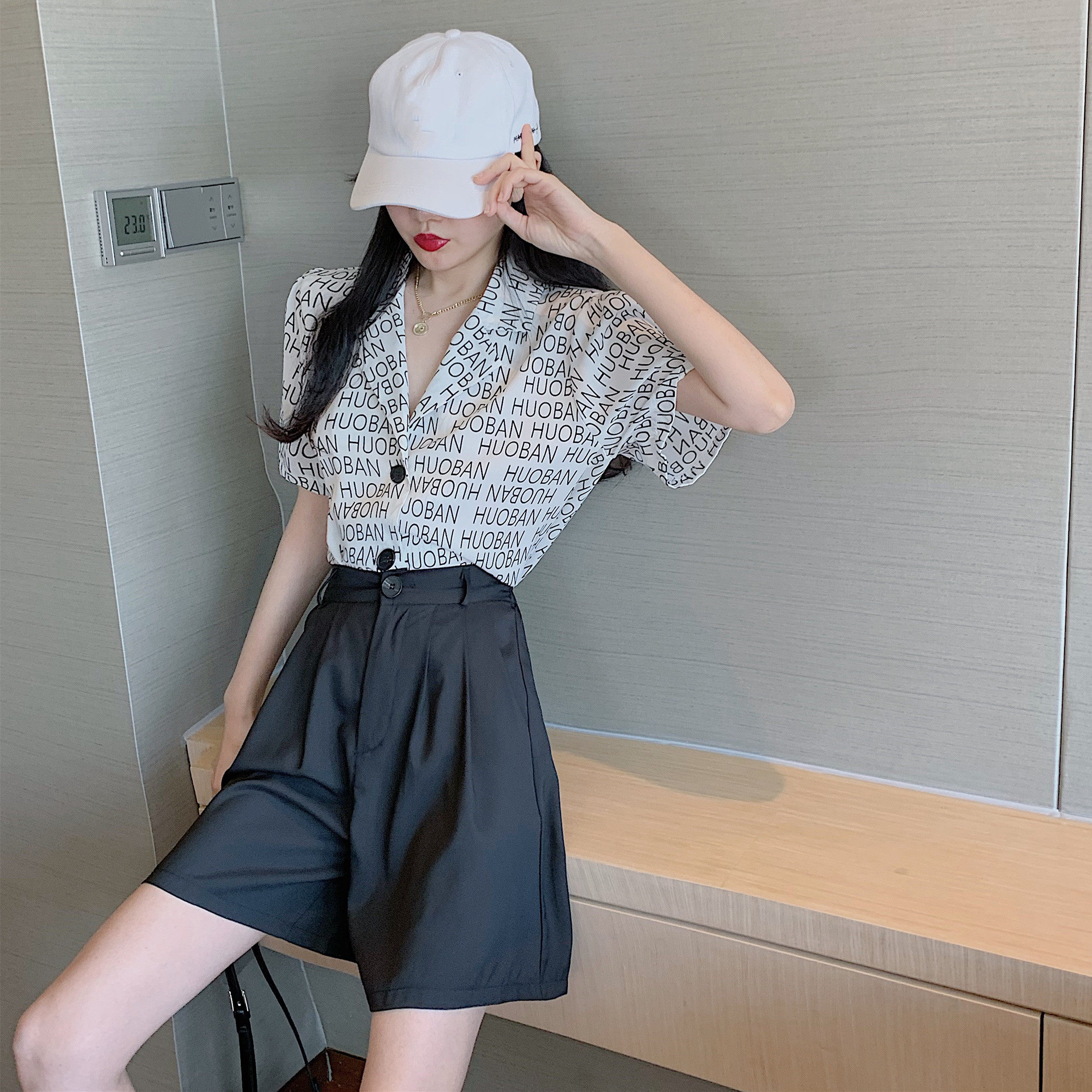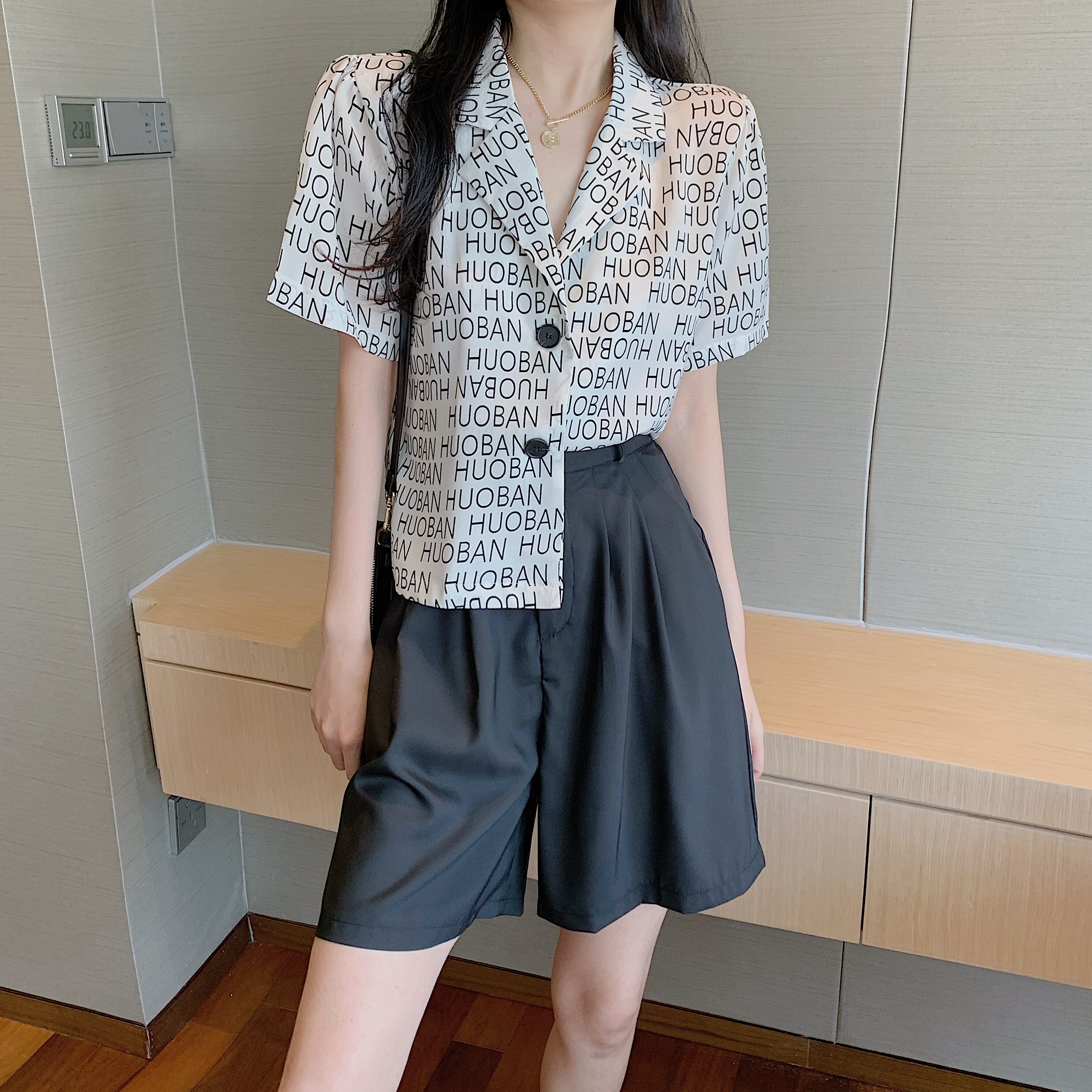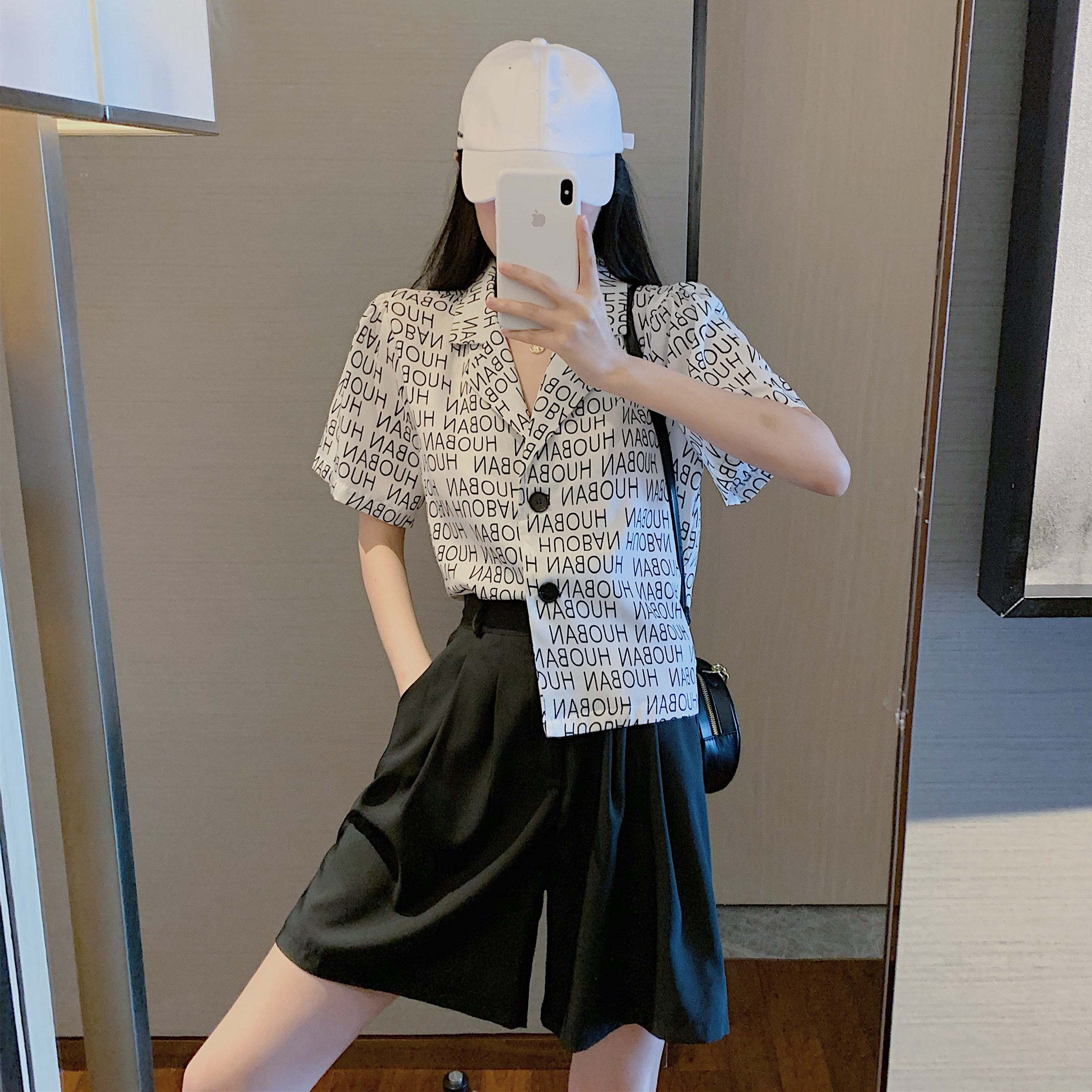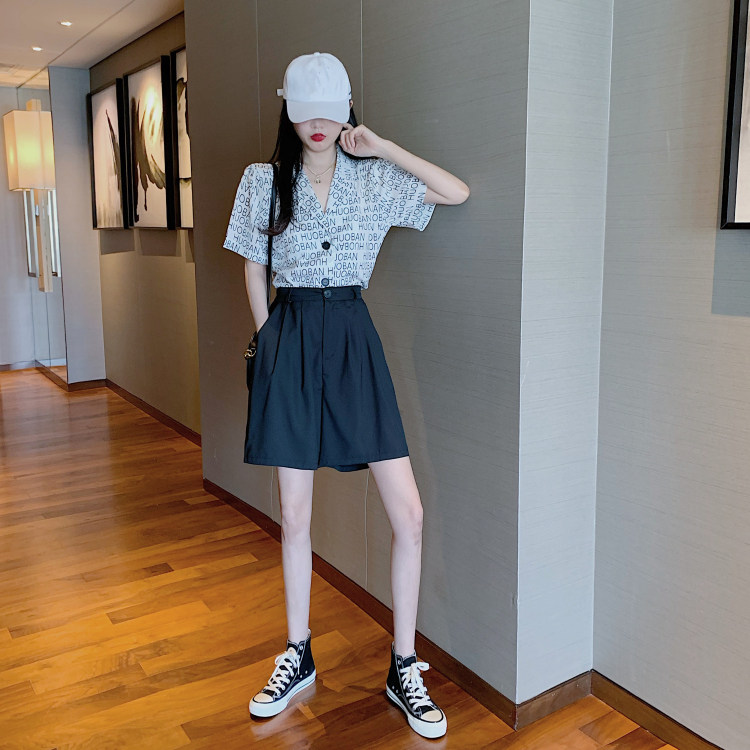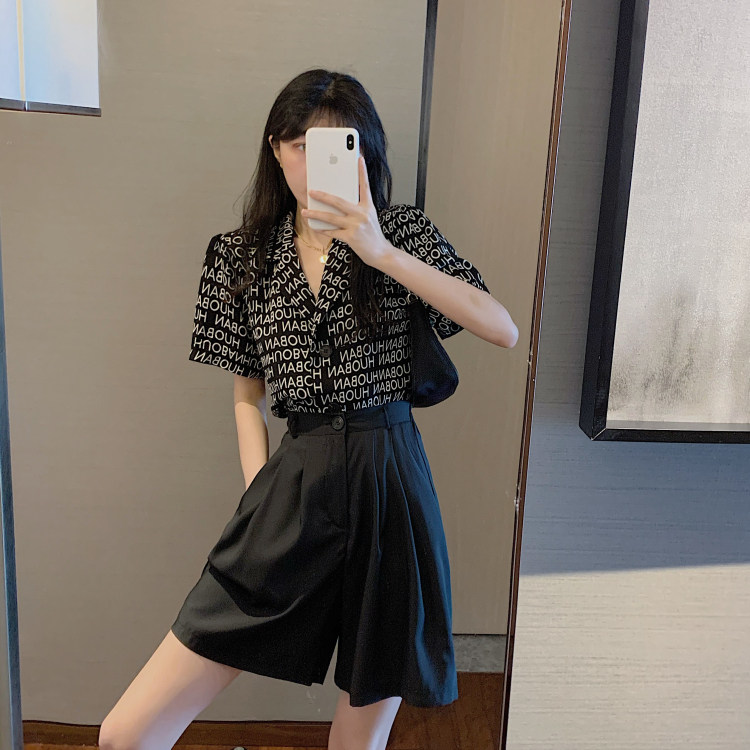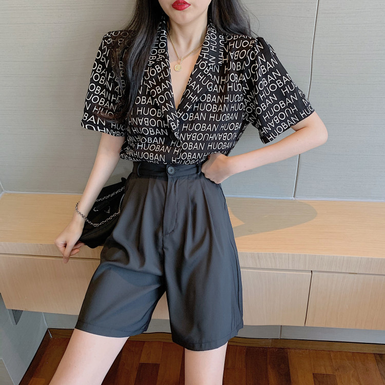 Летняя одежда, ретро сумка с буквами, пиджак классического кроя, рубашка, комплект, коллекция 2021, высокая талия