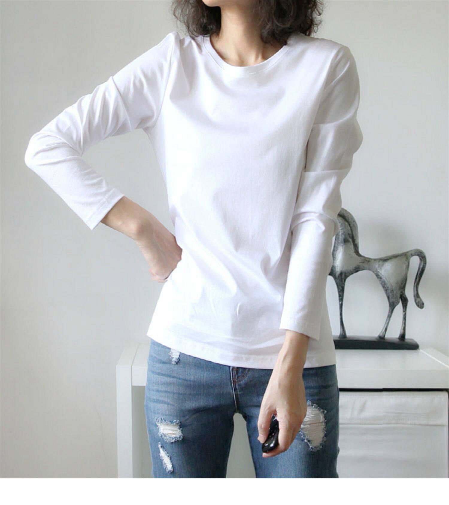 Белый хлопковый осенний базовый приятный телу приталенный лонгслив, в западном стиле