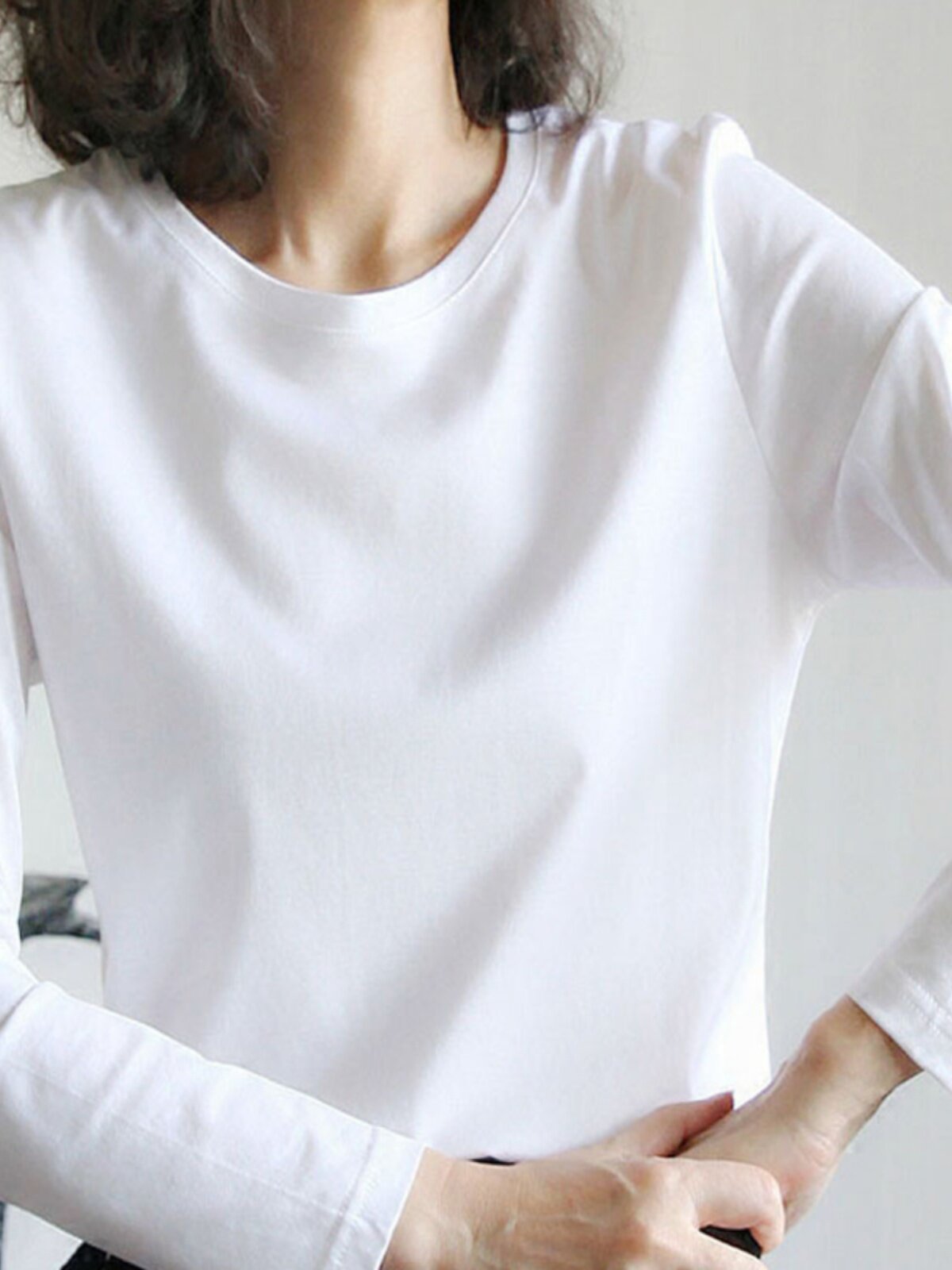 | Цвет: | Белый шелковый лонгслив с круглым воротником |