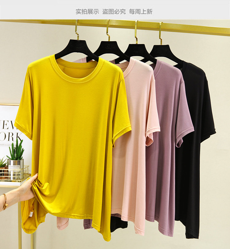 Летняя тонкая базовая приятная телу футболка с коротким рукавом с круглым воротником, сшита из модала, большой размер, свободный крой