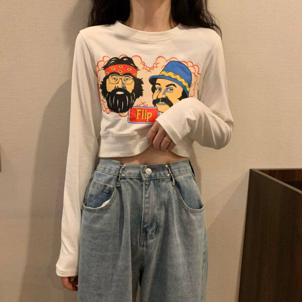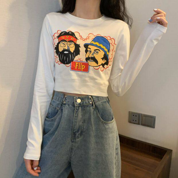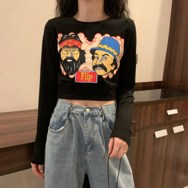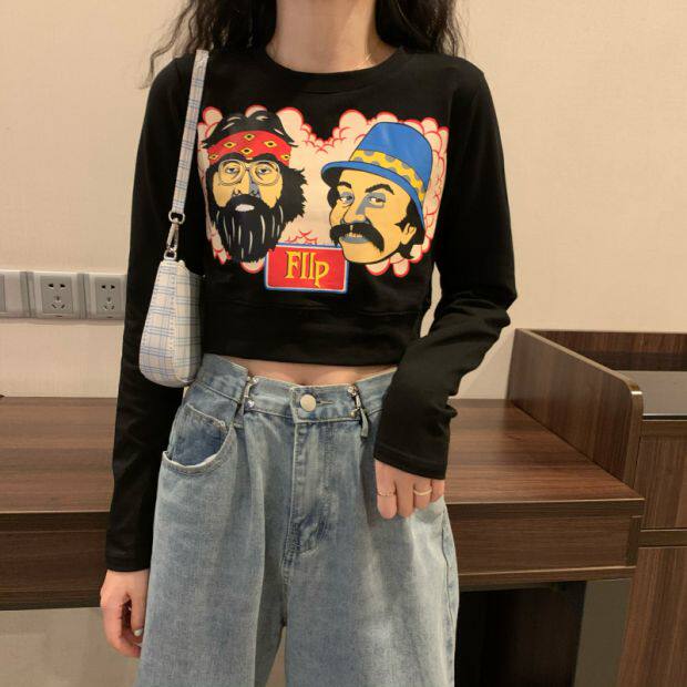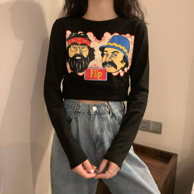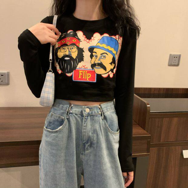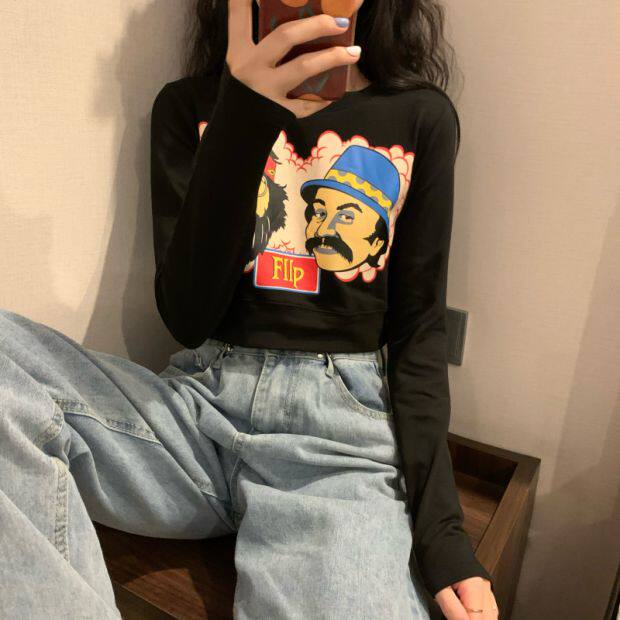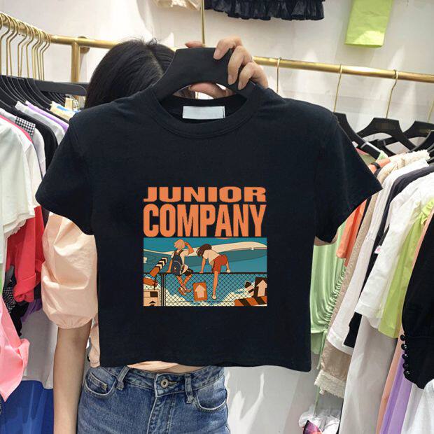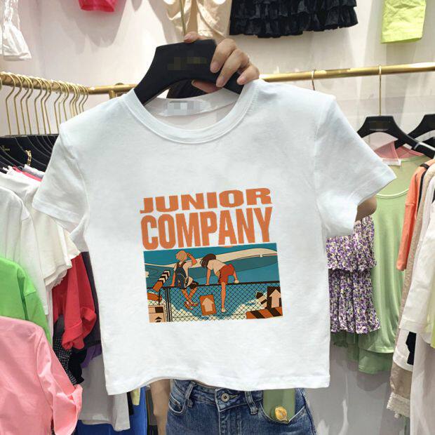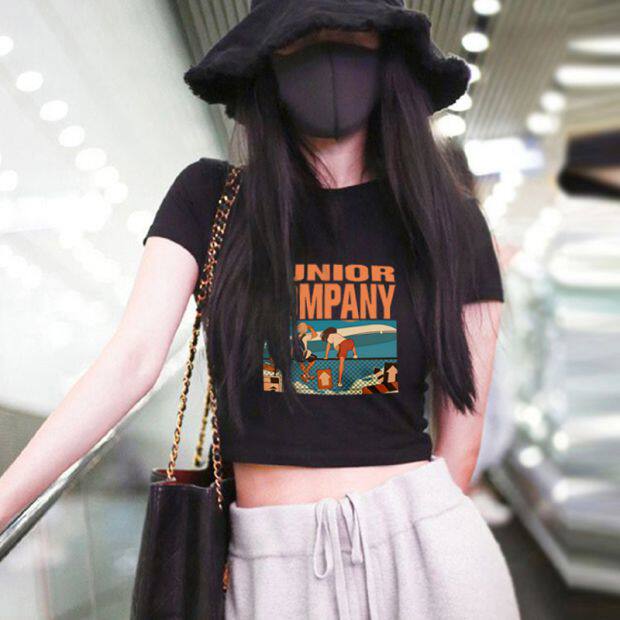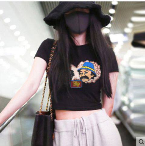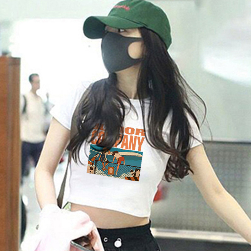 Тонкая короткая приталенная футболка с коротким рукавом, высокая талия