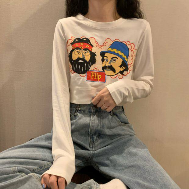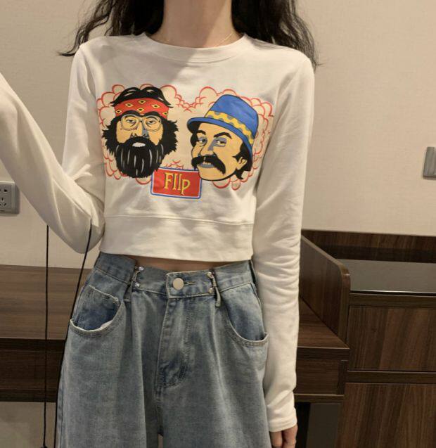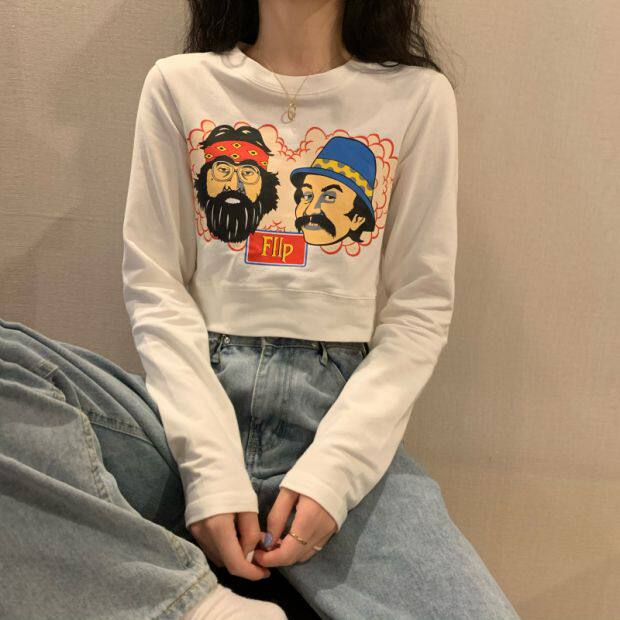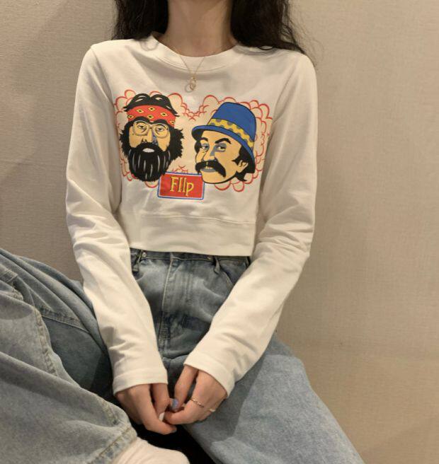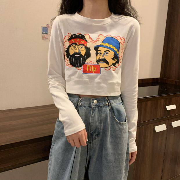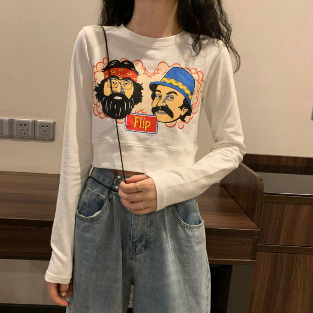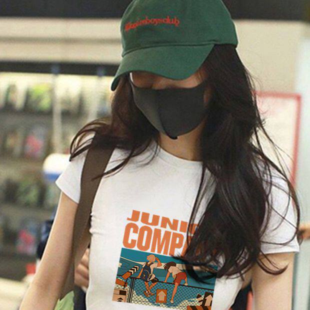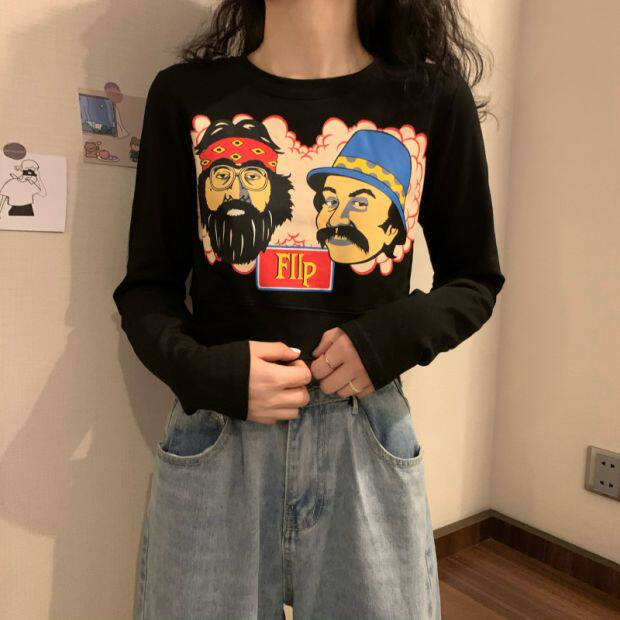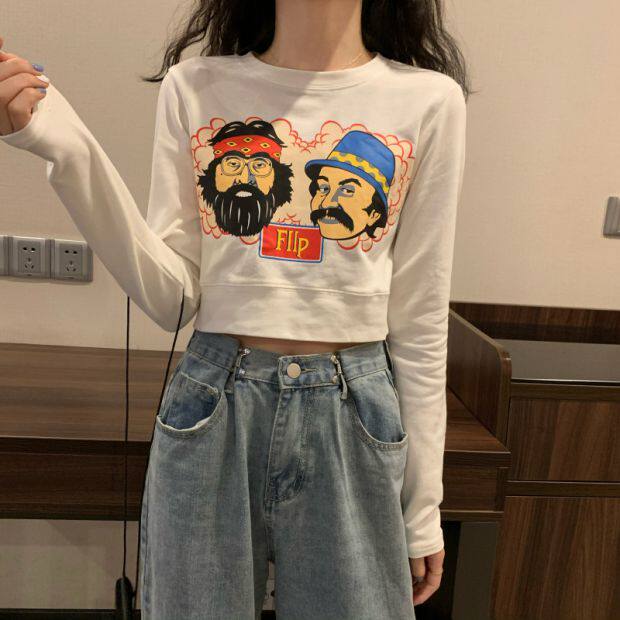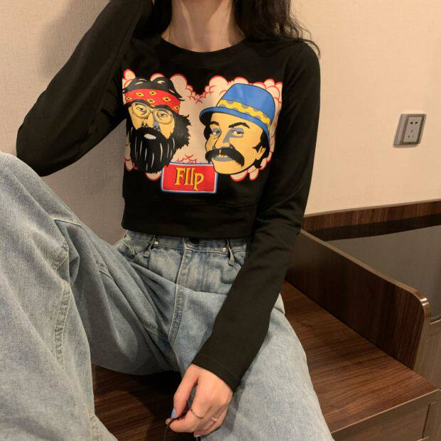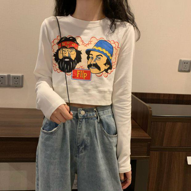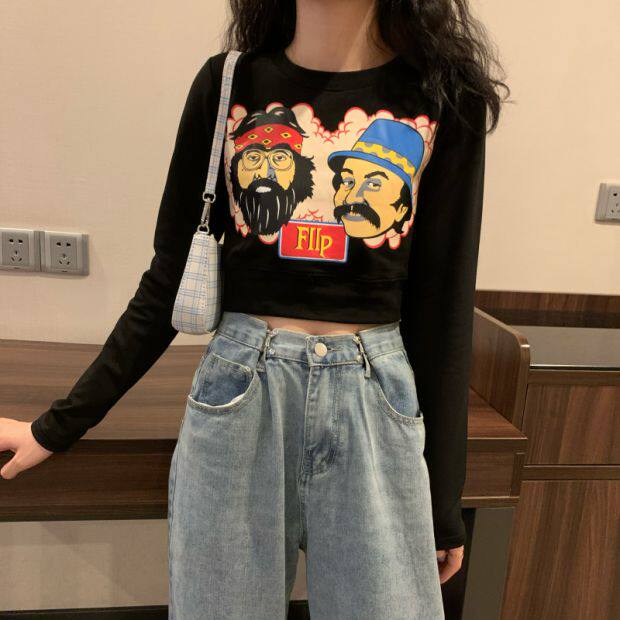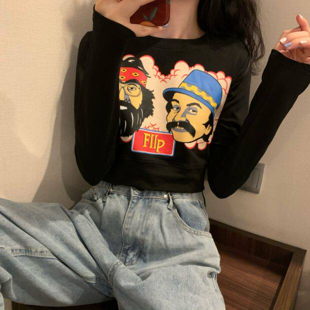 Тонкая короткая приталенная футболка с коротким рукавом, высокая талия