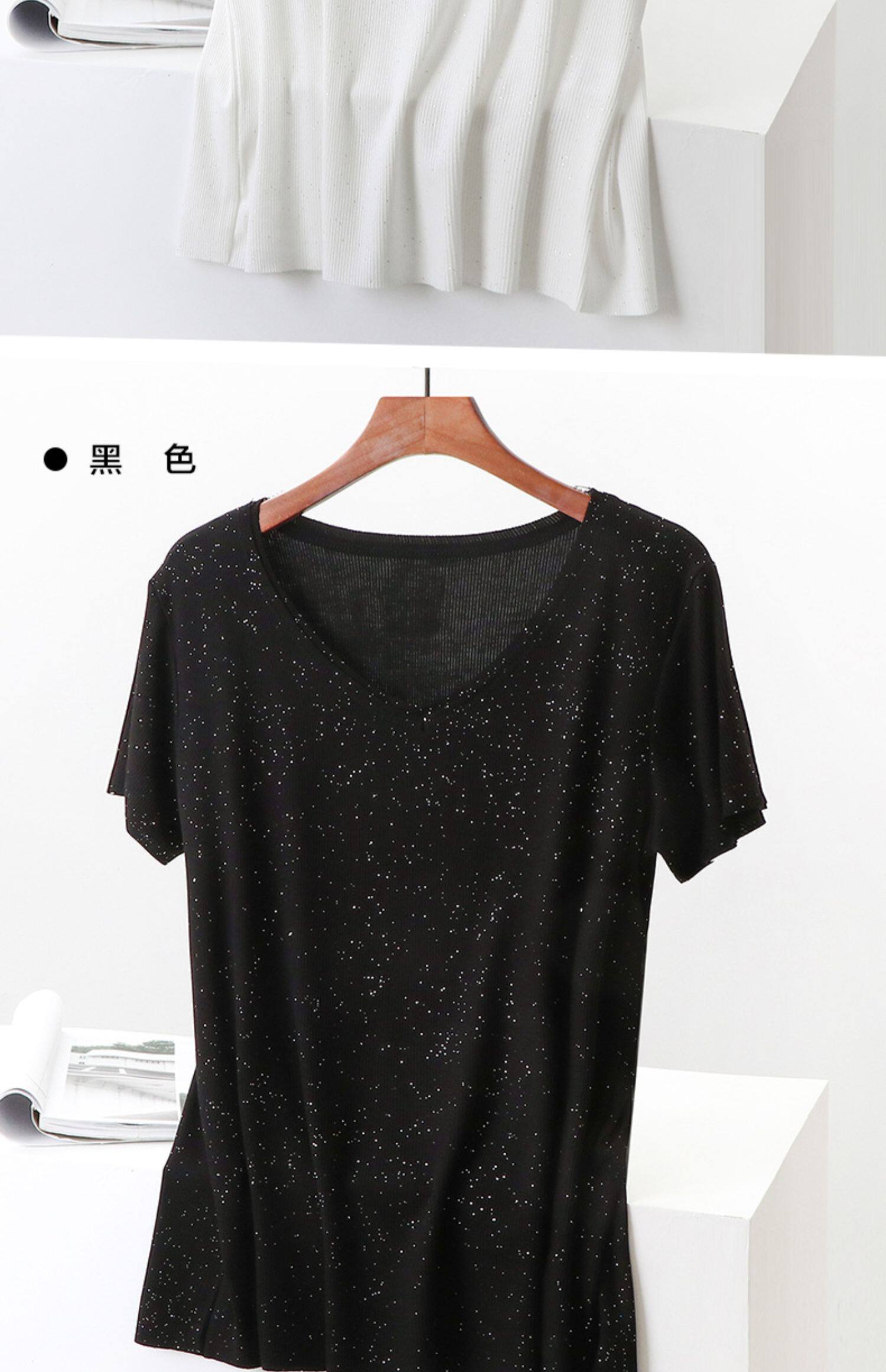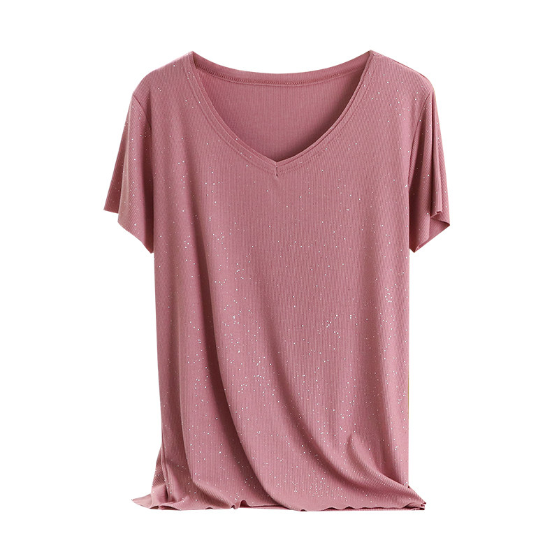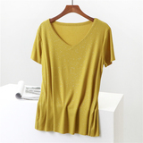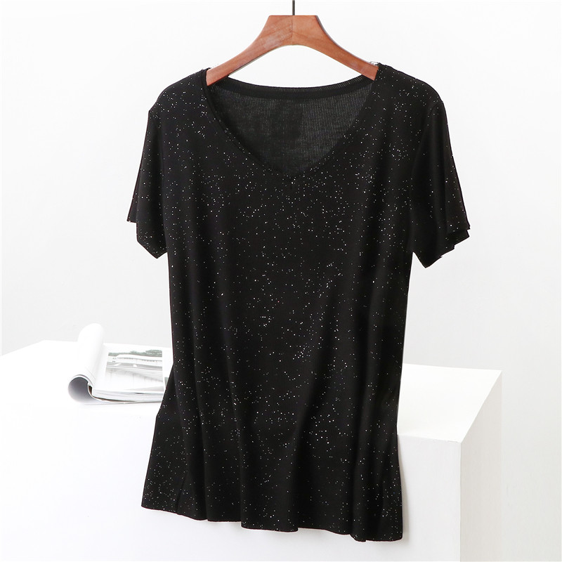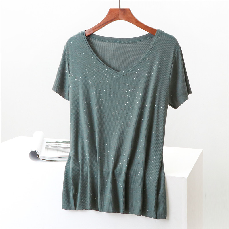 Летние блестки для ногтей, тонкая базовая приятная телу универсальная футболка, V-образный вырез, короткий рукав, не оставляет следов, оверсайз