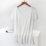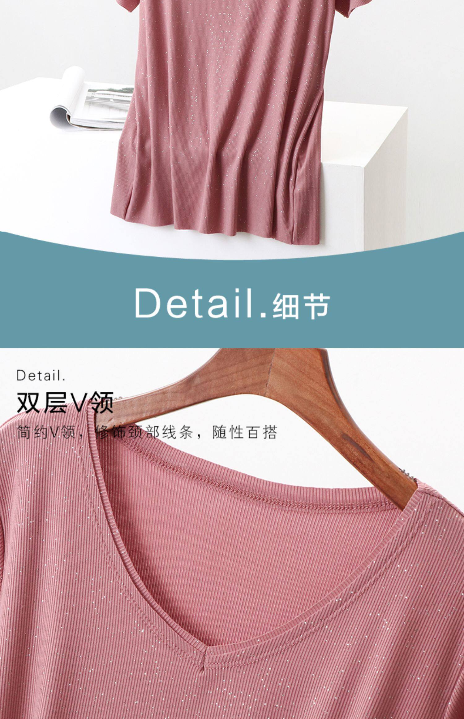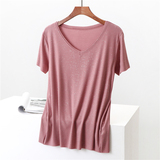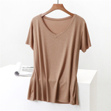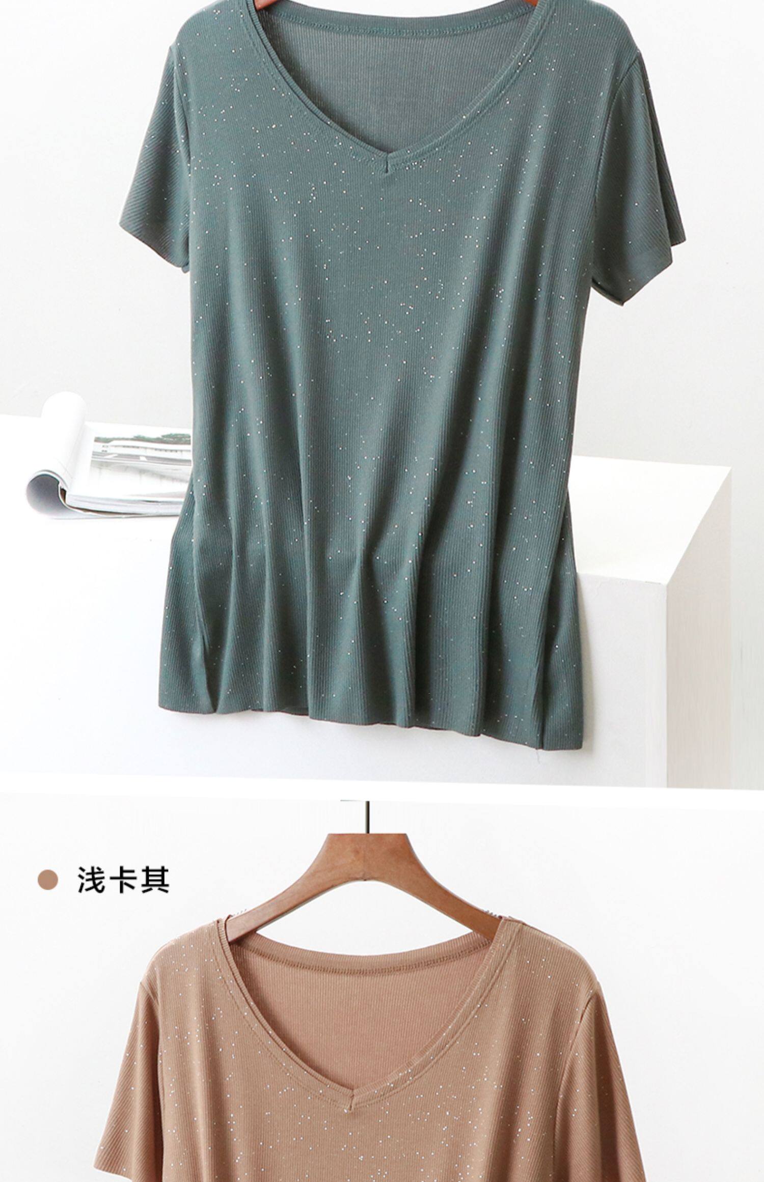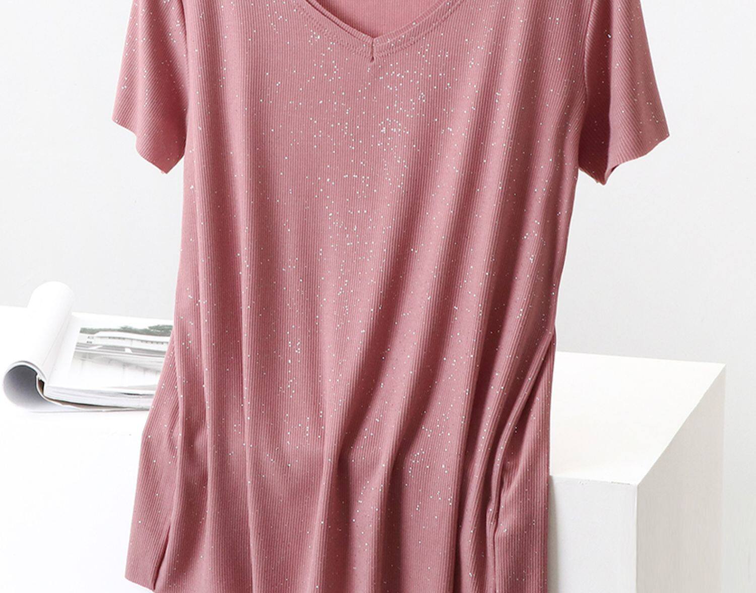 Летние блестки для ногтей, тонкая базовая приятная телу универсальная футболка, V-образный вырез, короткий рукав, не оставляет следов, оверсайз