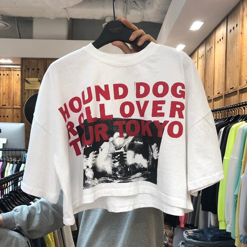 Tide, короткая футболка, оверсайз, короткий рукав, высокая талия