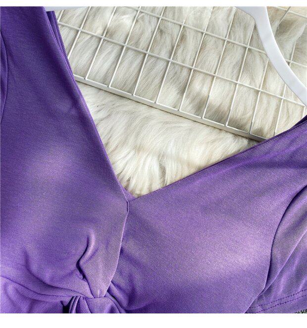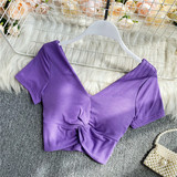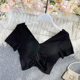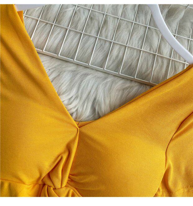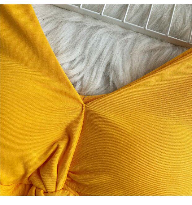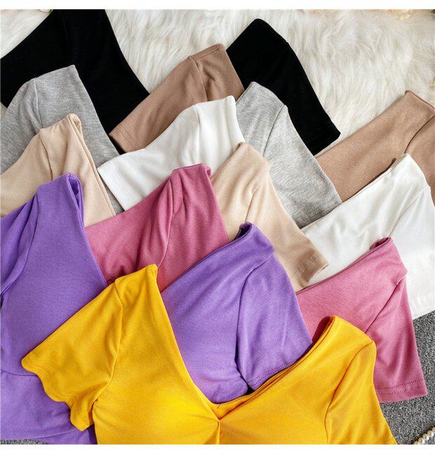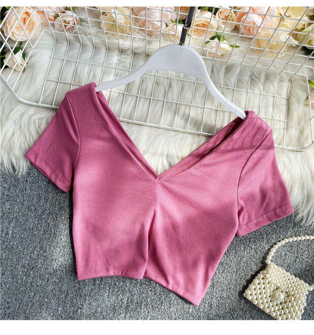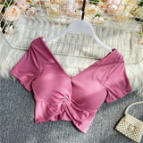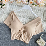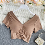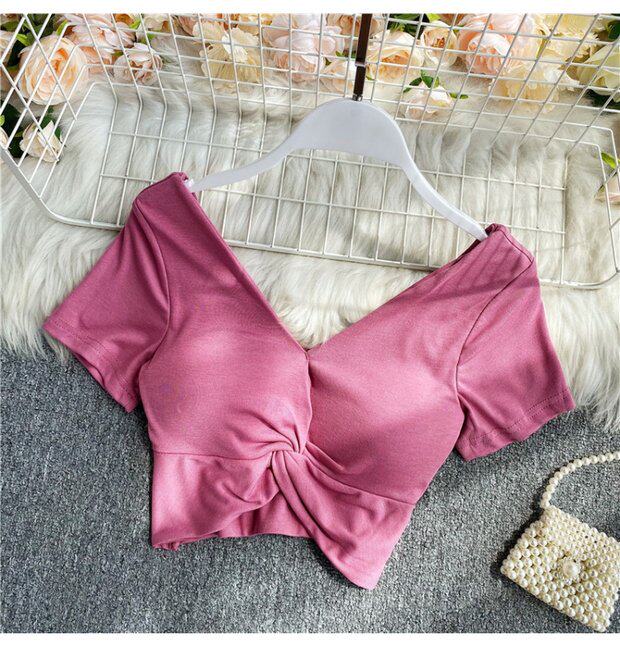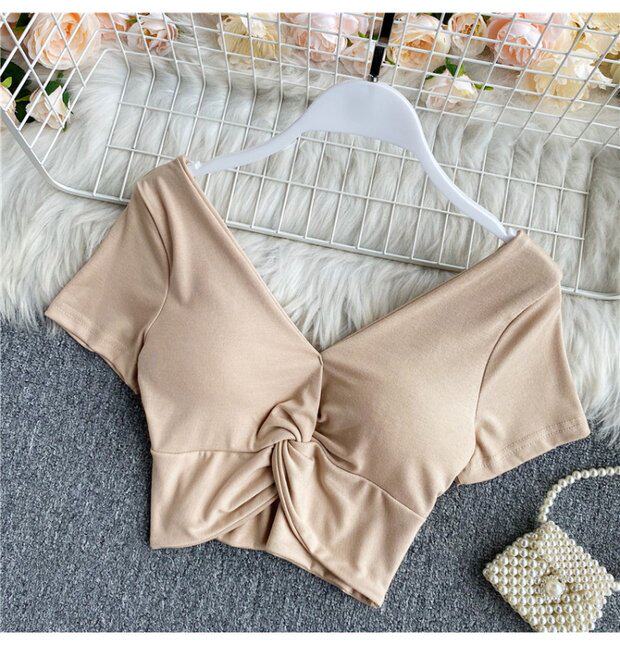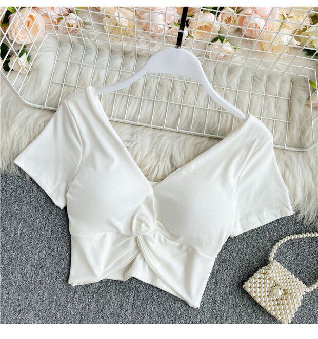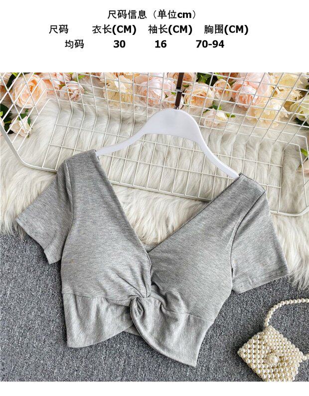 Ретро летняя одежда, сексуальный галстук, топ с чашечками, короткая футболка, сезон 2021, V-образный вырез, высокая талия