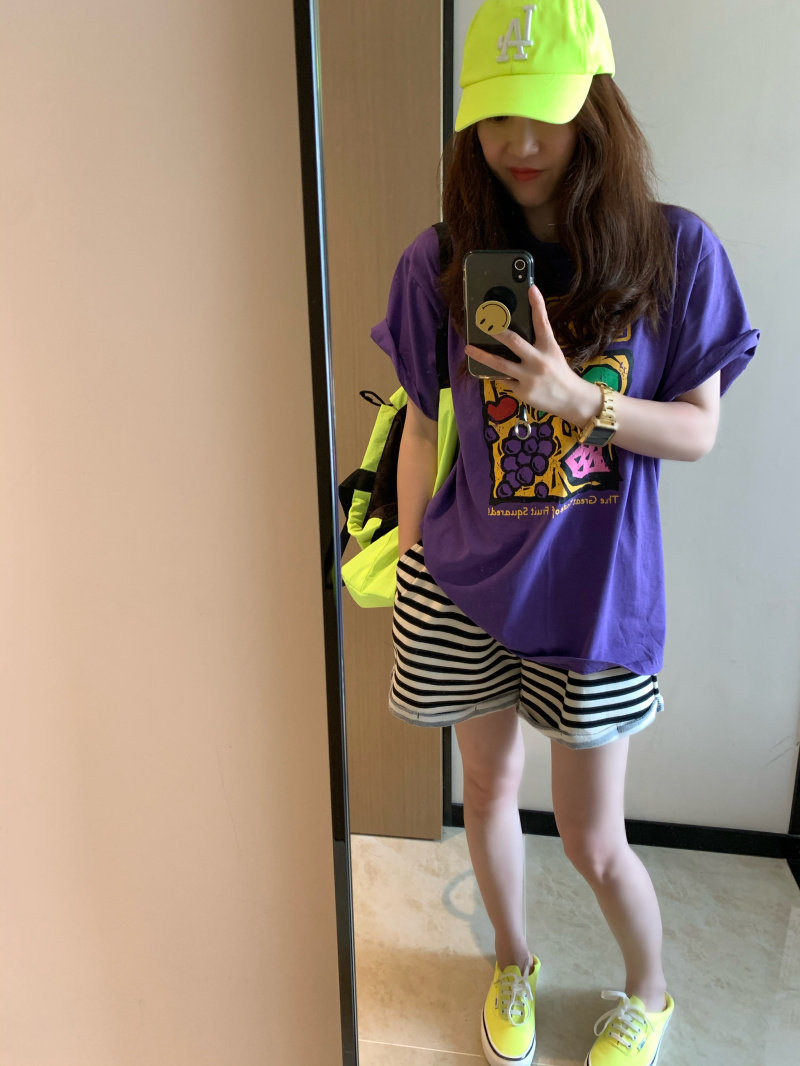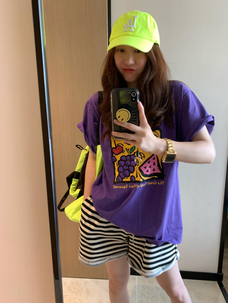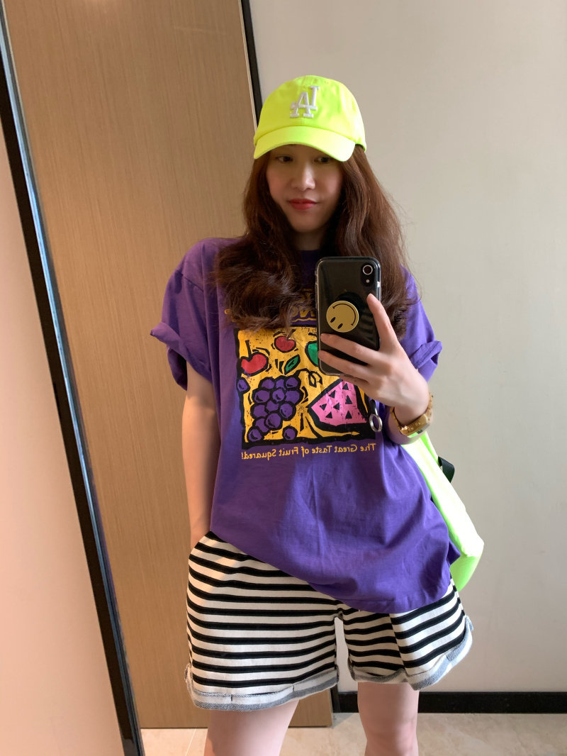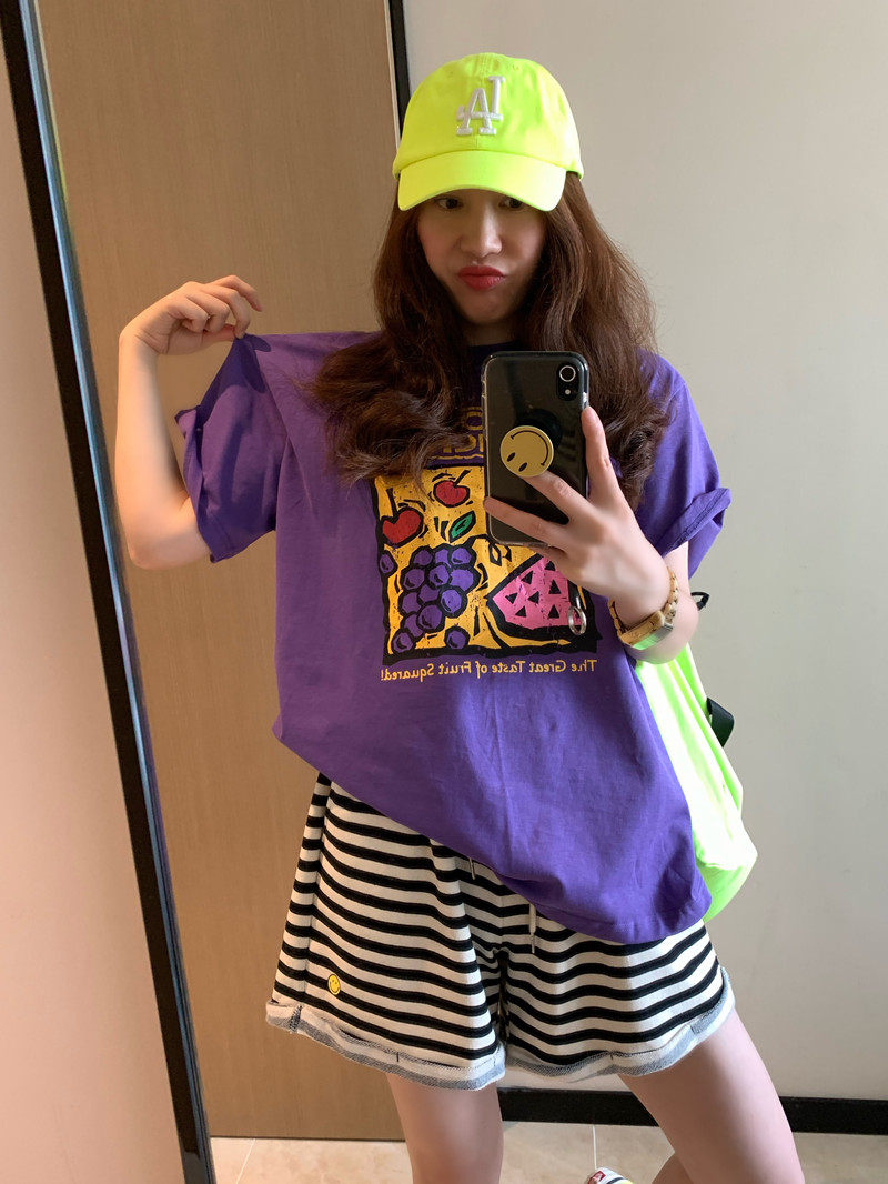 Дизайнерская летняя сиреневая футболка с коротким рукавом, (в наличии на складе), в корейском стиле, короткий рукав