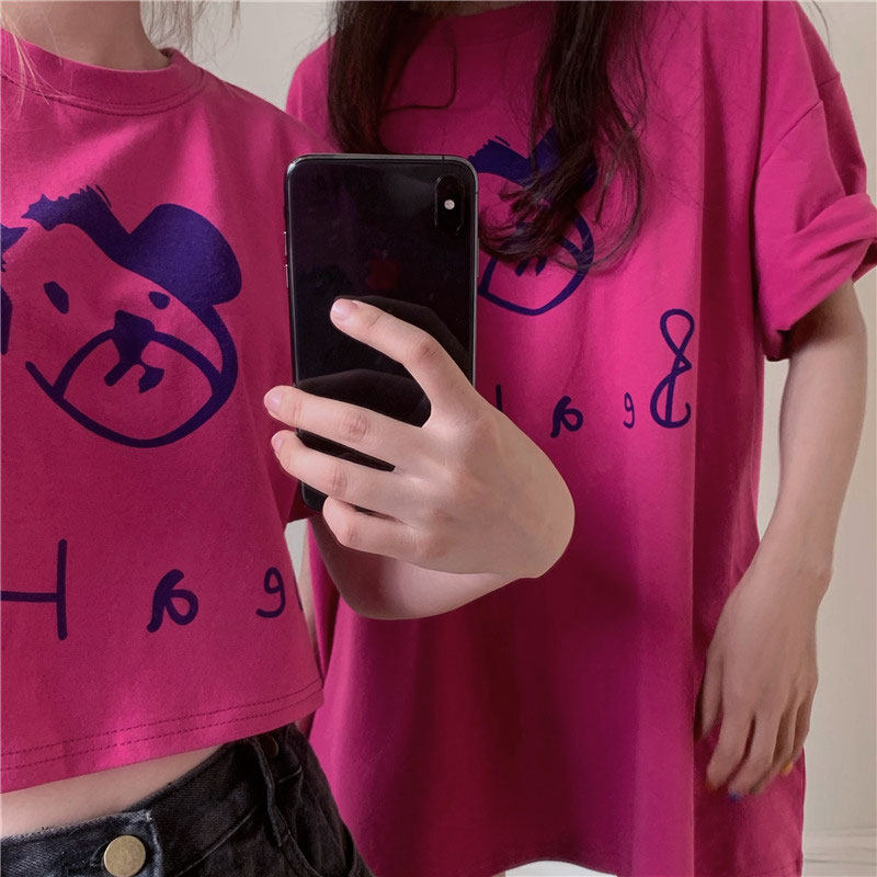 Брендовая летняя короткая красная футболка для влюбленных, короткий рукав, популярно в интернете