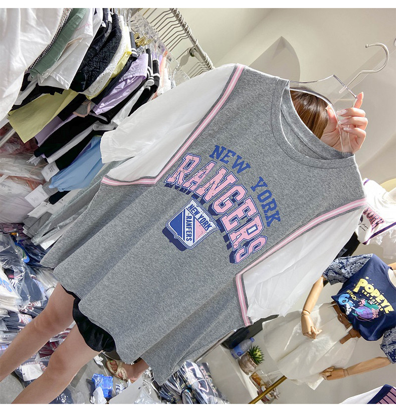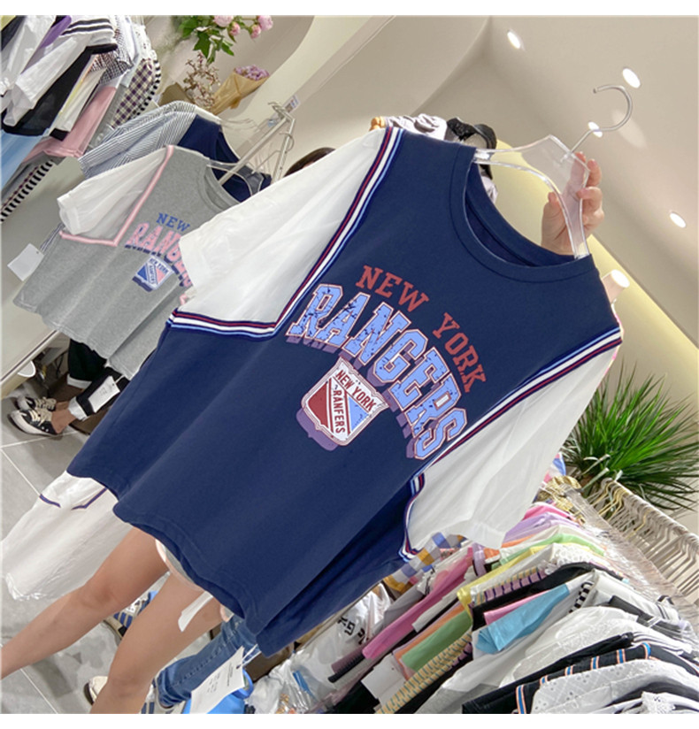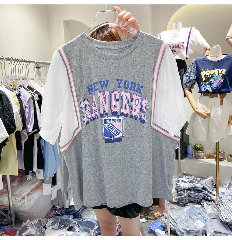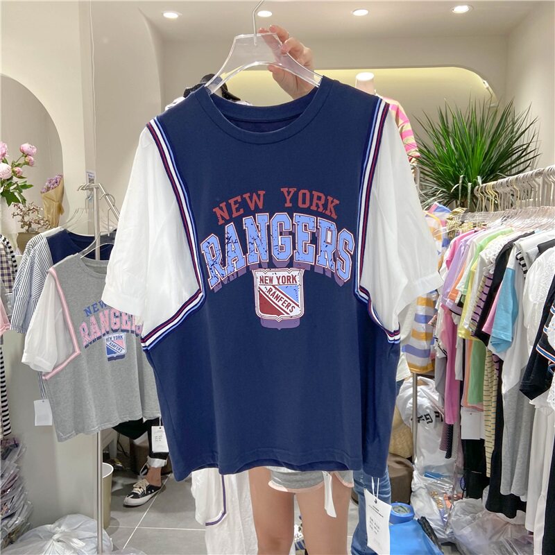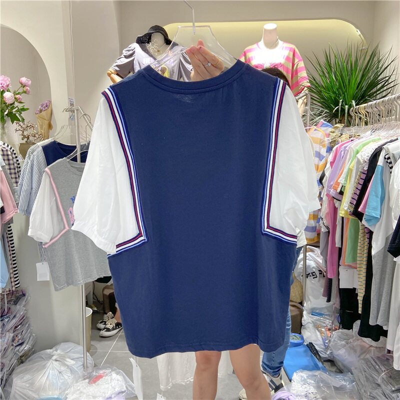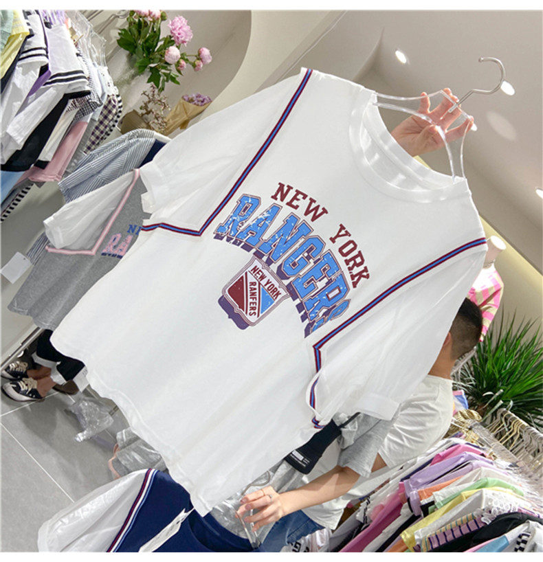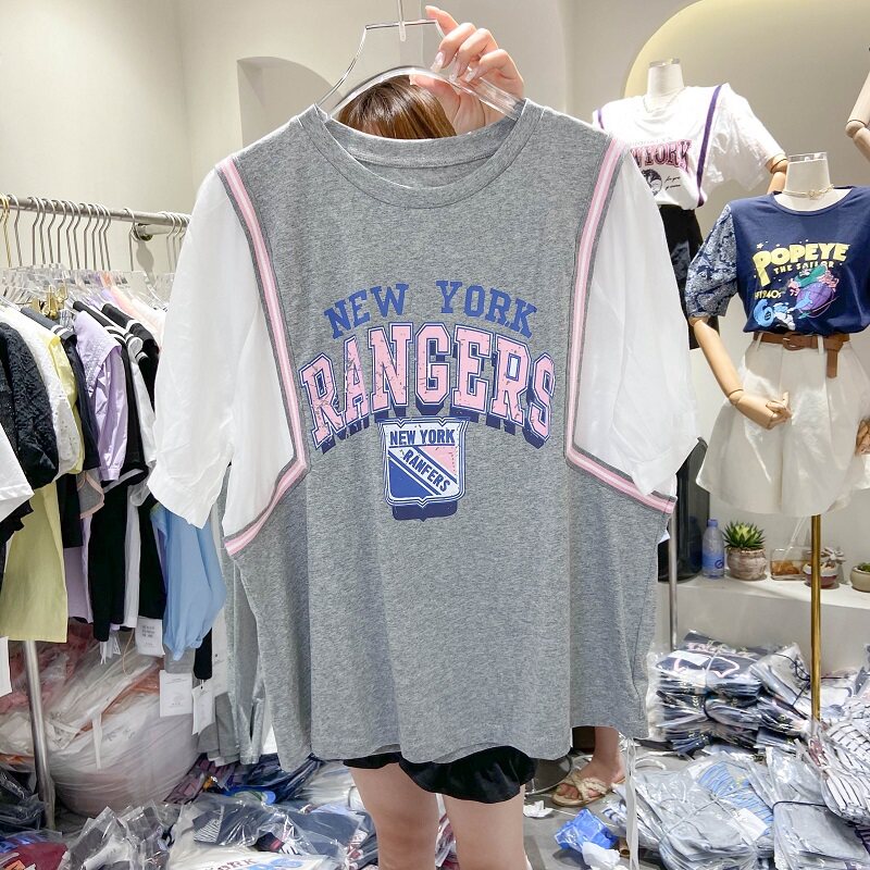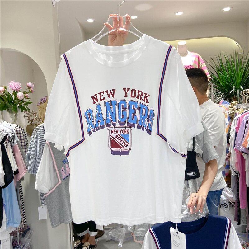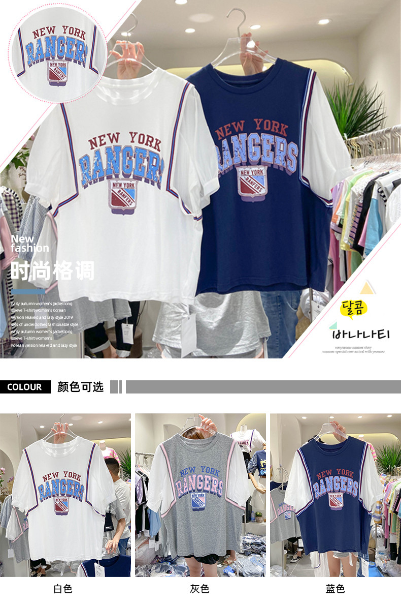 Универсальный мультяшный комплект для отдыха с круглым воротником с буквами, футболка, сезон 2021, в корейском стиле, оверсайз