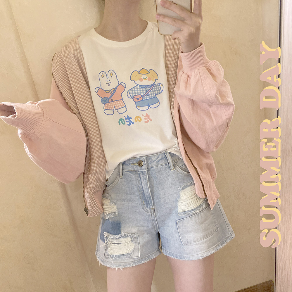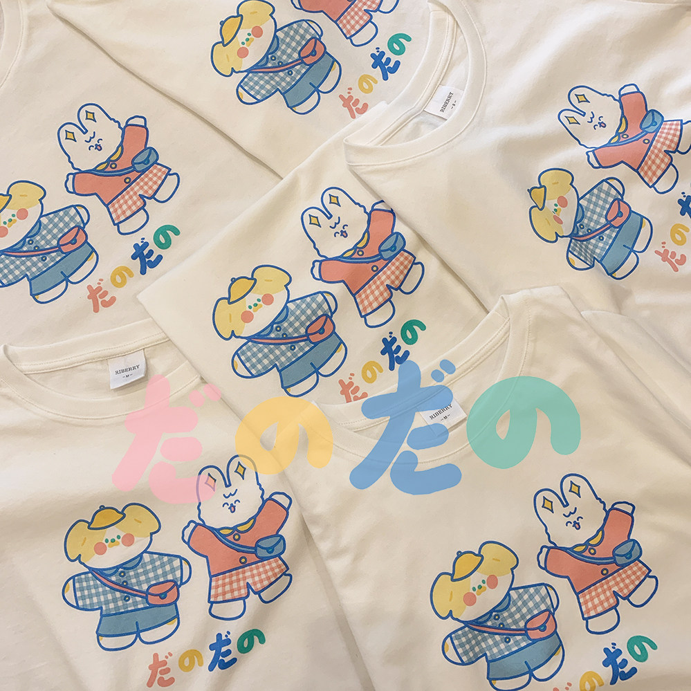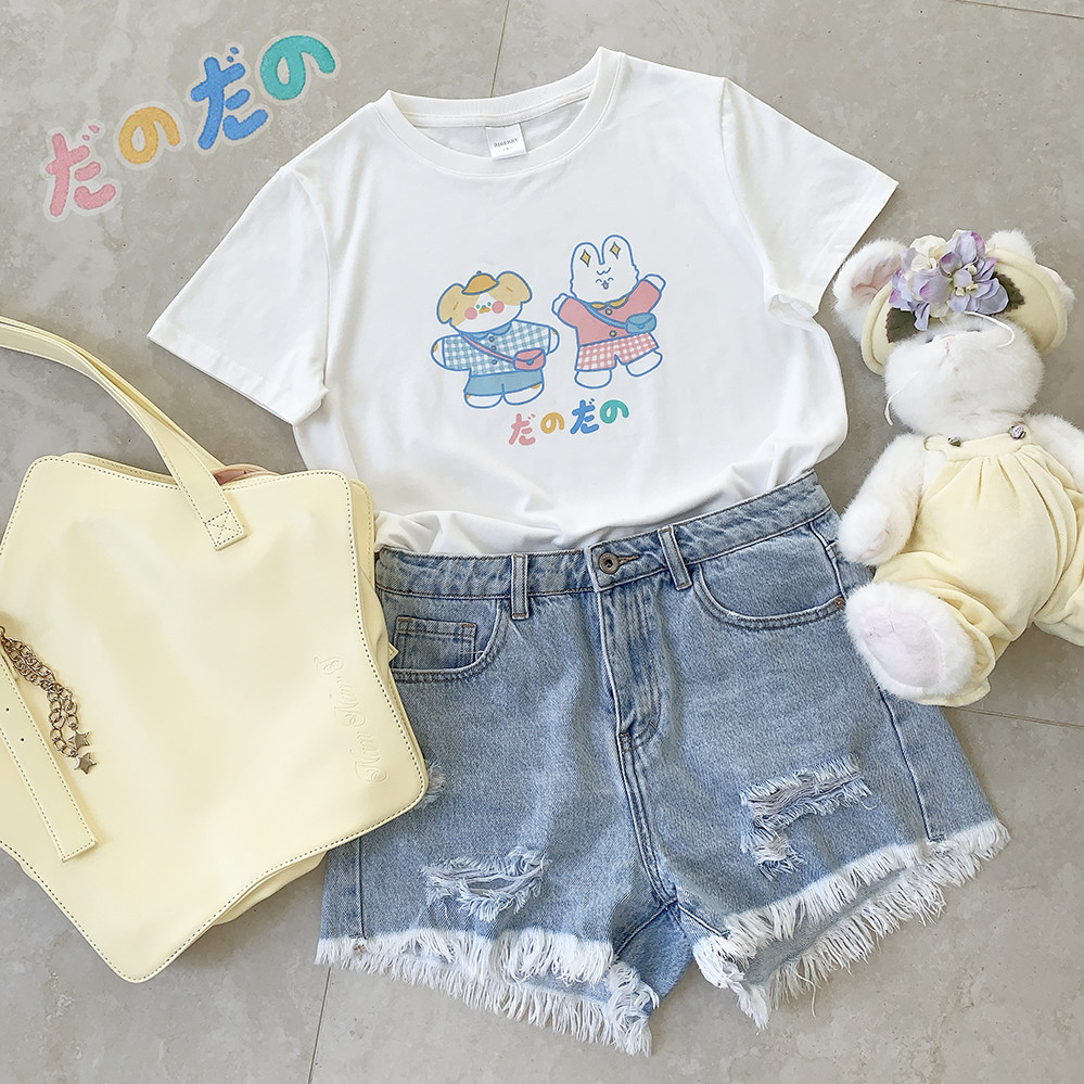Оригинальный милый мультяшный кролик, белая футболка с коротким рукавом