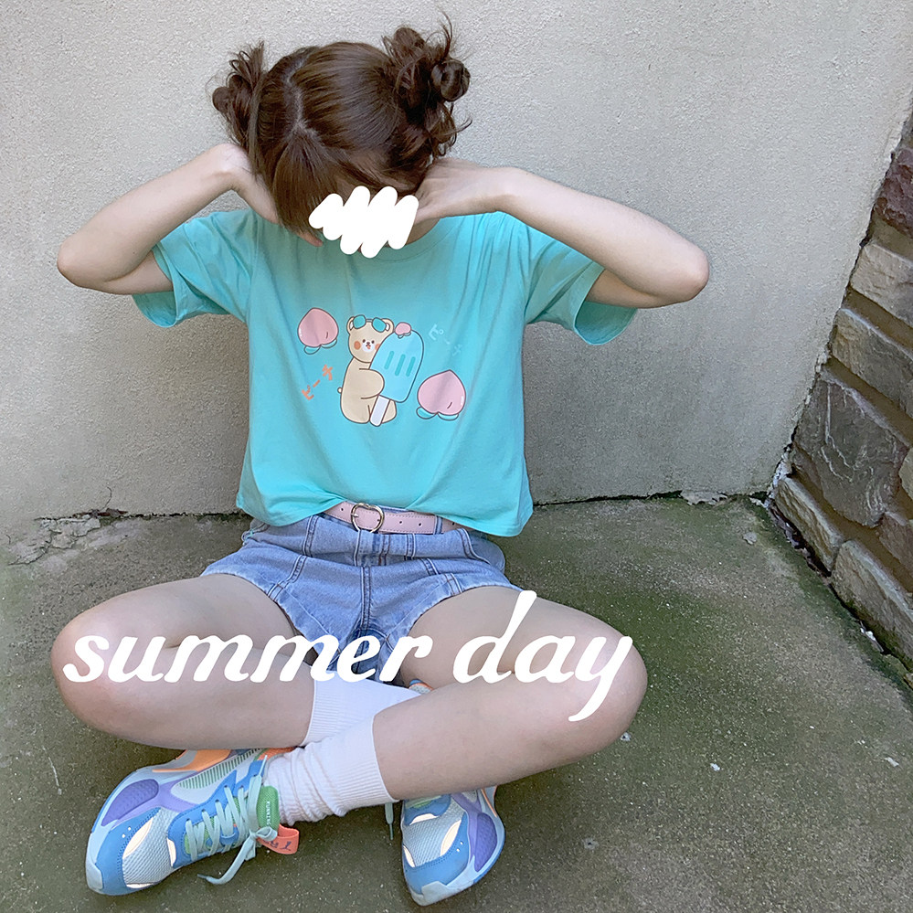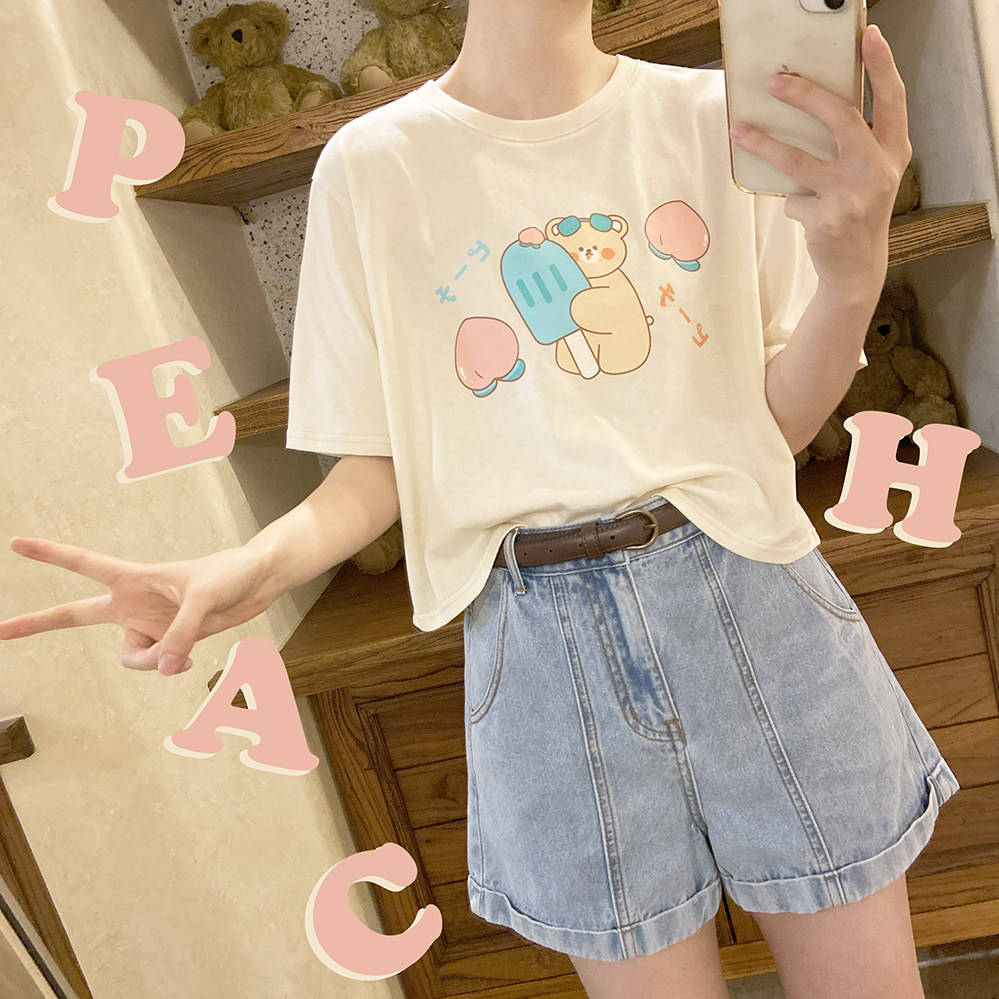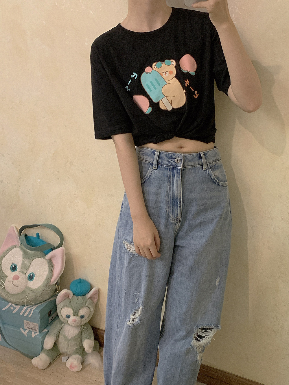 Милая бежевая черная зеленая футболка