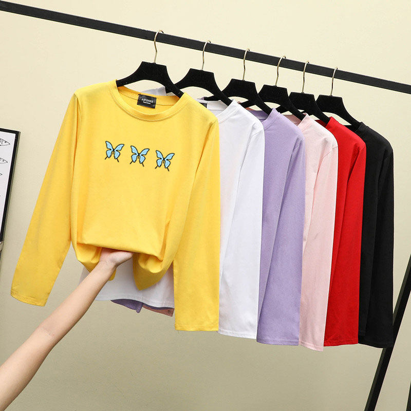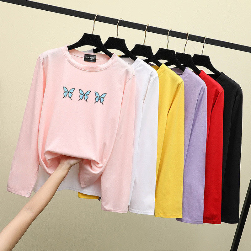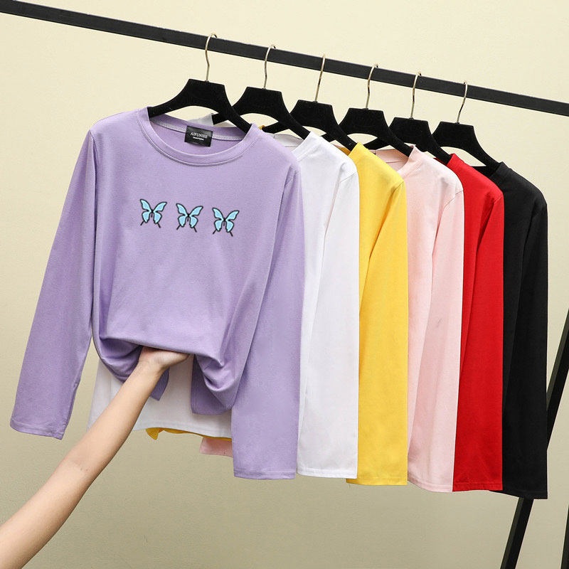 Весенний базовый приятный телу хлопковый осенний лонгслив для школьников, для средней школы, в западном стиле