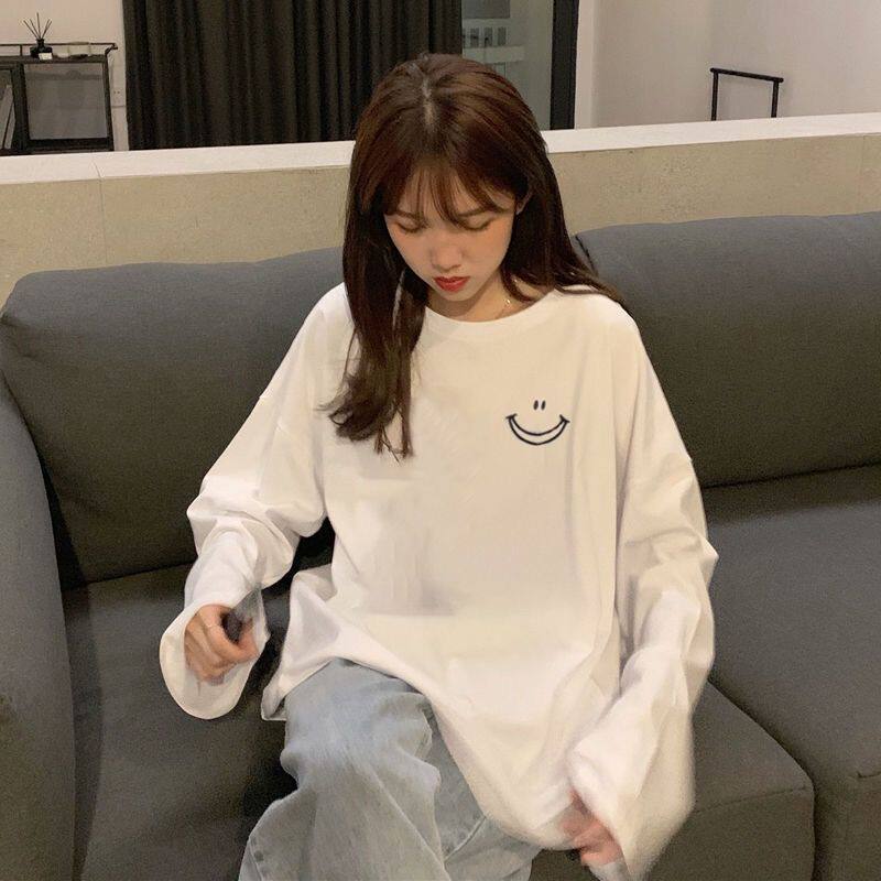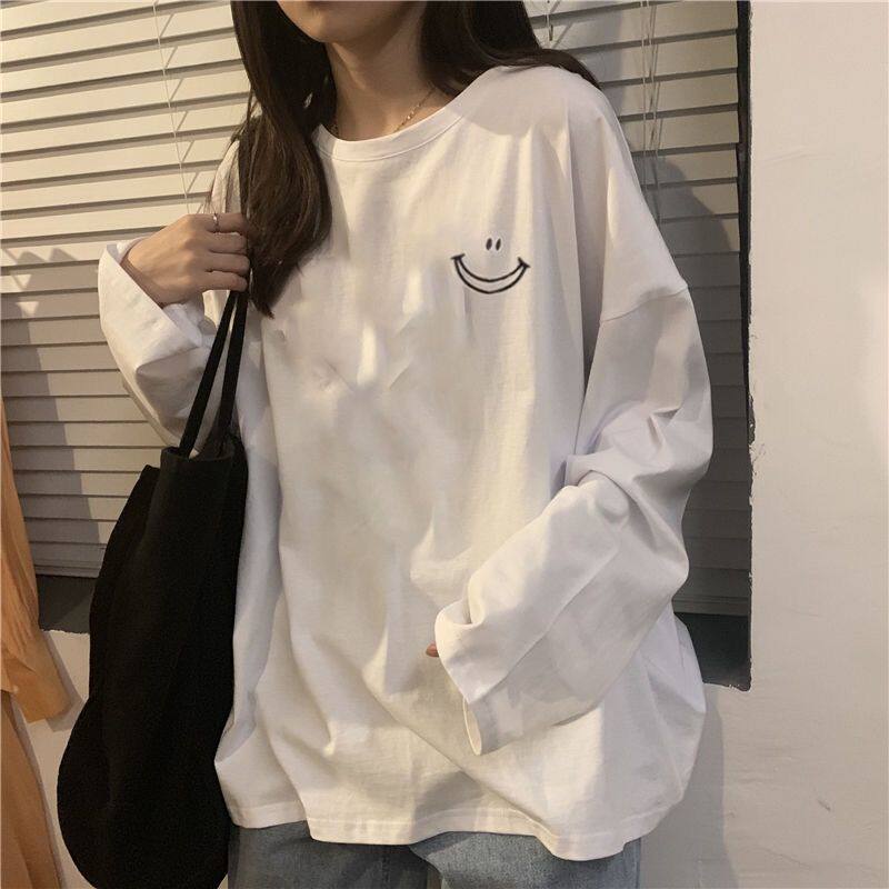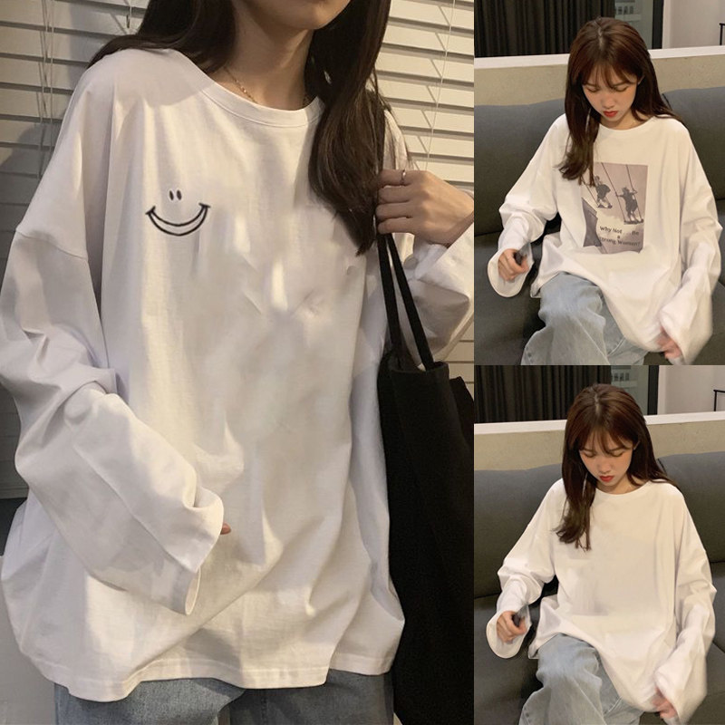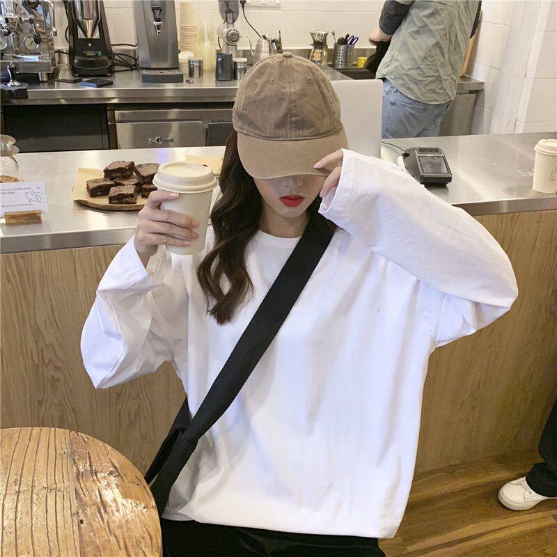 Белая футболка, тонкий осенний брендовый базовый приятный телу лонгслив для школьников, осенняя, в корейском стиле, оверсайз