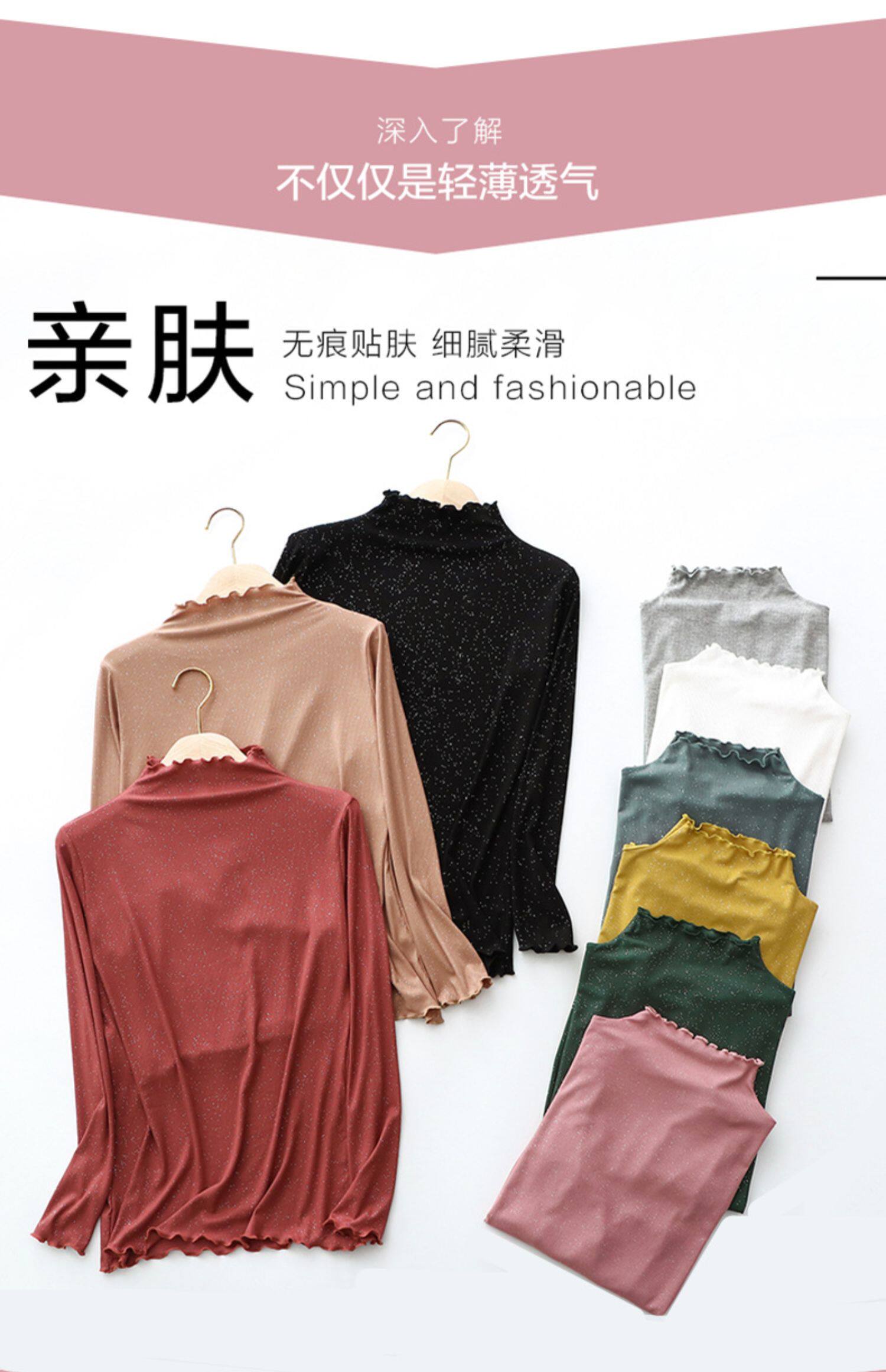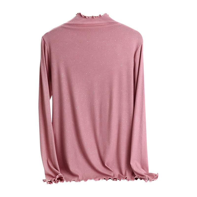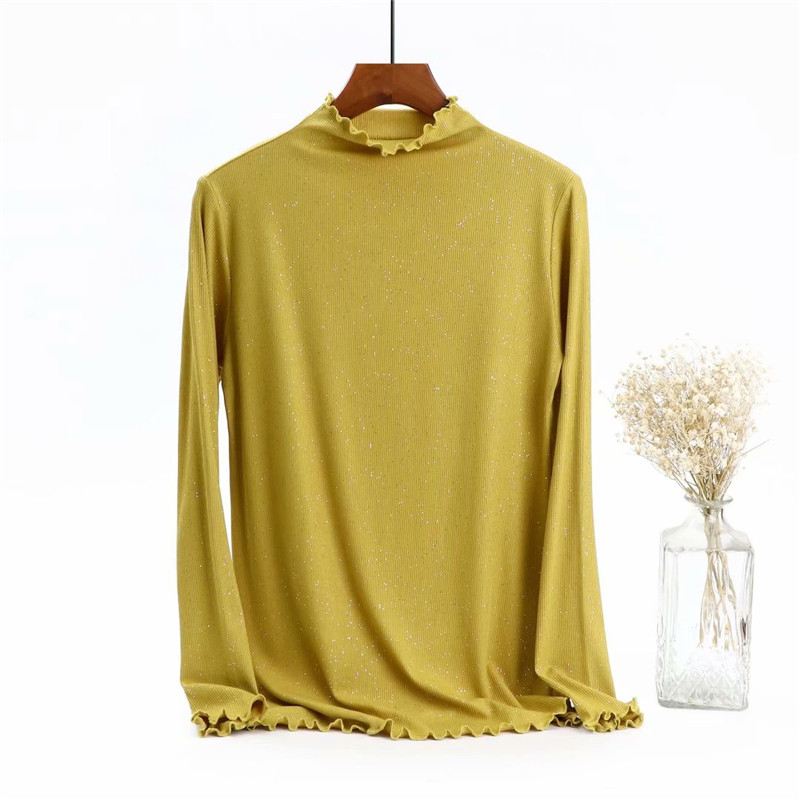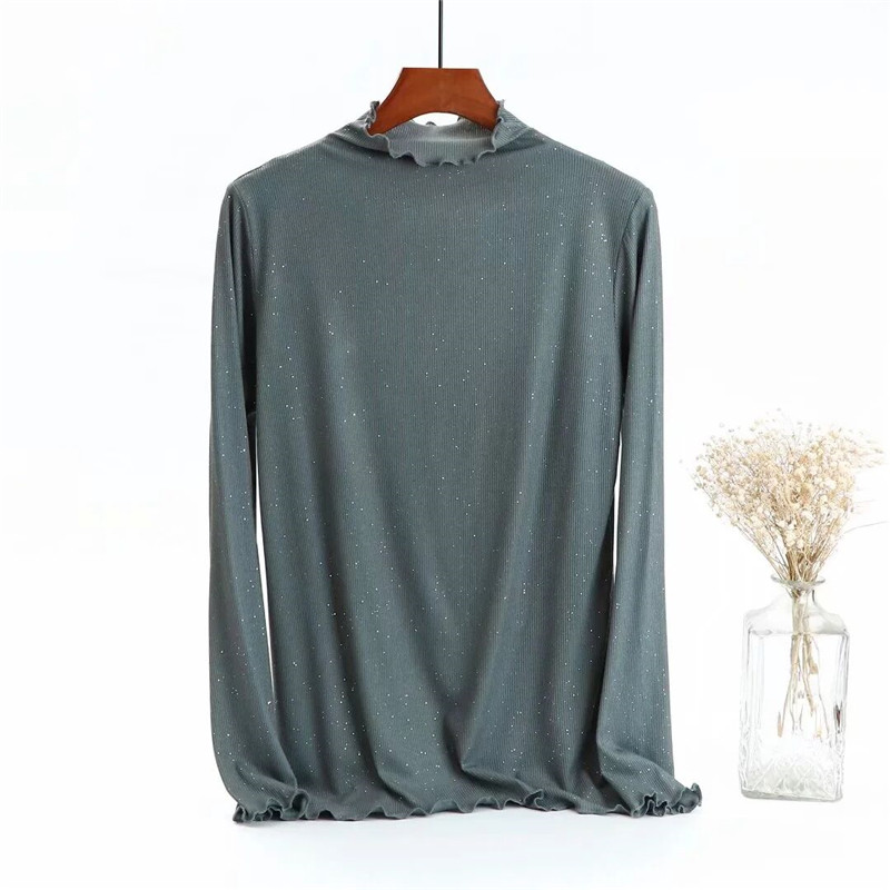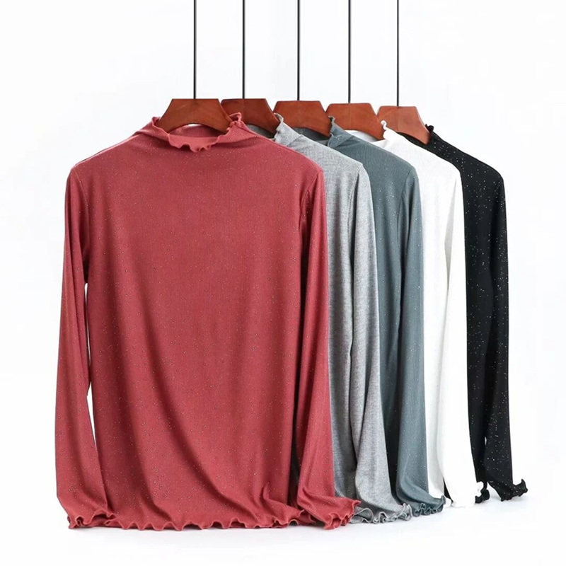 Базовый лонгслив, приятная телу осенняя тонкая универсальная футболка, блестки для ногтей, высокий воротник, большой размер