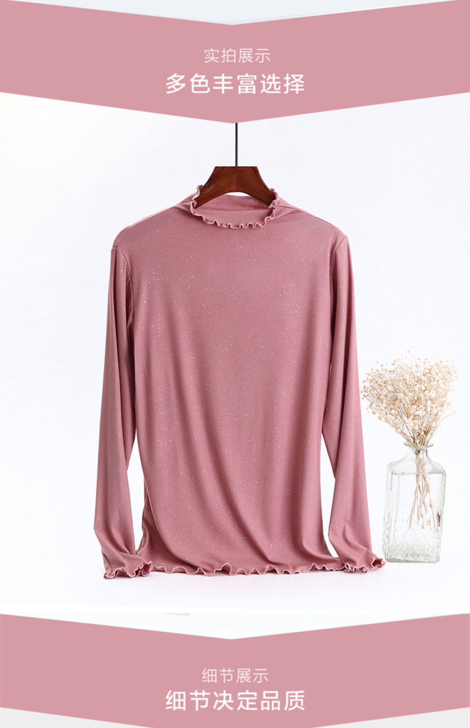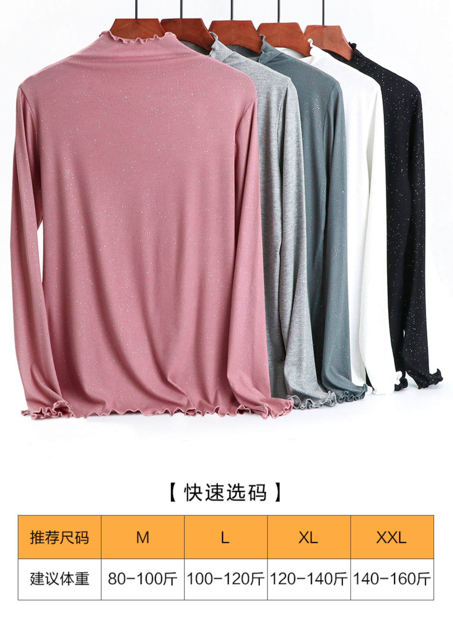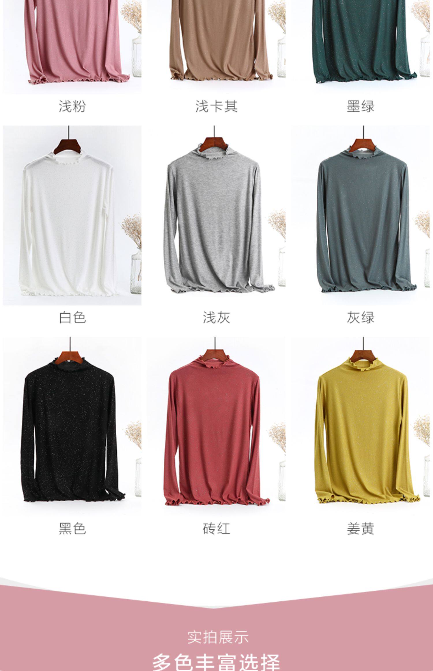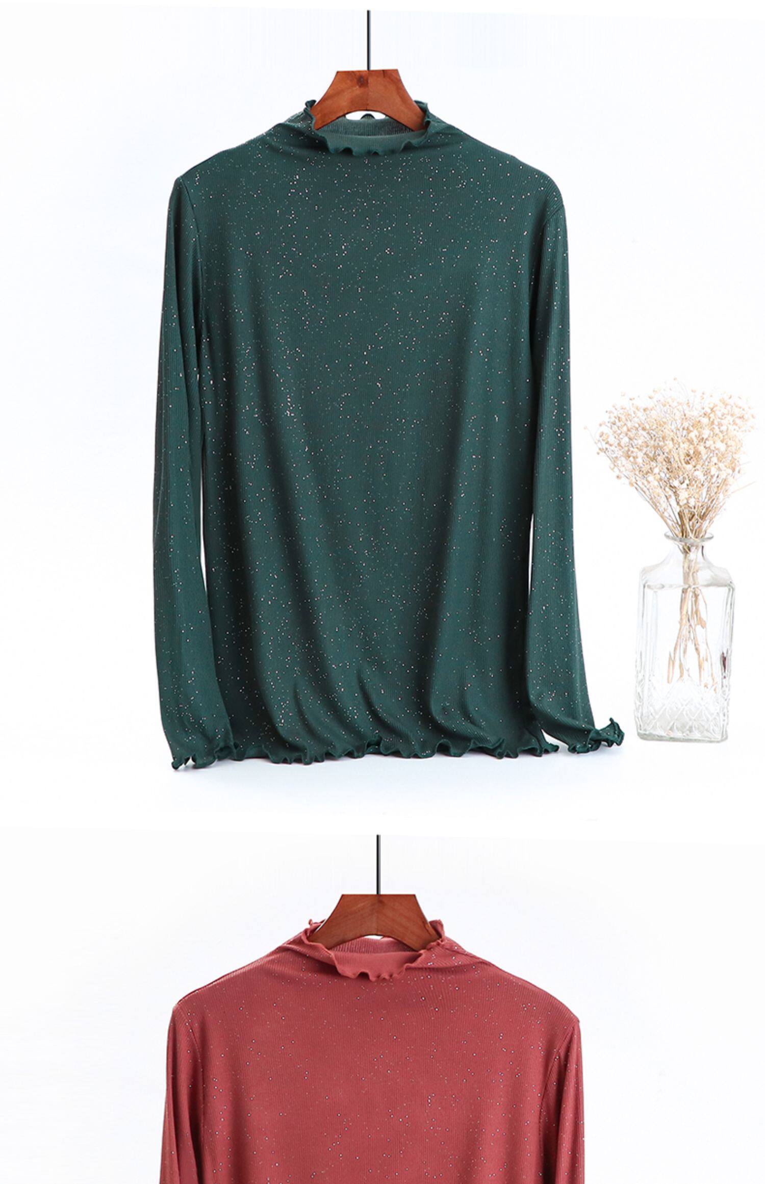 Базовый лонгслив, приятная телу осенняя тонкая универсальная футболка, блестки для ногтей, высокий воротник, большой размер