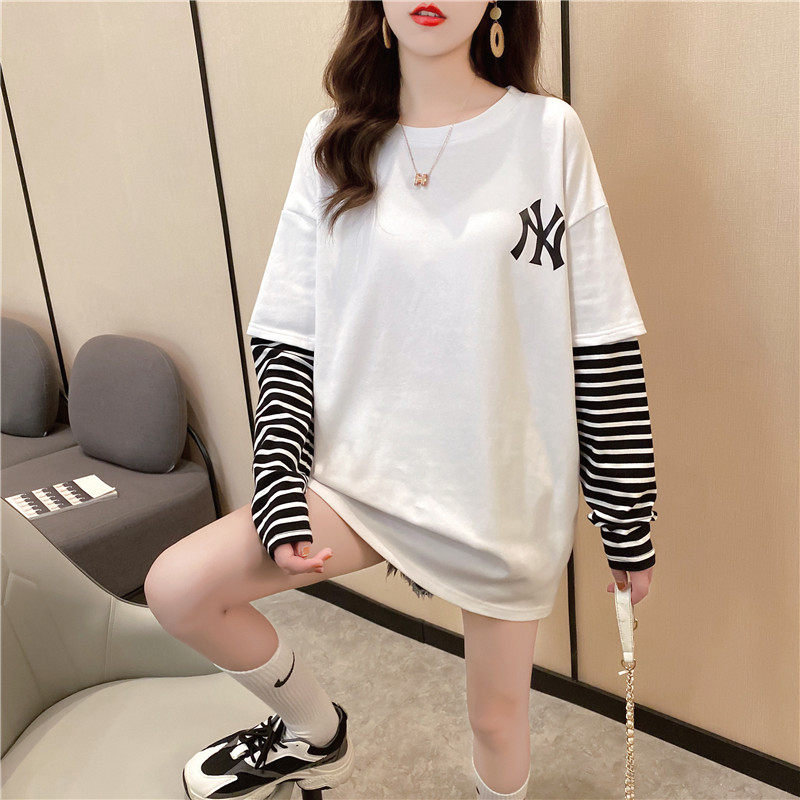 Осенний комплект, тонкая футболка, длинная толстовка, лонгслив, коллекция 2022, в корейском стиле, средней длины