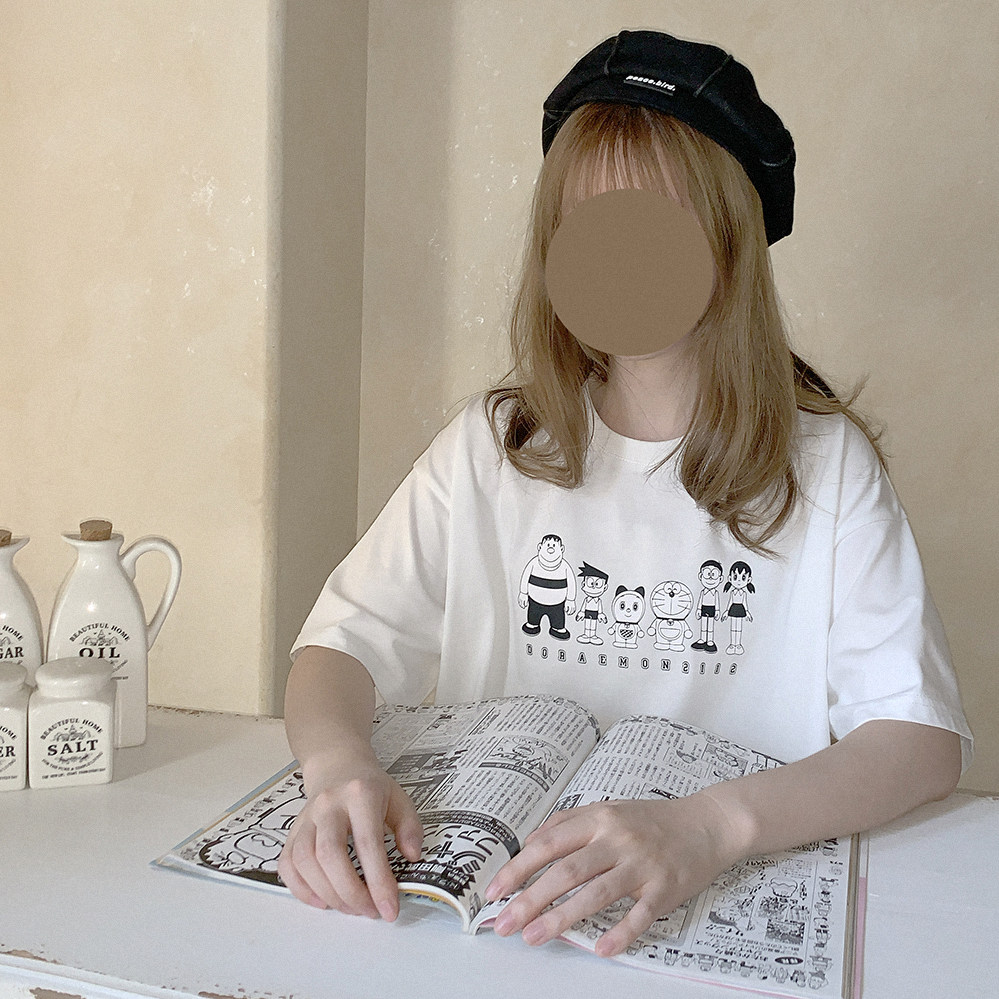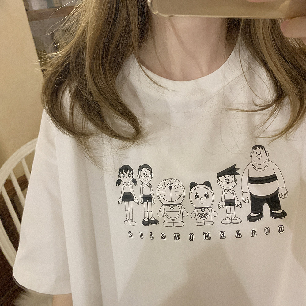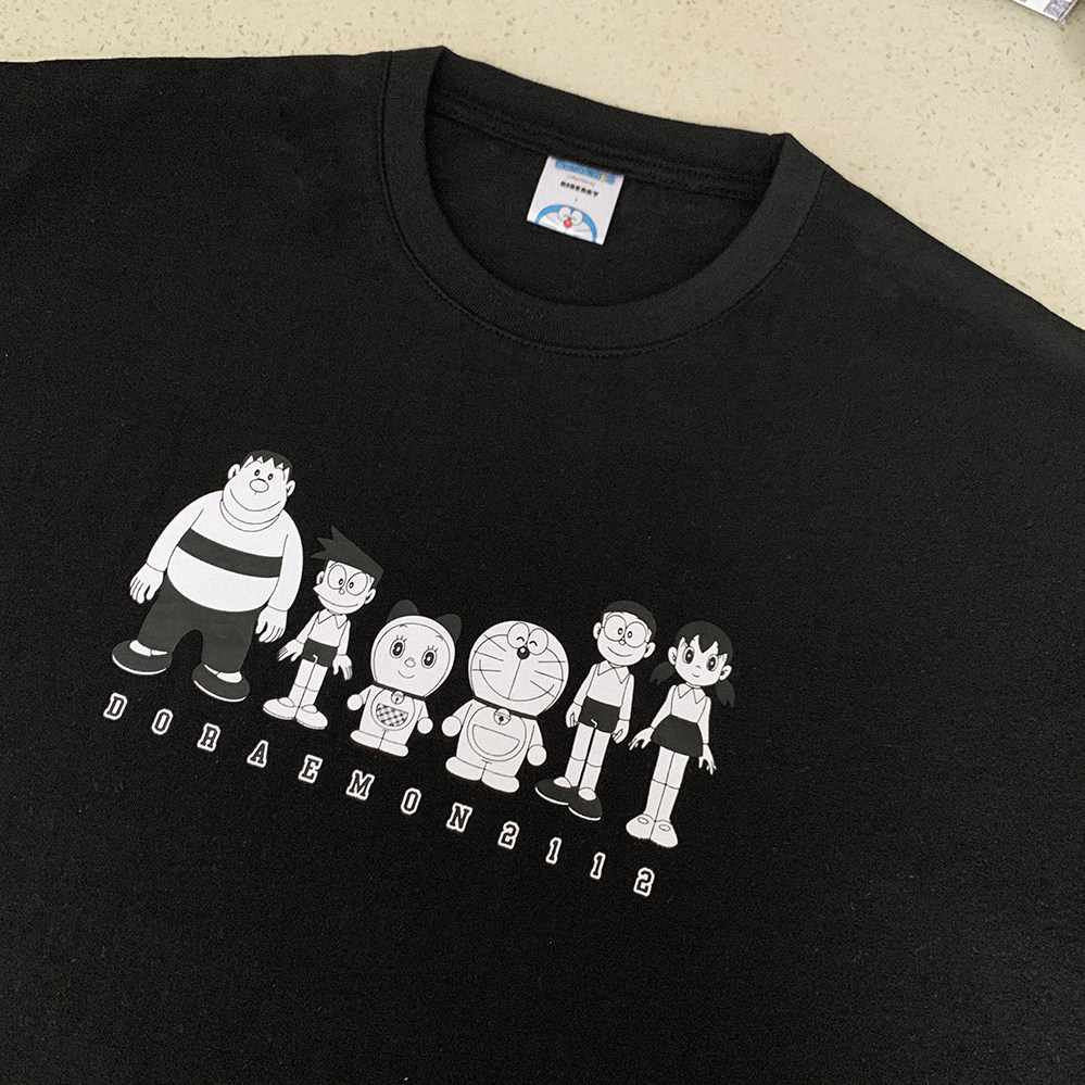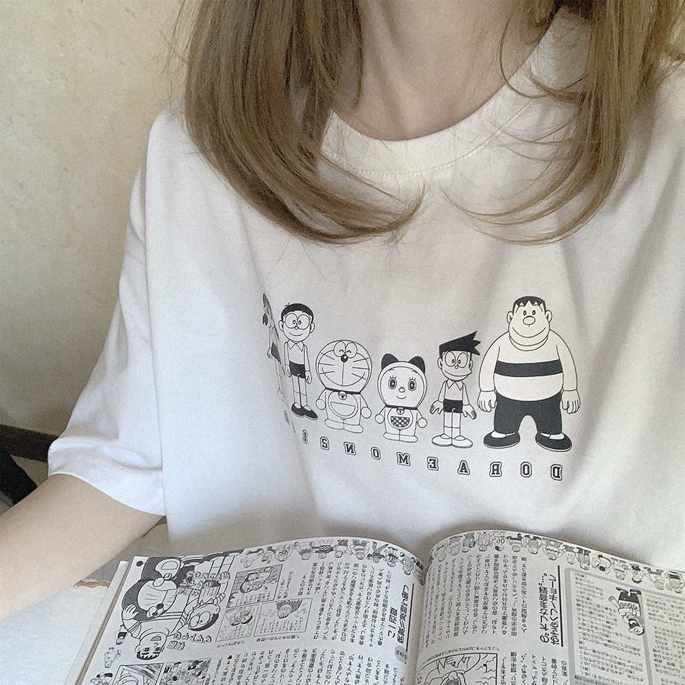 Комиксы, черная футболка с коротким рукавом, Дораэмон, свободный крой