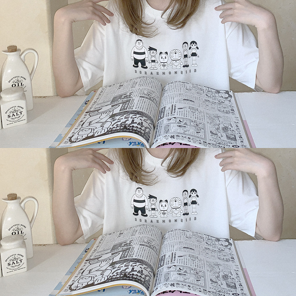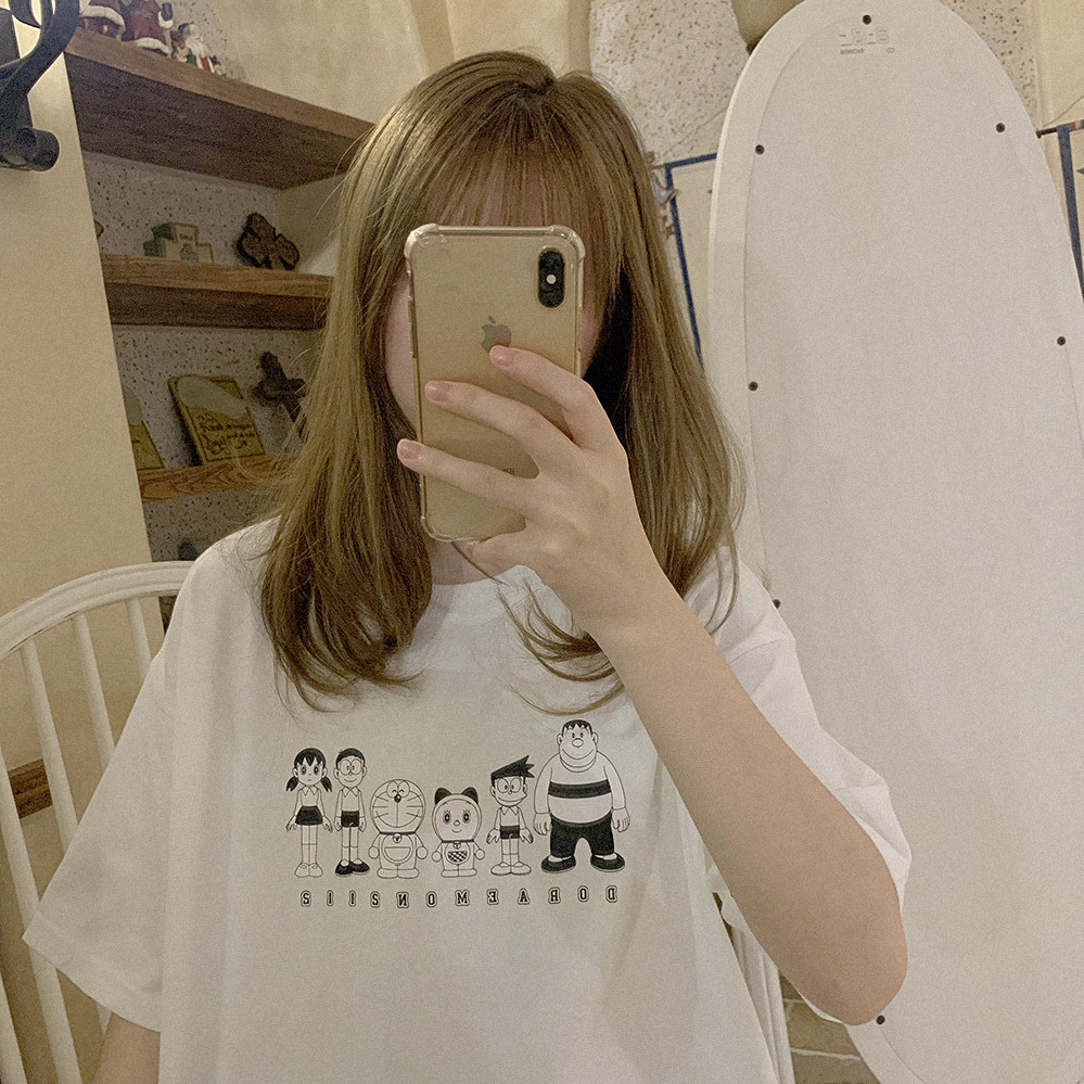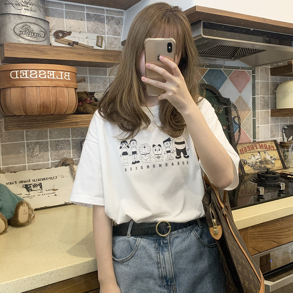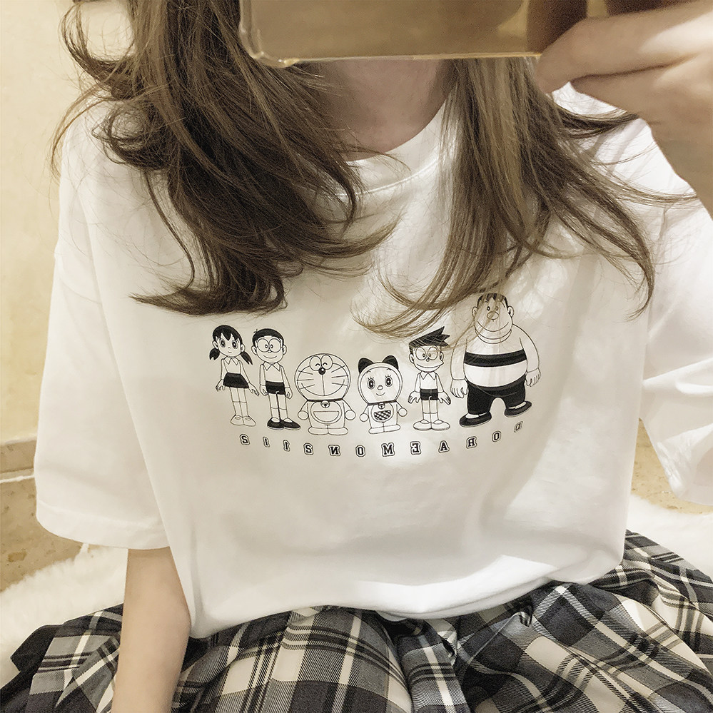 Комиксы, черная футболка с коротким рукавом, Дораэмон, свободный крой