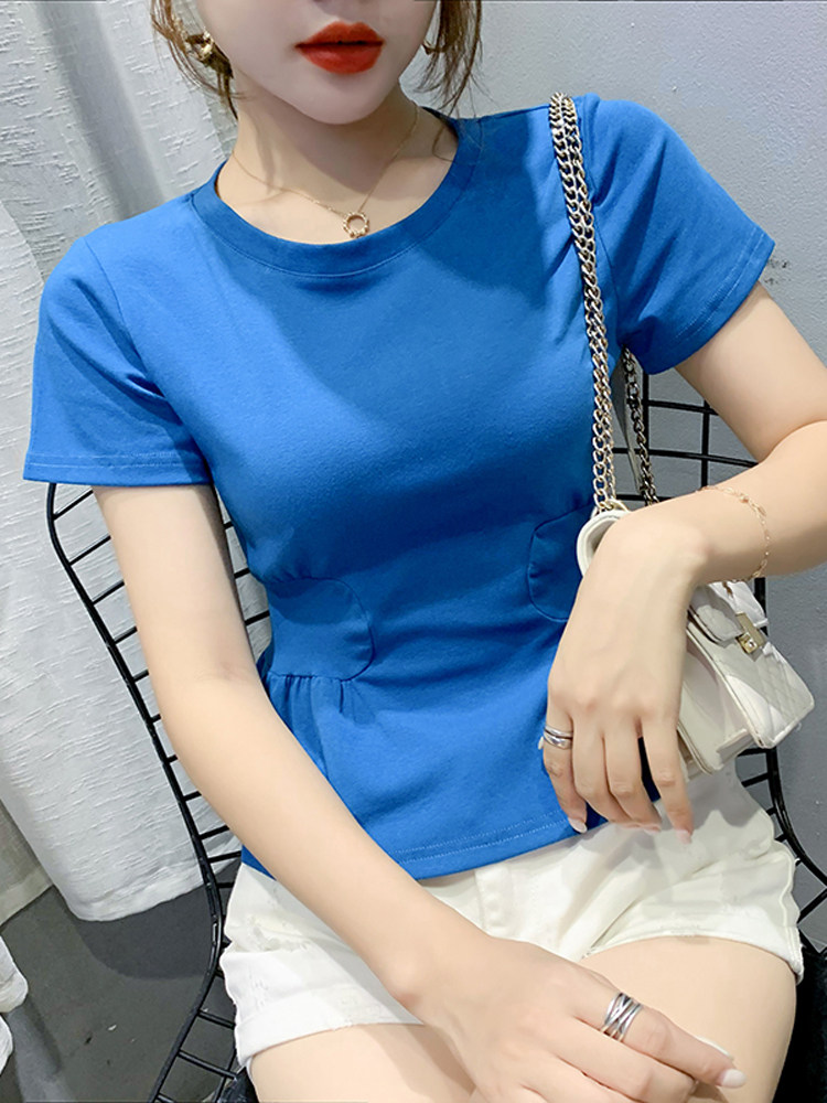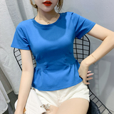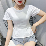 Летняя одежда, белая брендовая футболка, дизайнерский короткий приталенный корсет, короткий рукав, в западном стиле, тренд сезона