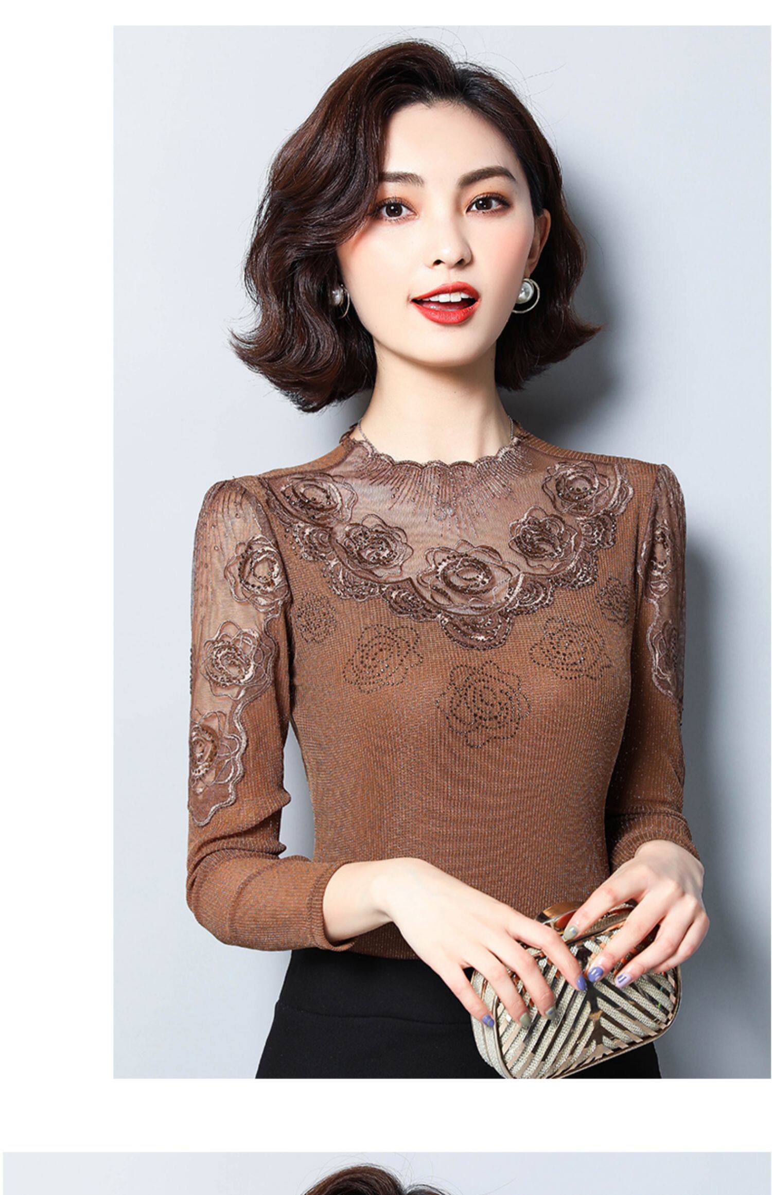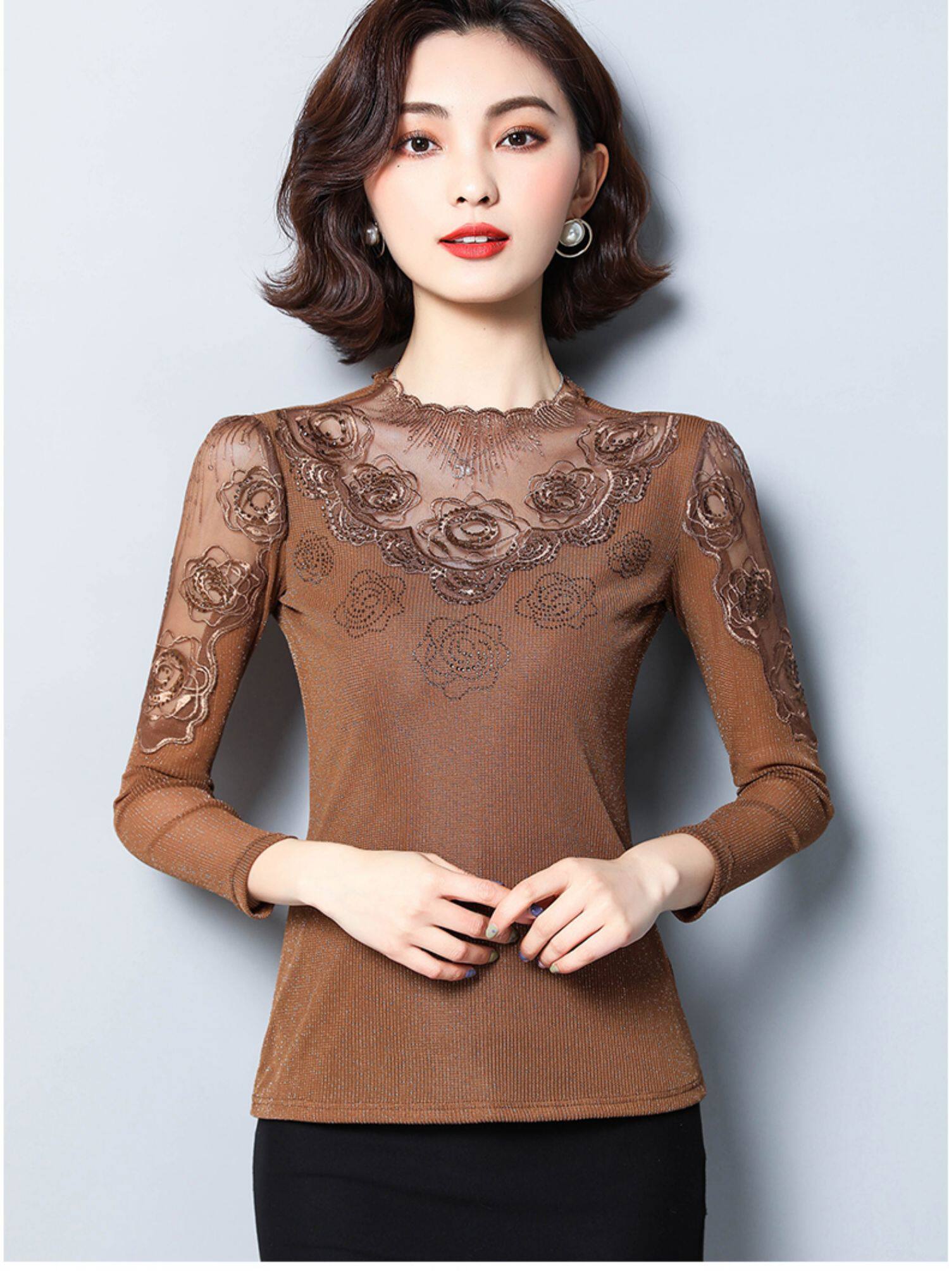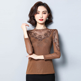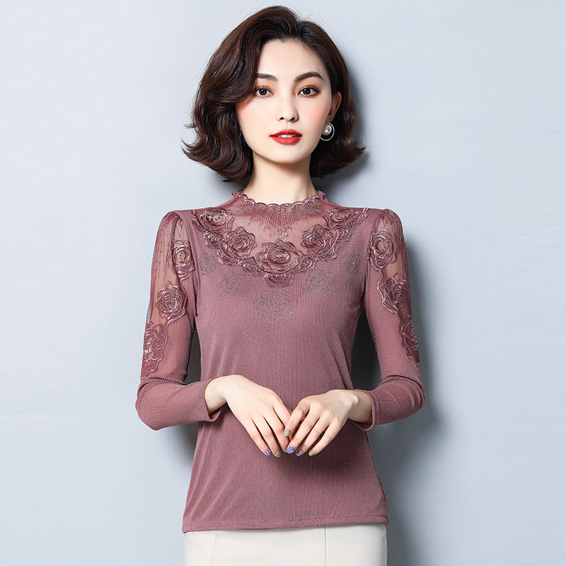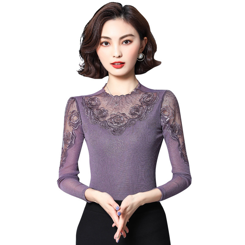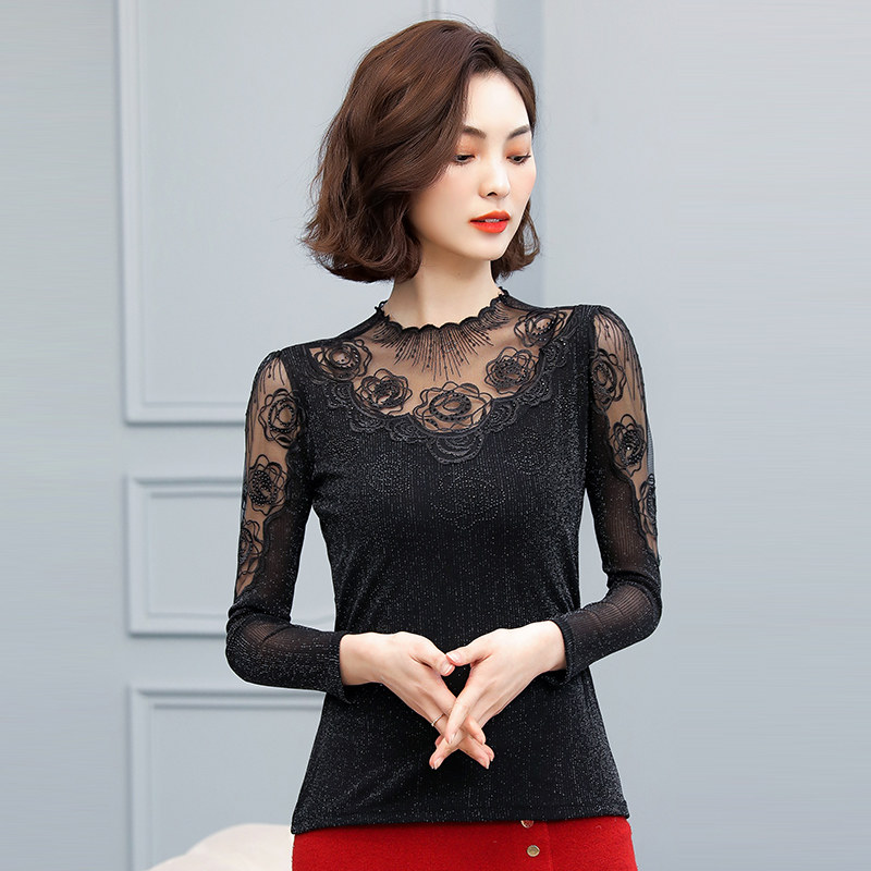 Базовый приятный телу осенний тонкий кружевной шелковый лонгслив, в западном стиле
